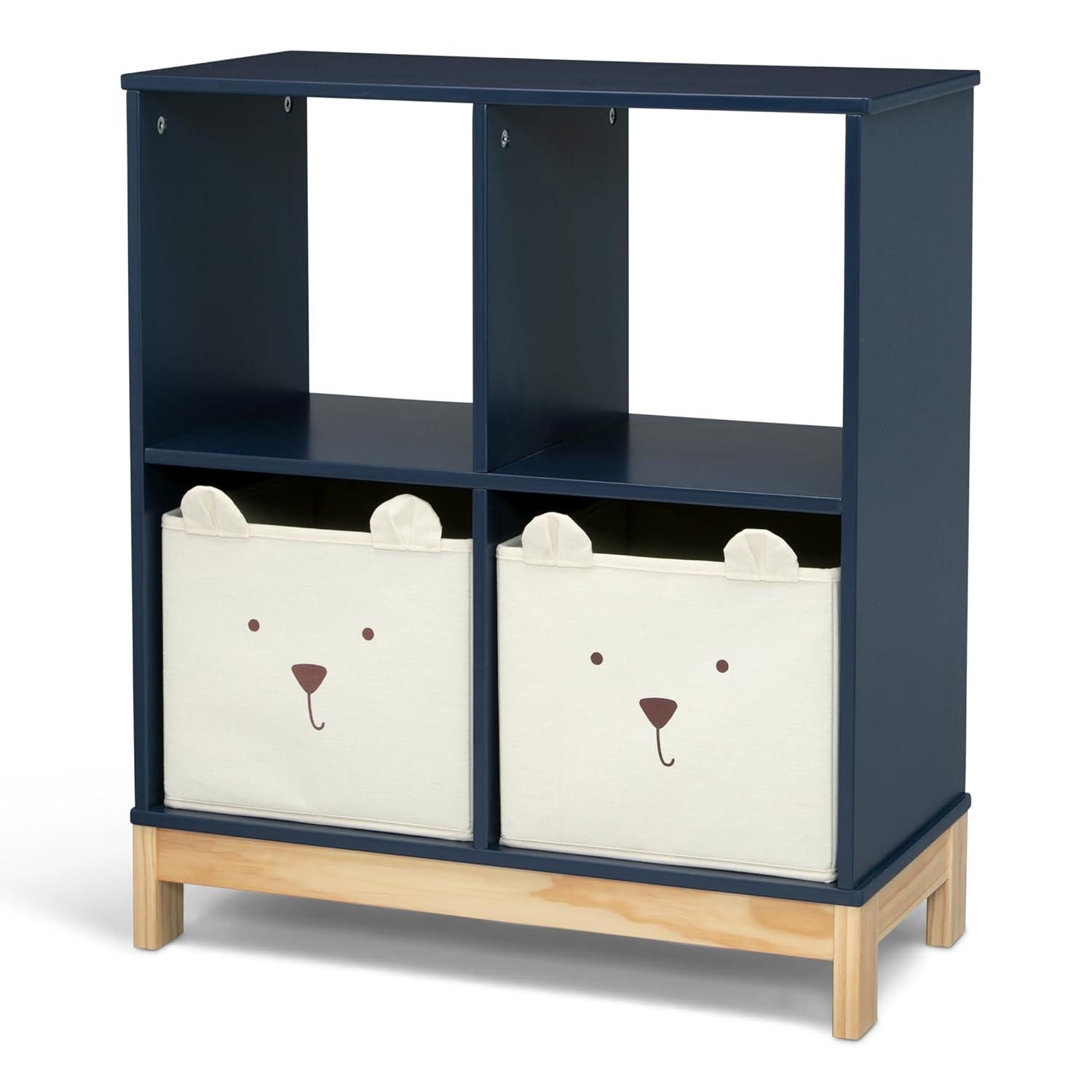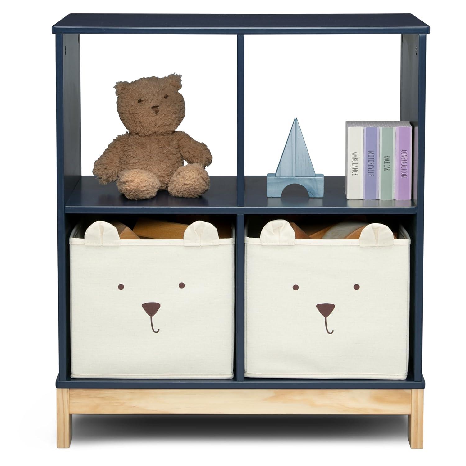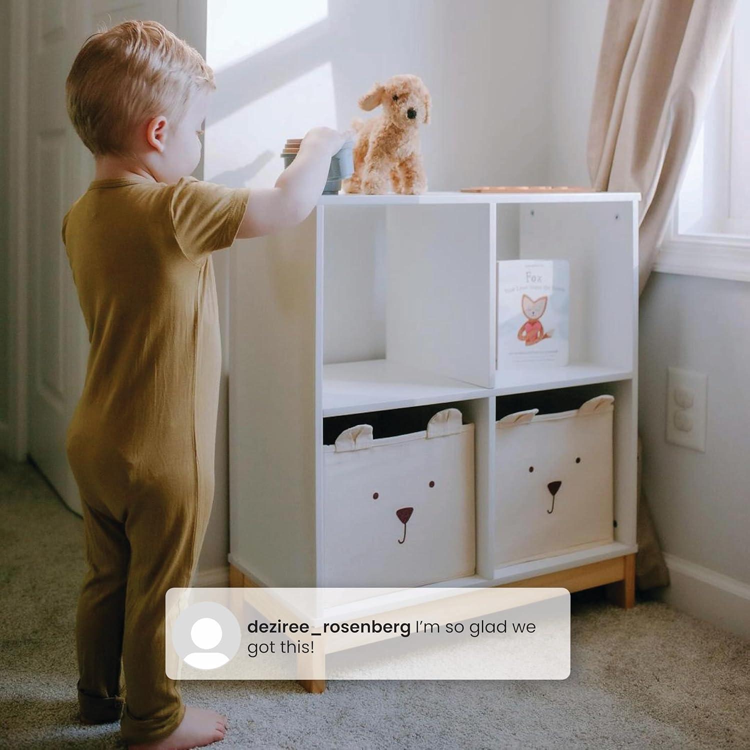 VERSATILE STORAGE: Functional and fun, this Brannan Bear Bookcase features four spacious open cubbies to display keepsakes, books or treasures | Bookcase includes two fabric storage bins, so you can easily keep kids’ essentials tidy