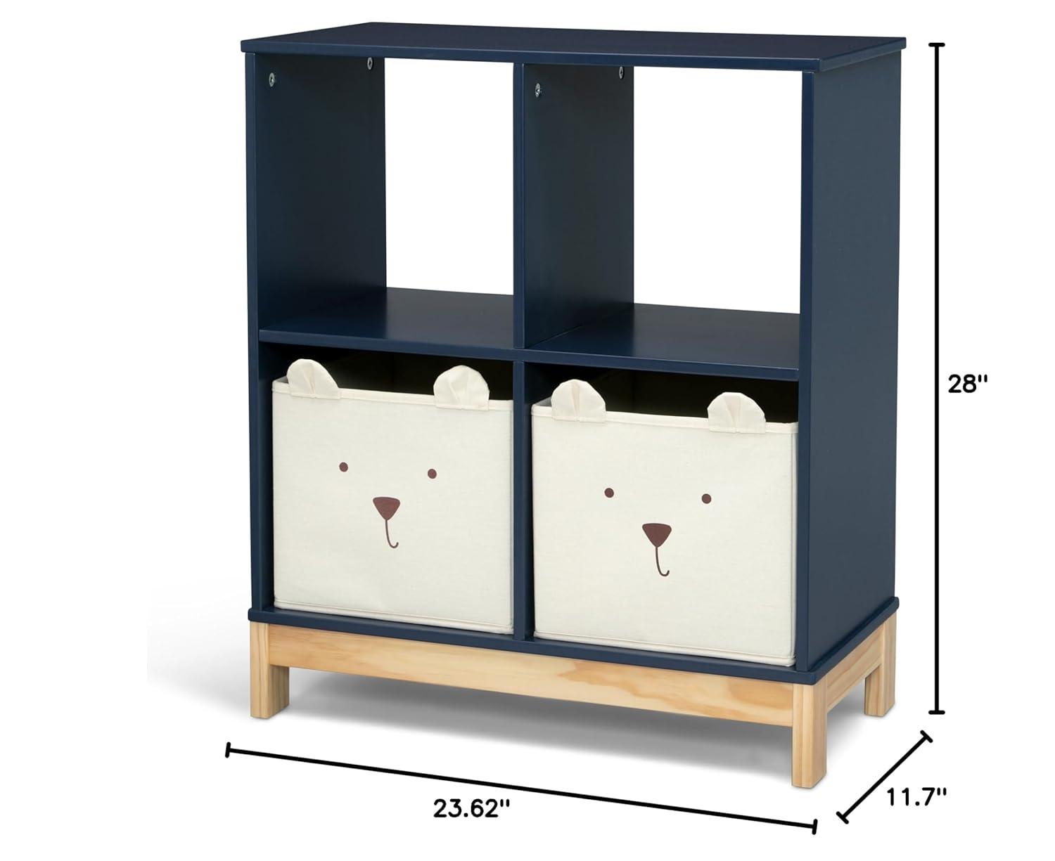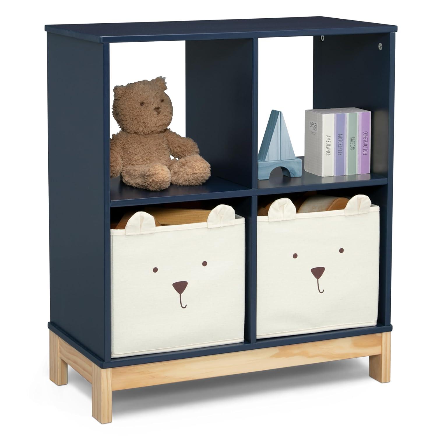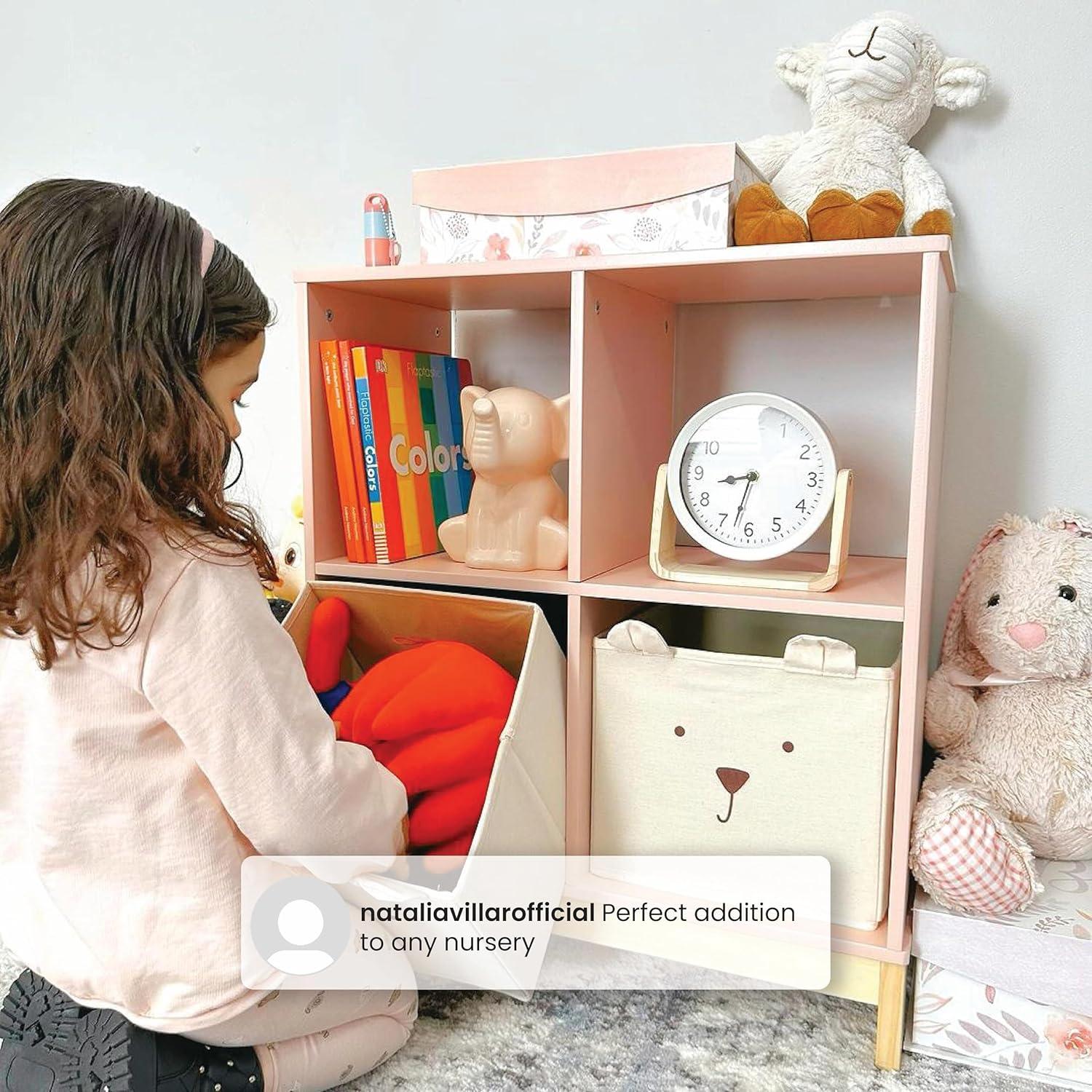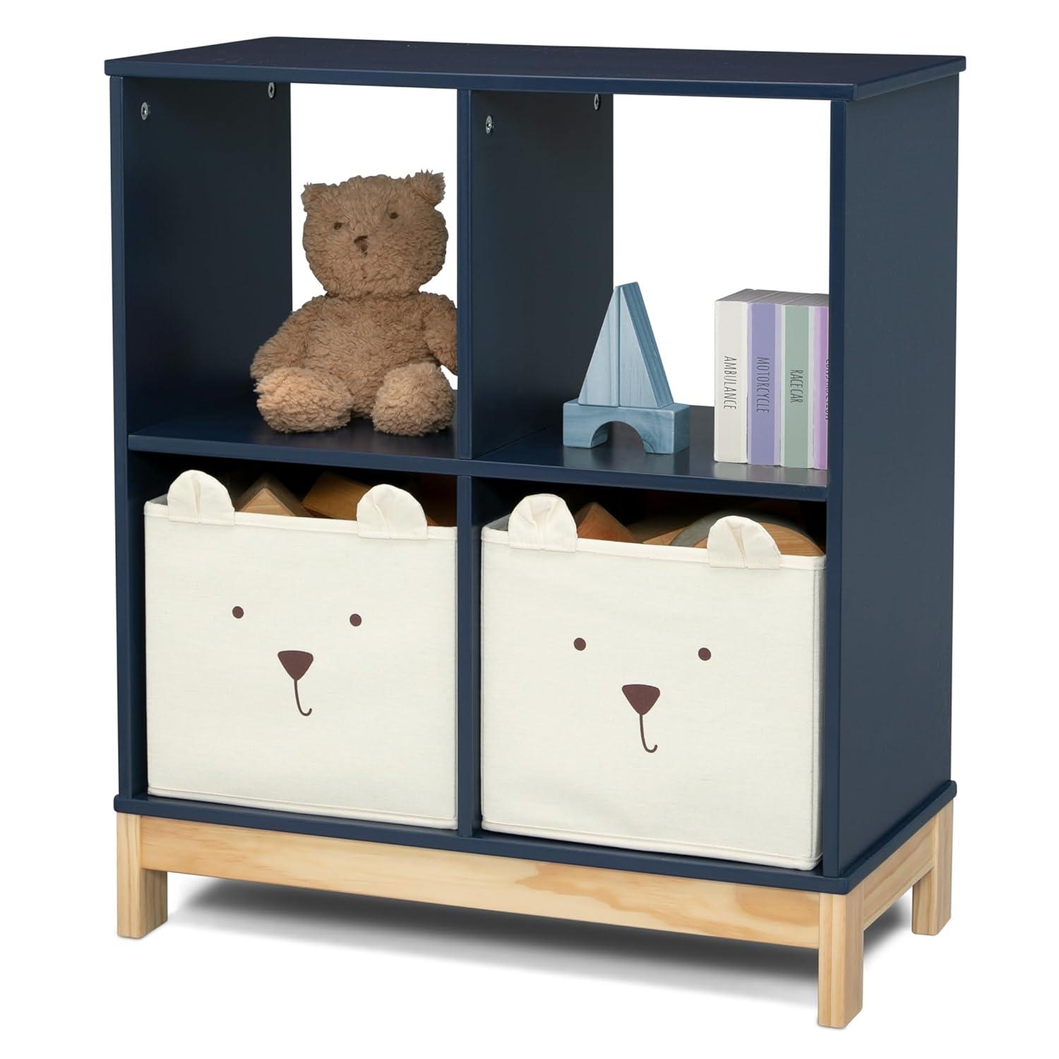 VERSATILE STORAGE: Functional and fun, this Brannan Bear Bookcase features four spacious open cubbies to display keepsakes, books or treasures | Bookcase includes two fabric storage bins, so you can easily keep kids’ essentials tidy