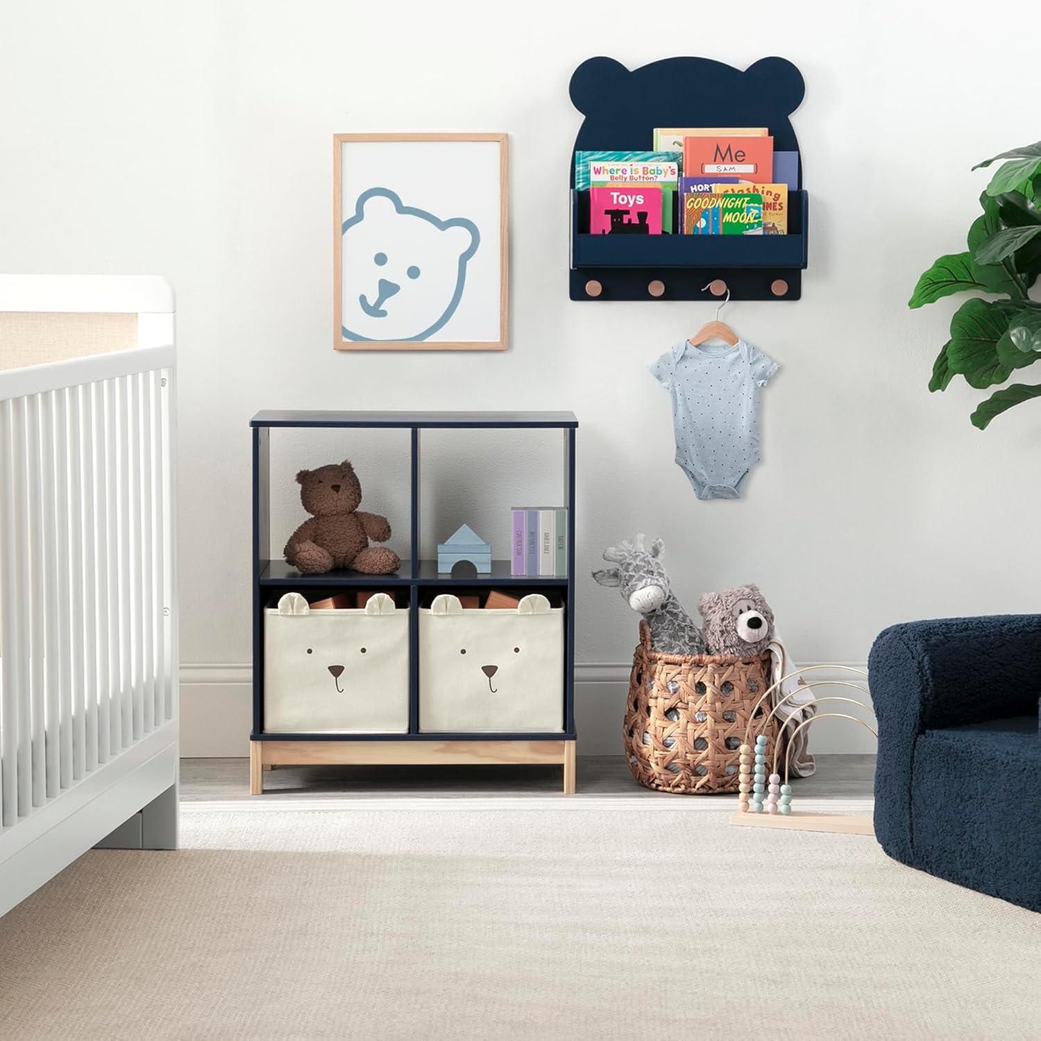 This wildly stylish babyGap Brannan Bear Bookcase with Bins is an unforgettable addition to any nursery, play space or kid's bedroom. You’ll love the way this bookcase simplifies organization–use the open cubbies for books or toys and use the two included fabric bins to keep things hidden. The two fabric bins feature a printed bear face and adorable three-dimensional ears for added character. The low height of this bookcase makes everything easily accessible for your little one while the include wall anchor ensures your child’s safety. The babyGap Brannan Bear Bookcase with Bins coordinates with other items in the babyGap by Delta Children collection in the same finish.