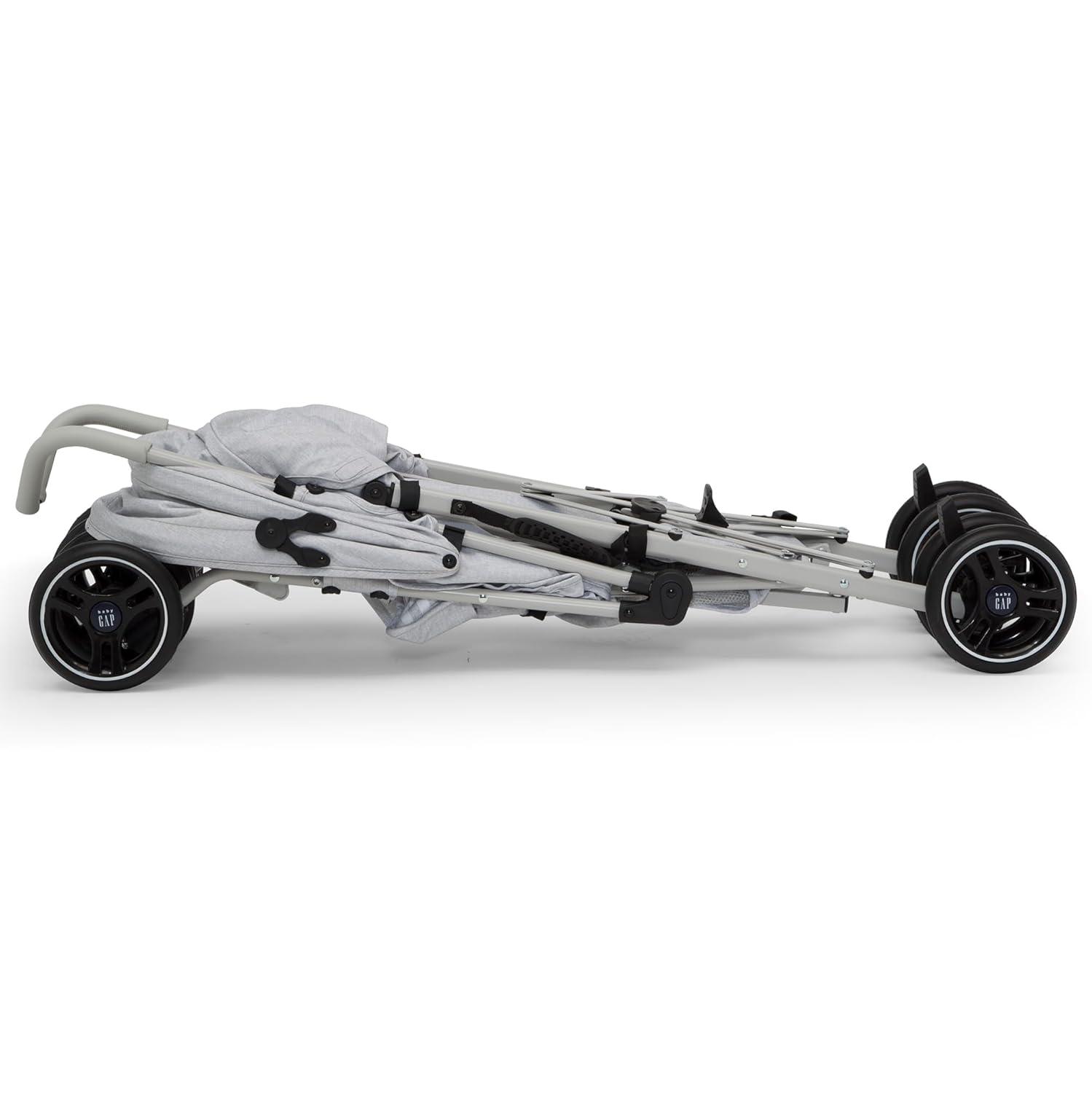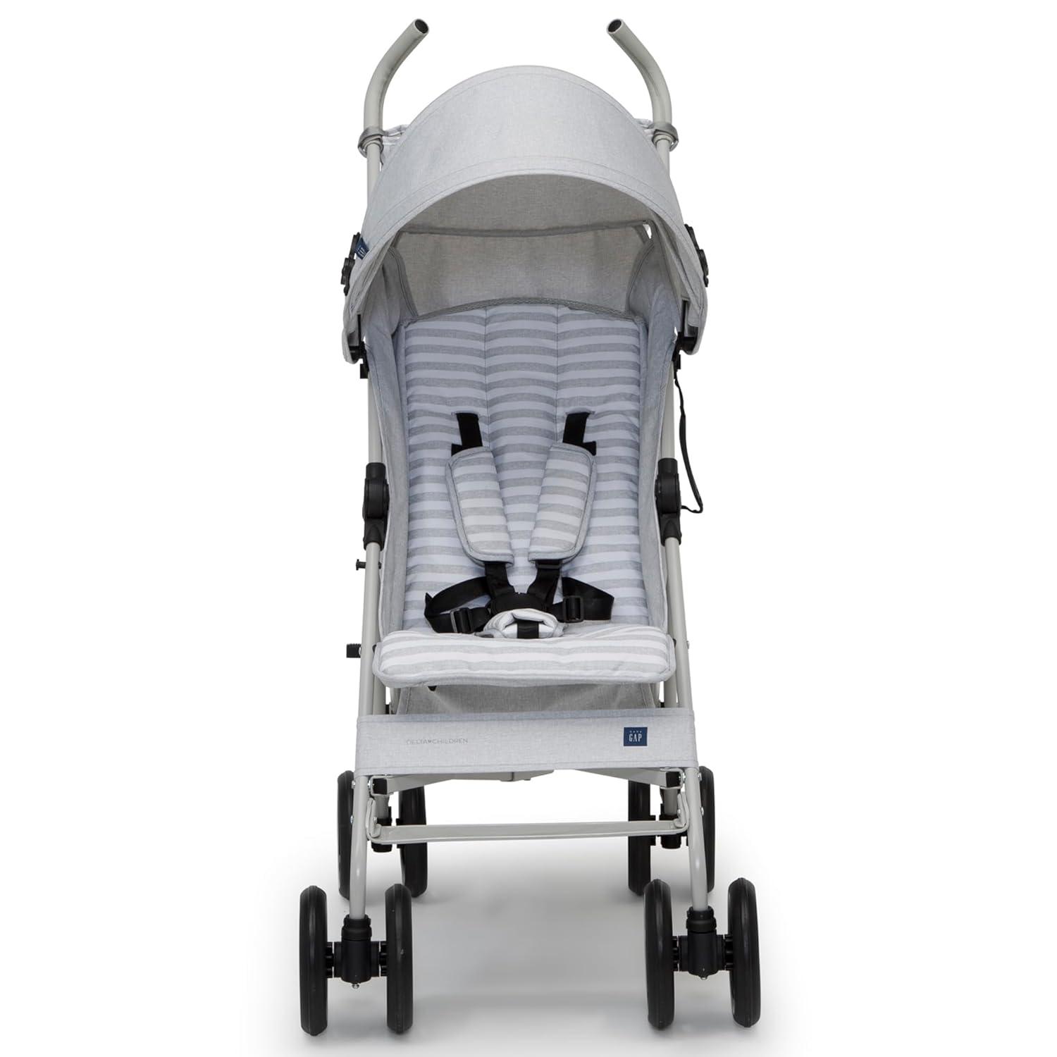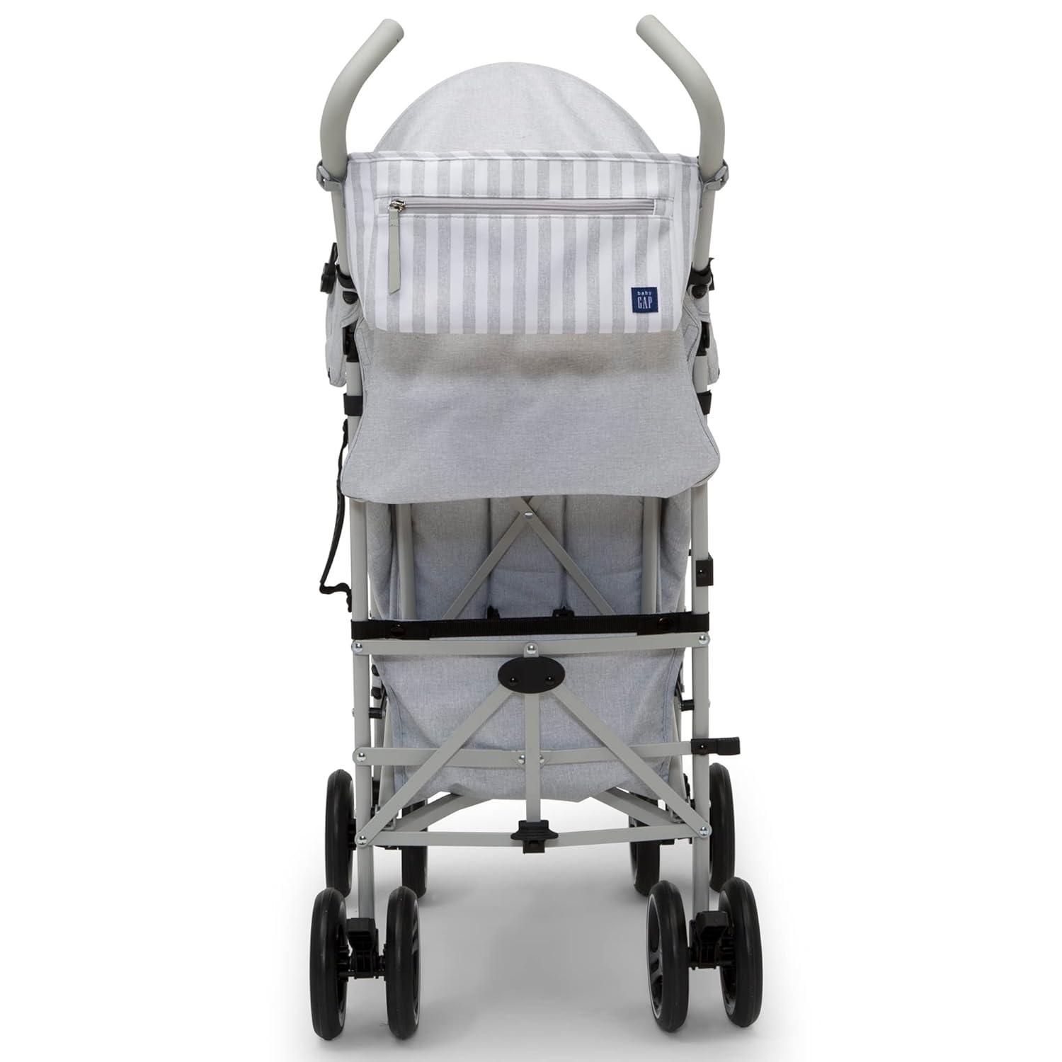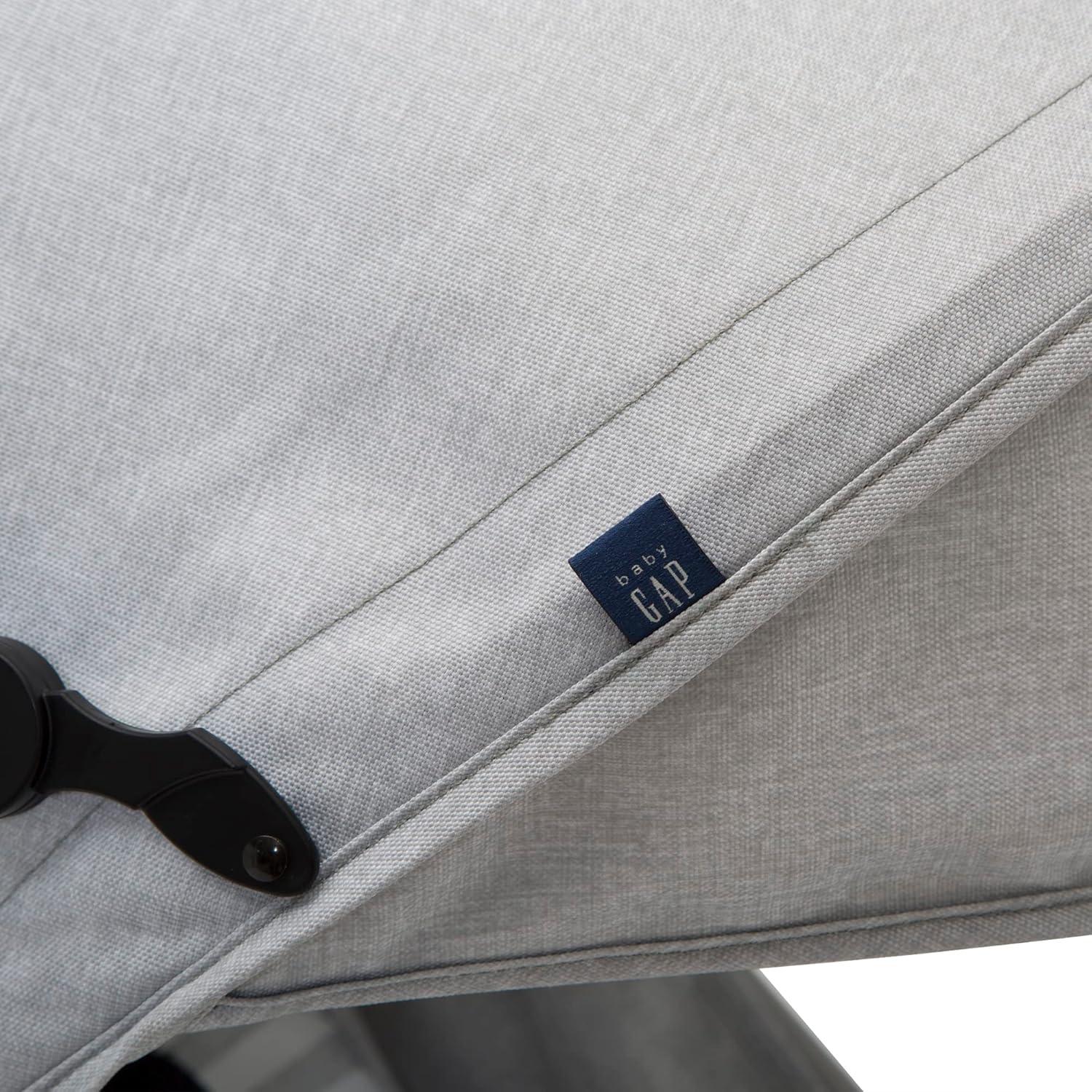 Introducing the babyGap Classic Stroller: The most responsibly made lightweight stroller. Designed for the future in every possible way, all the soft fabrics on the stroller are made from recycled water bottles. Plastic drinking bottles are sorted, cleaned and shredded into flakes that become the yarn the seat fabric is made from. A great choice for your child and the planet, this everyday stroller is outfitted with front wheels that features precision technology for outstanding control and effortless push, making it easier than ever to glide, turn and maneuver any surface. Incredibly cozy, the stroller has an extra-large extendable canopy with sun visor, reclining seat and tons of storage. The extra-large storage basket and removable parent organizer ensure there’s always enough room for all your baby’s on-the-go essentials. Ideal for travel or everyday use, the stroller’s durable steel frame only weighs 14.5 pounds and the compact fold, auto lock and carry handle make it easy to transport. Uniquely babyGap, the stroller has the easily recognized babyGap logo and iconic Brannan Bear on the wheels, canopy, calf rest, parent organizer and safety harness for an elevated look. This stroller is recommended for infants 9 months up to 50 pounds.