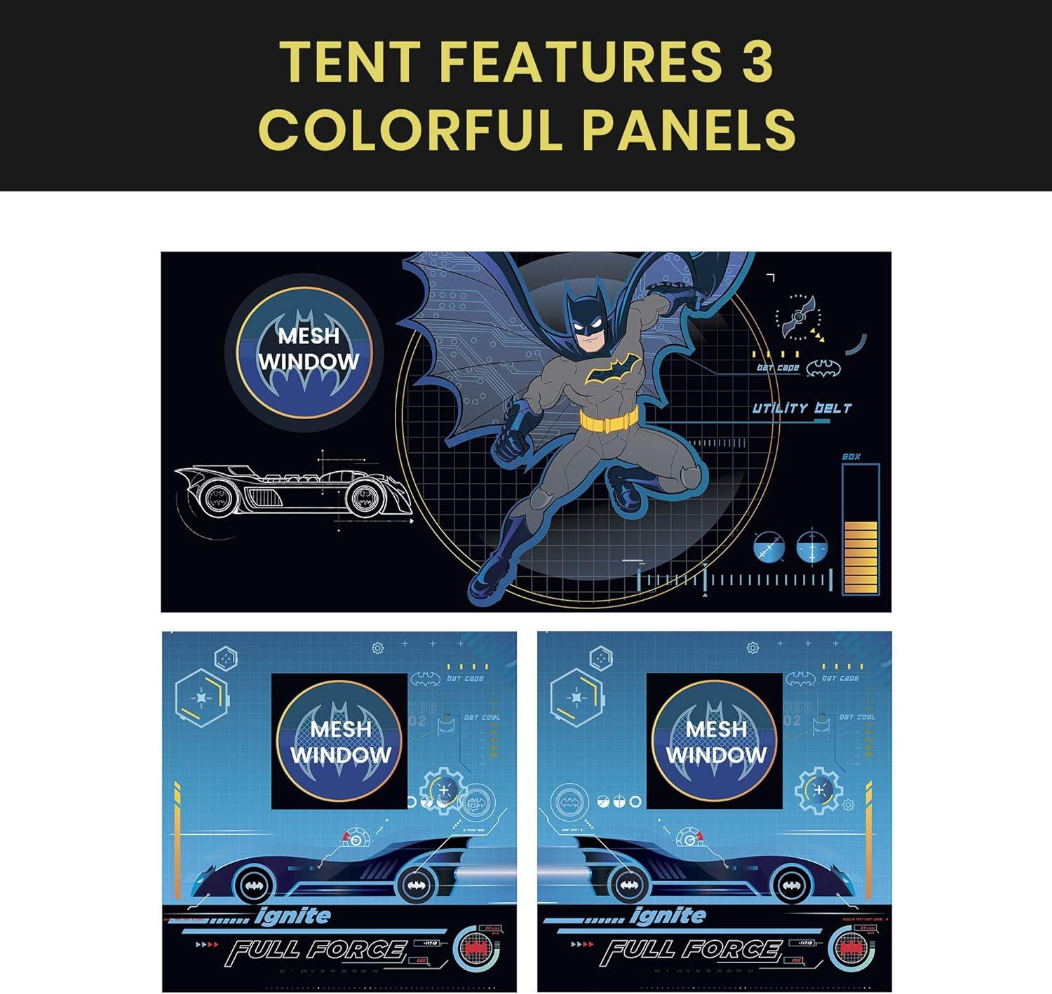 UNIQUE PLAY SPACE: This Batman Loft Bed Tent instantly creates a play space or remote learning area under your child’s bed without taking up additional floor space | Tent features a mesh window and roll-up front panel | Bed not included