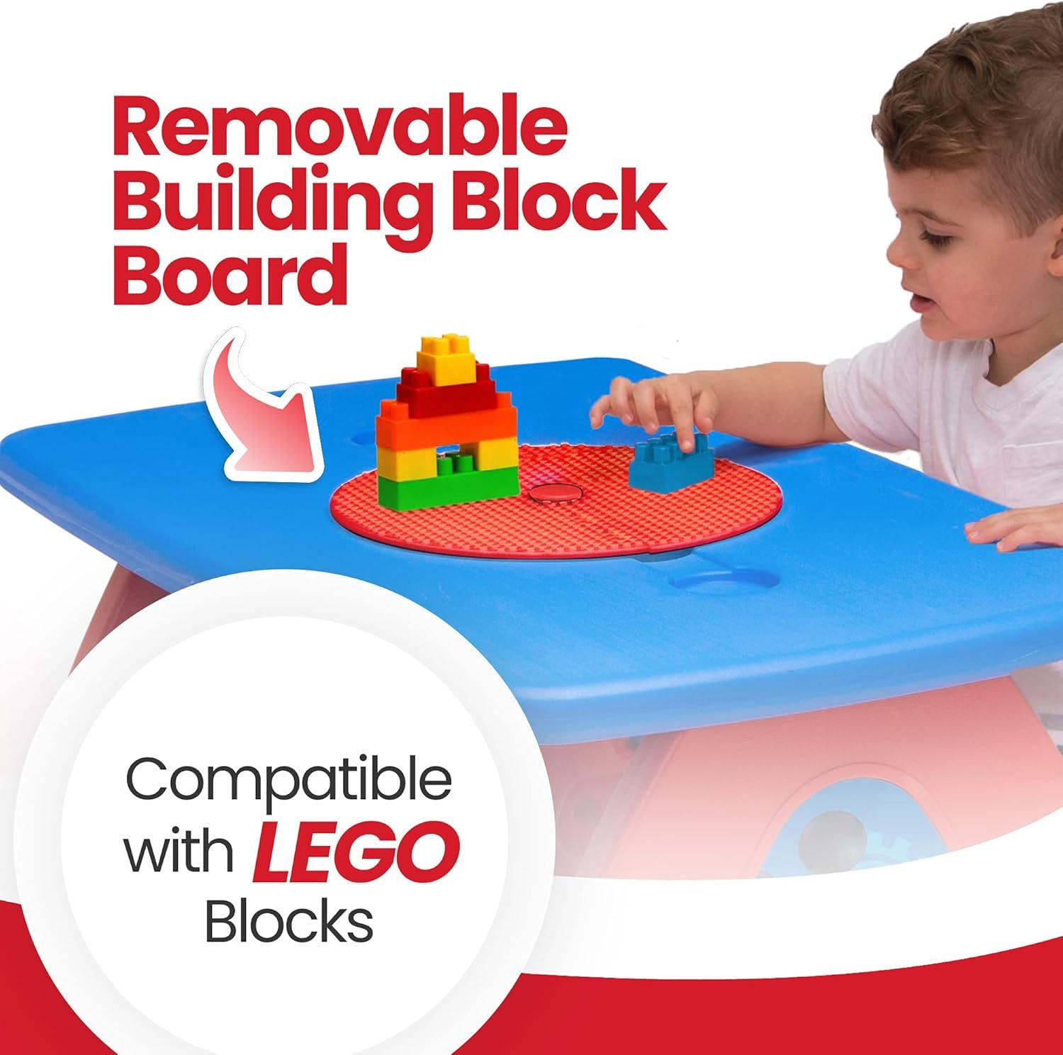 ACTIVITY FEATURE: Designed to boast and encourage your child’s imagination this picnic table features a removable building block board that is compatible with LEGO blocks (LEGO blocks not included)