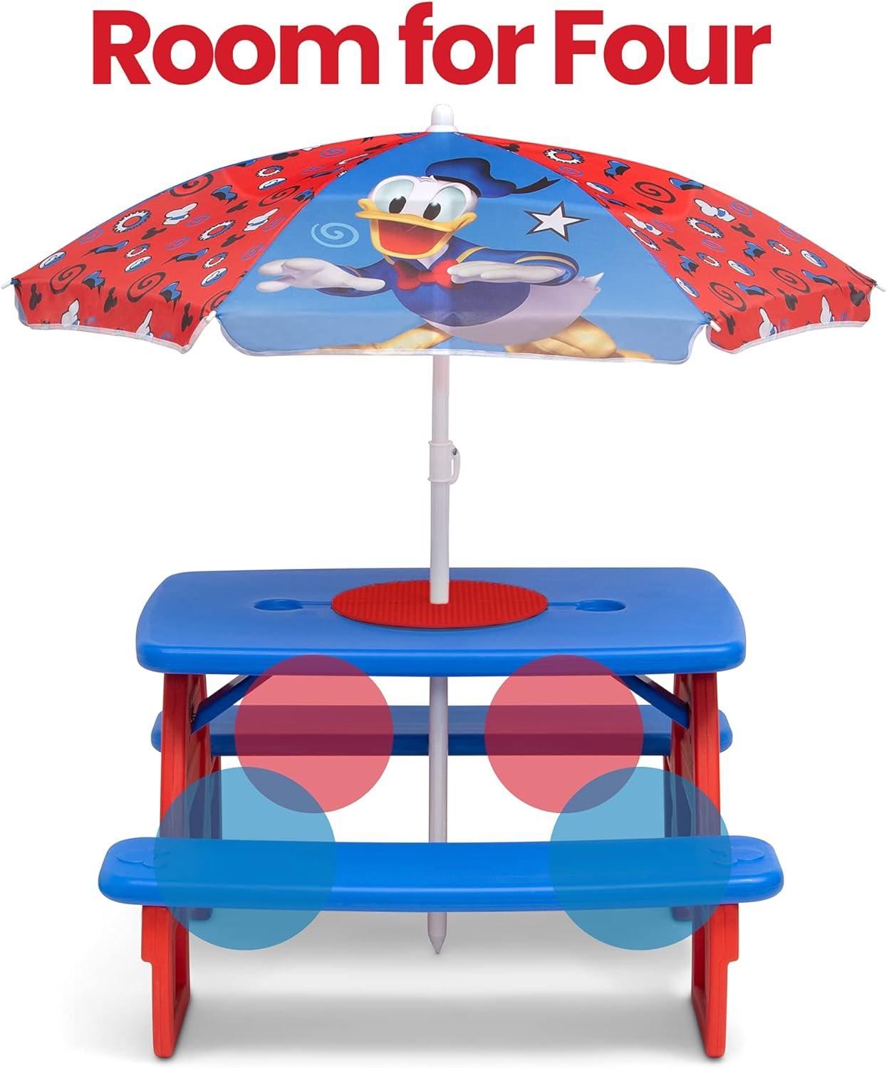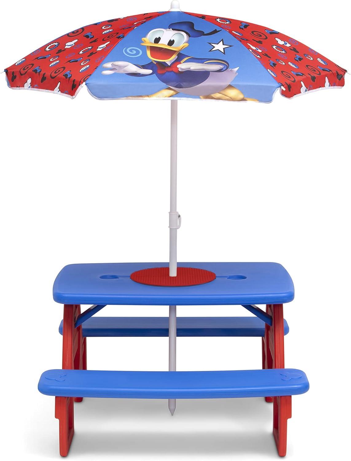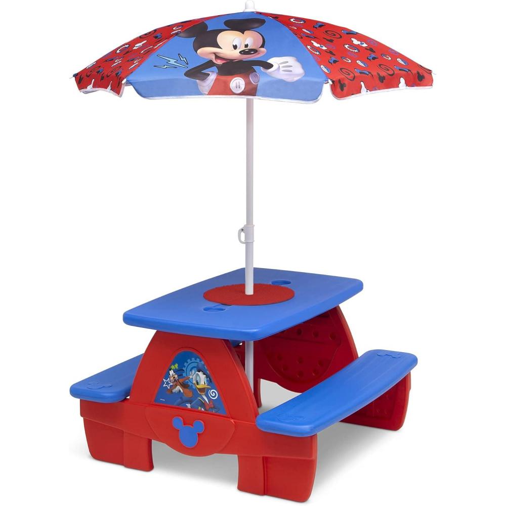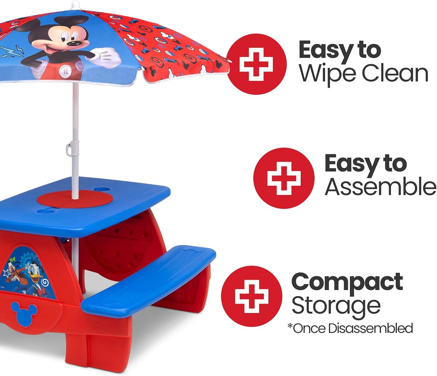 Delta Children 4 Seat Activity Picnic Table with Umbrella and Lego Compatible Tabletop, PAW Patrol(Mickey Mouse)