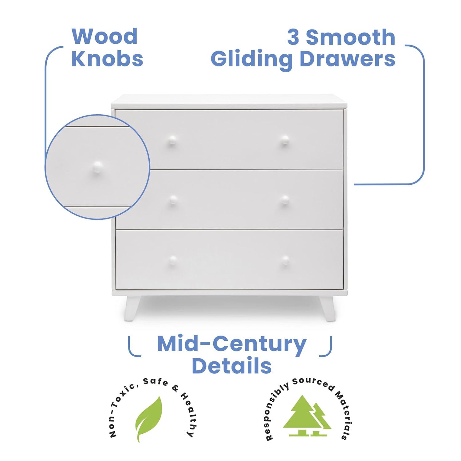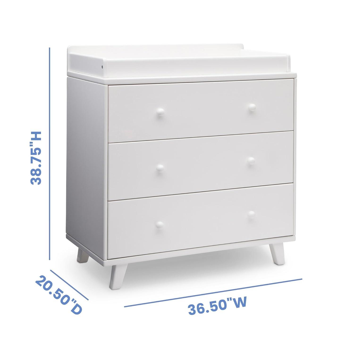 Delta Children Ava 3 Drawer Dresser with Changing Top, Greenguard Gold Certified, White(Dresser)