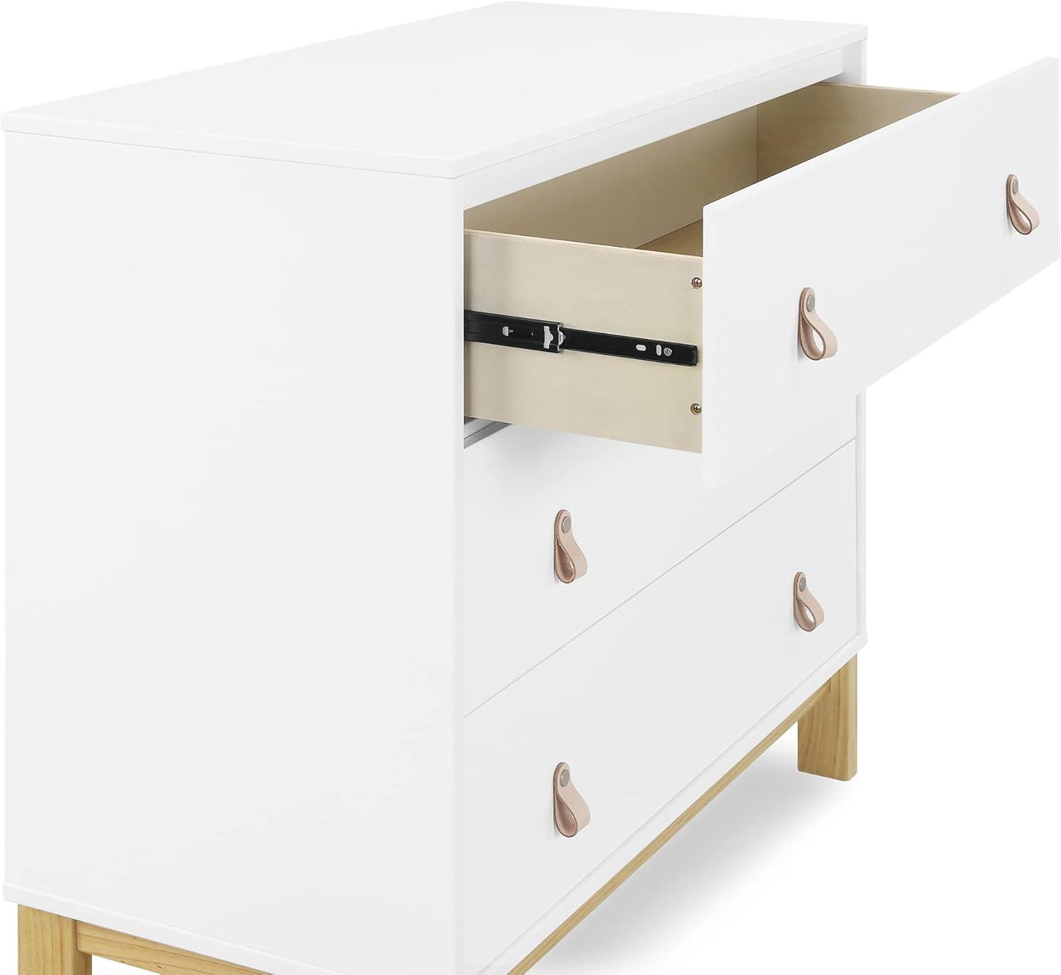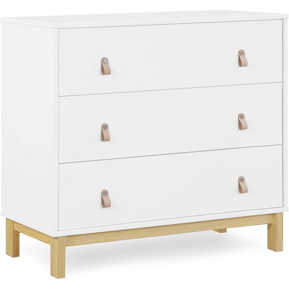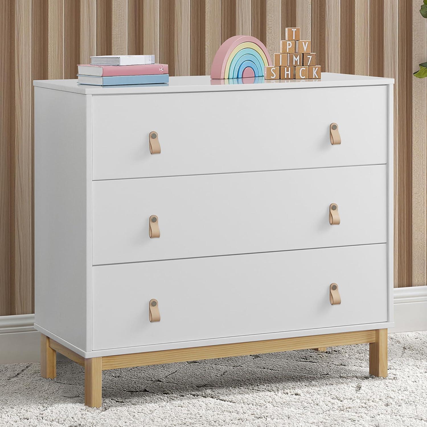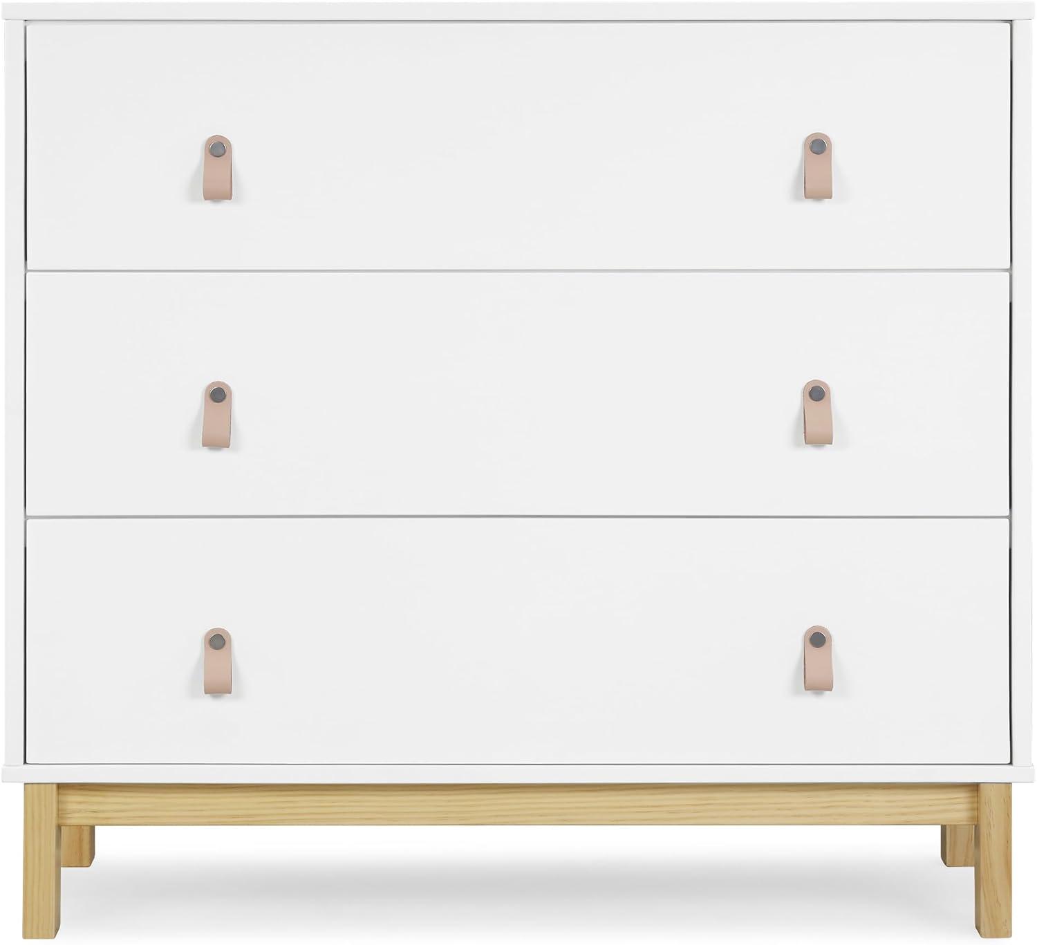 The babyGap by Delta Children Legacy 3 Drawer Dresser with Leather Pulls and Interlocking Drawers is a great addition to any nursery or kids’ bedroom. Crafted of sturdy, sustainable materials like New Zealand pine to give it plenty of longevity, this versatile dresser has three spacious drawers for plenty of storage and leather drawer pulls for a bit of fun. For your child’s safety, this dresser is outfitted with an interlocking drawer system that limits the number of drawers that can be opened at one time. Available in Bianca White/Natural, Navy/Natural and Ebony/Natural. Easily mix, match, and layer with other items from the babyGap Furniture and Bedding Collection. Pair with the coordinating Changing Top #W173810 to convert the dresser into a convenient changing table (Changing Top and changing pad sold separately).