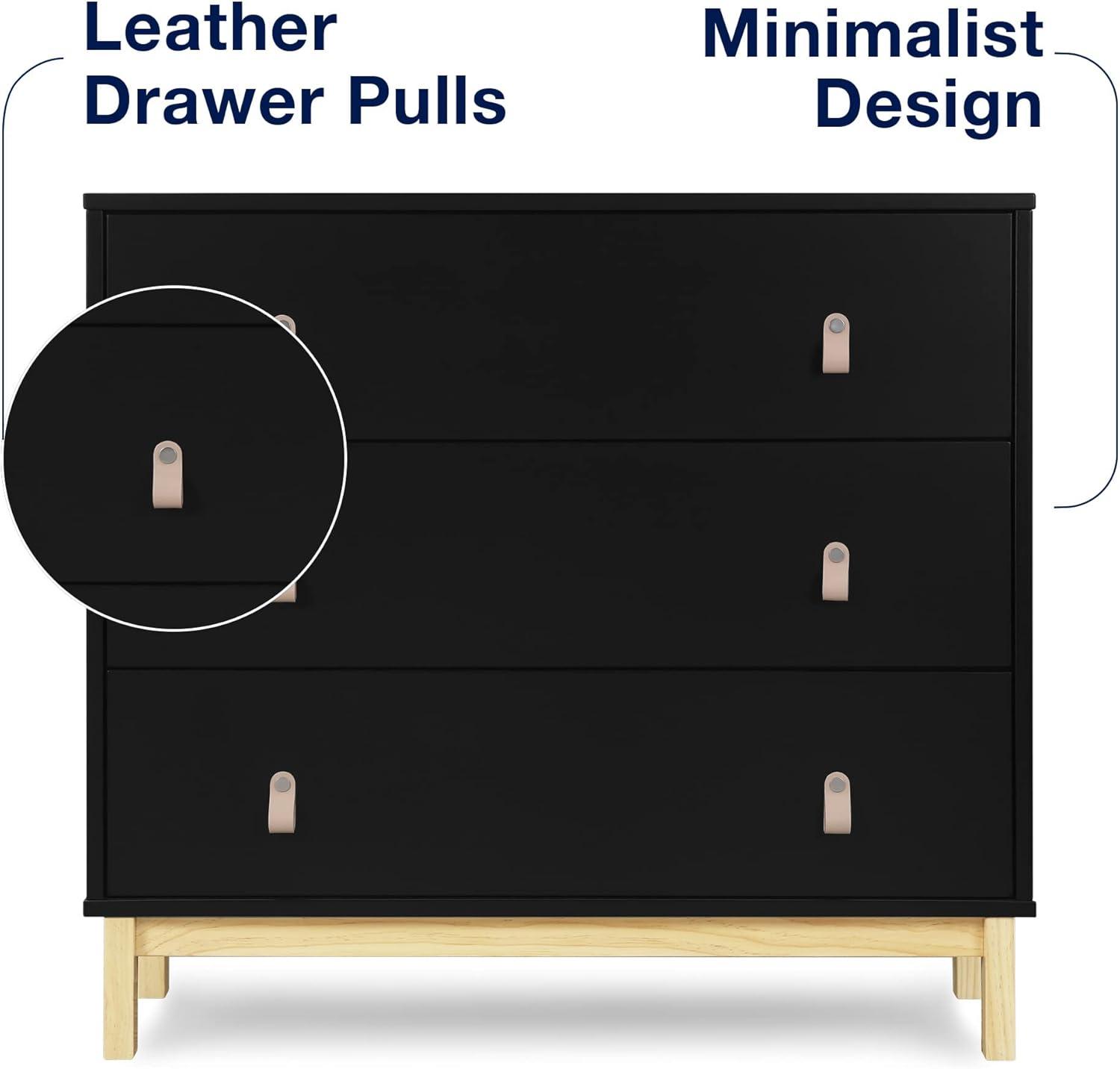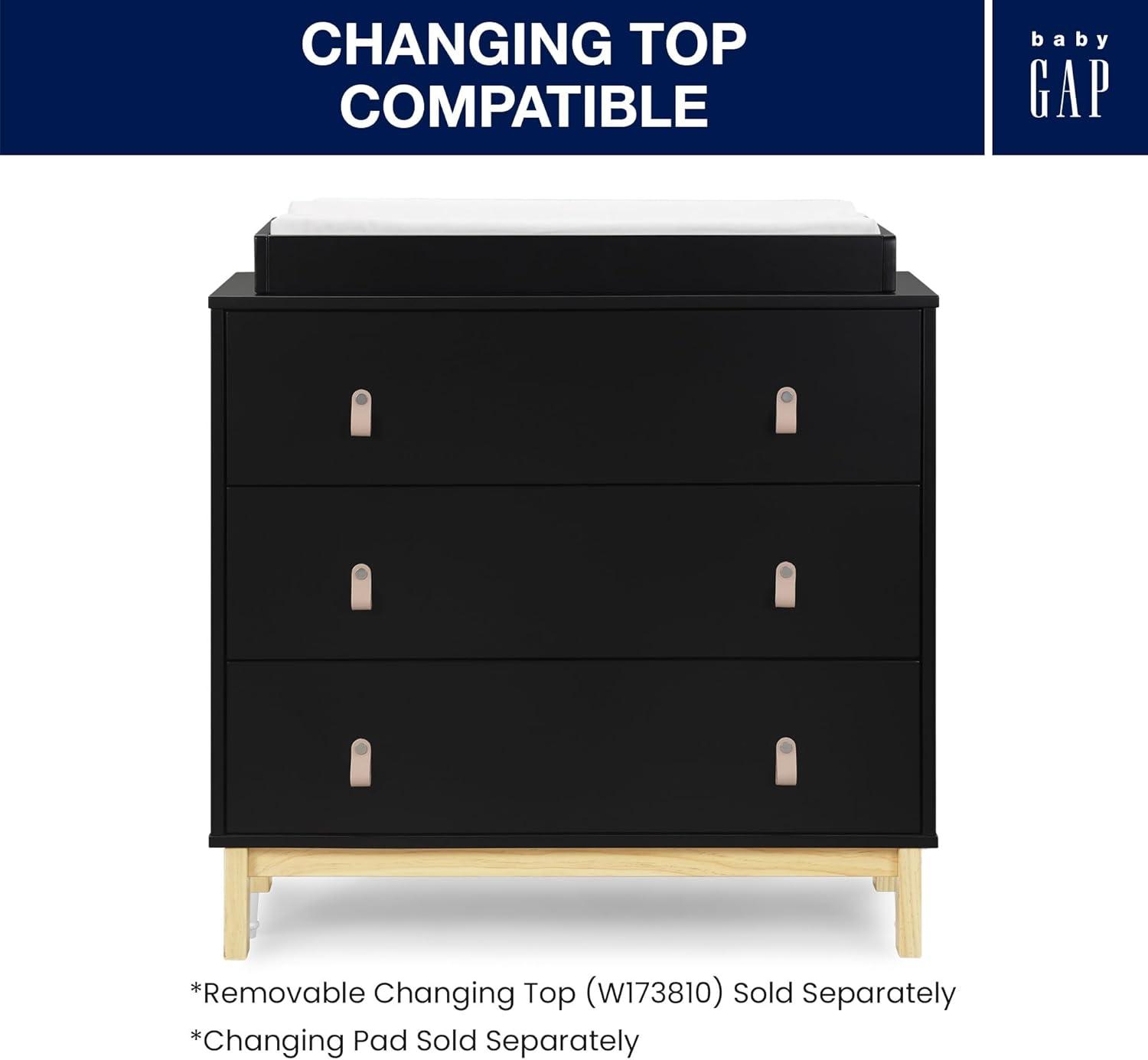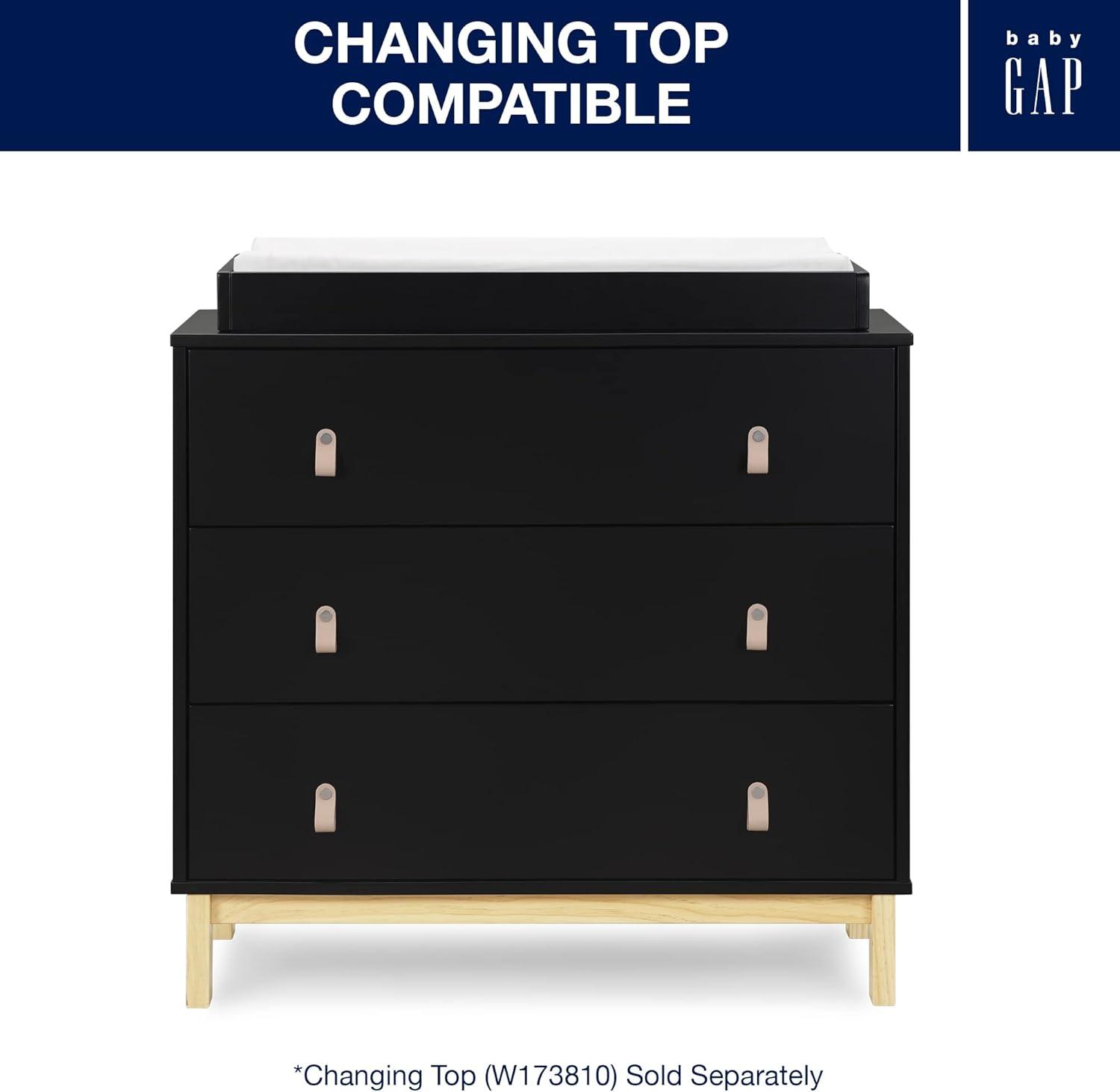 Delta Children babyGap Legacy 3 Drawer Dresser with Leather Pulls and Interlocking Drawers, Bianca White/Natural(Ebony/Natural)