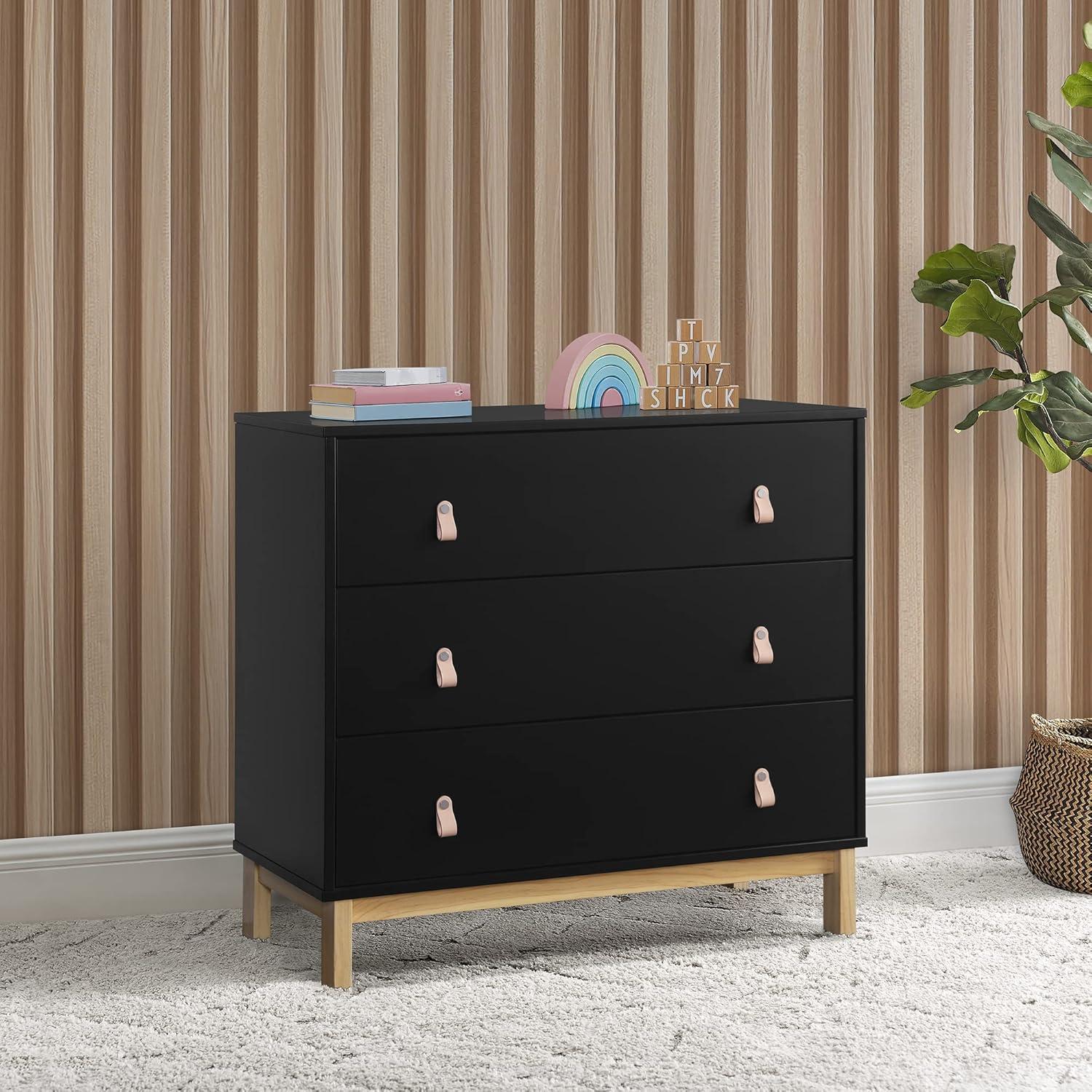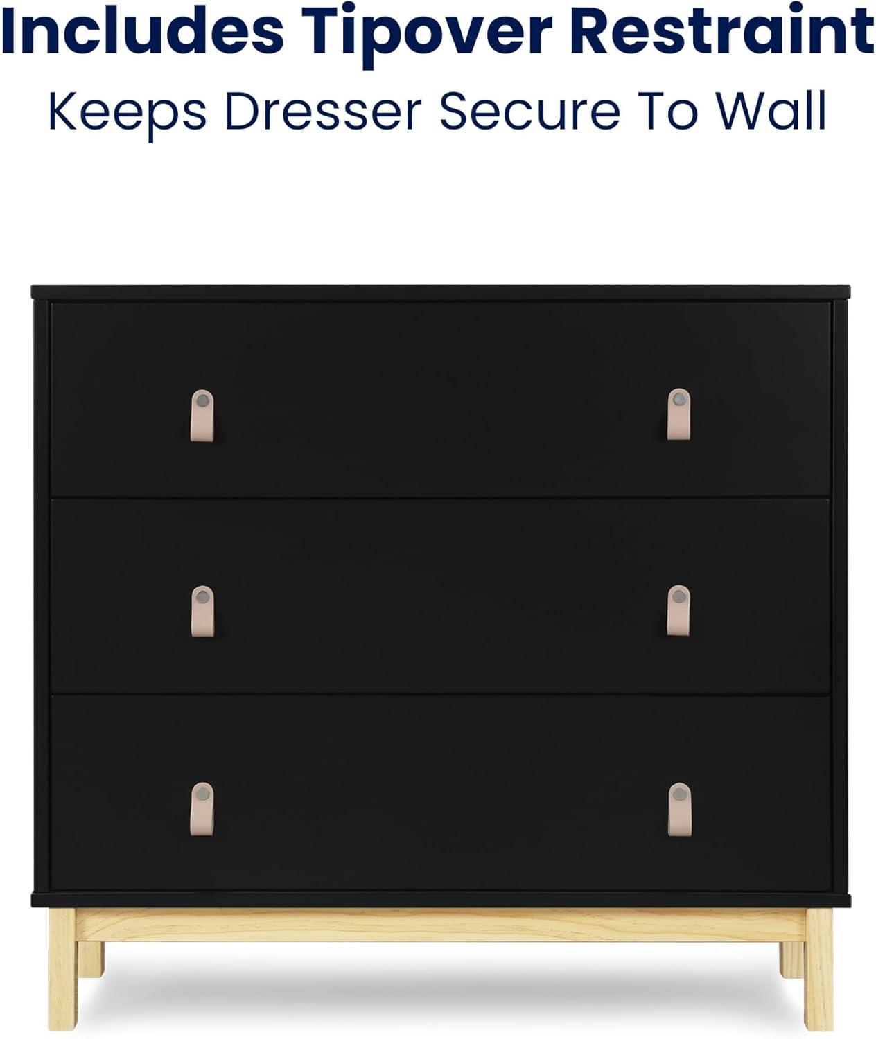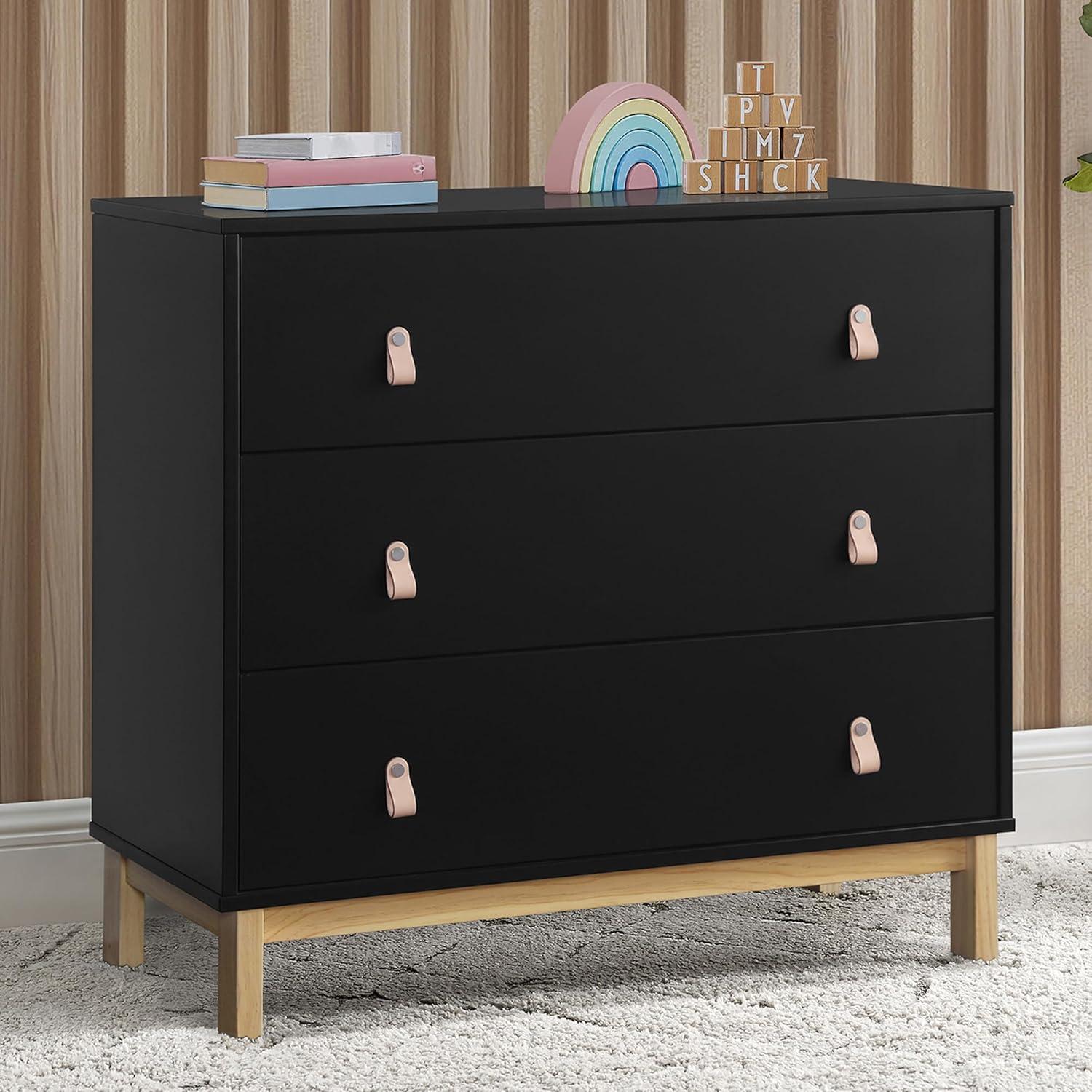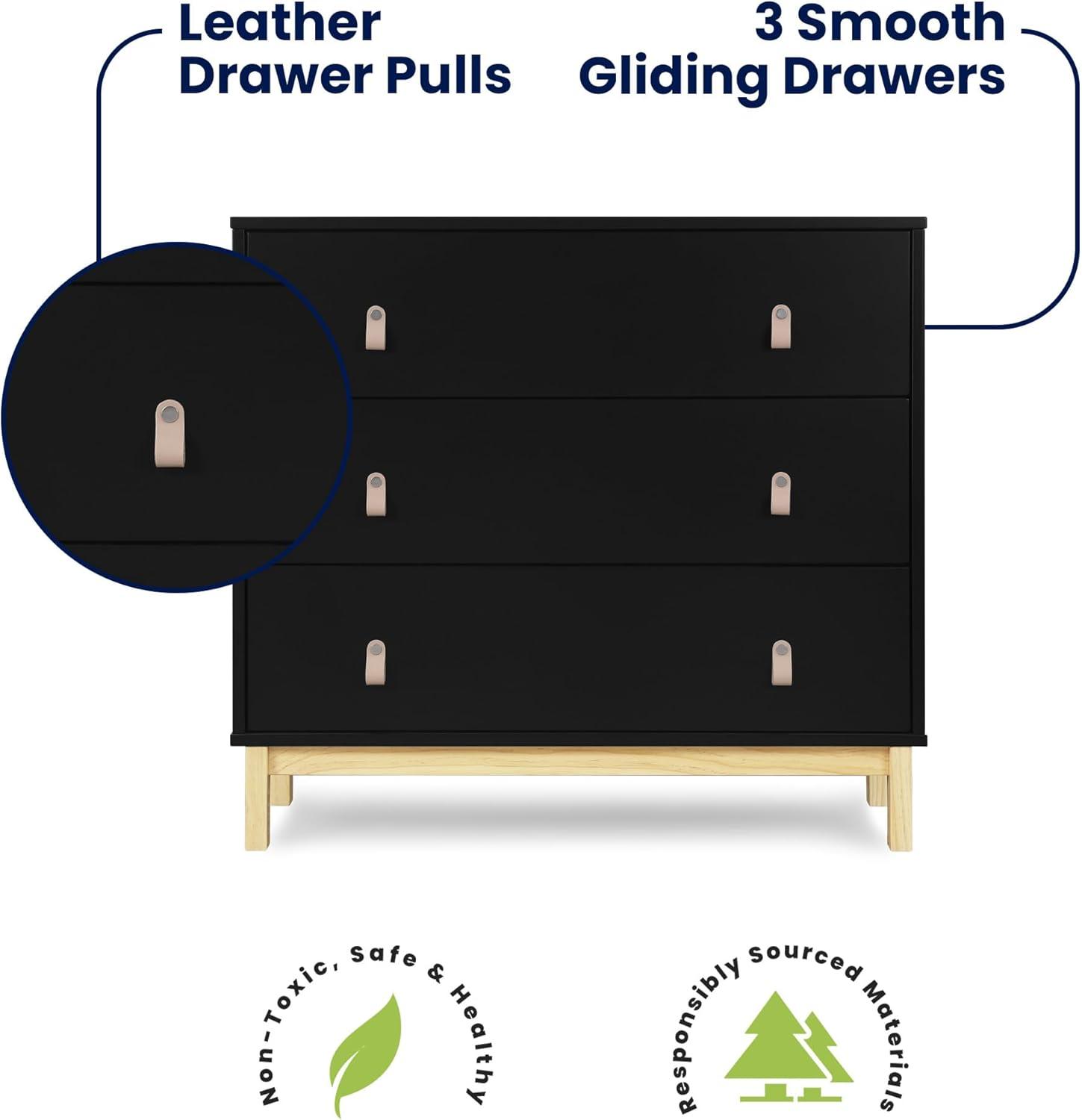 Delta Children babyGap Legacy 3 Drawer Dresser with Leather Pulls and Interlocking Drawers, Bianca White/Natural(Ebony/Natural)