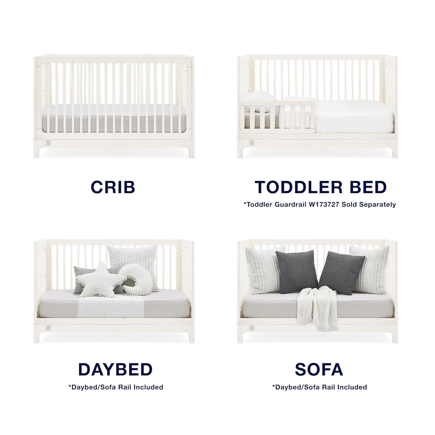 4-IN-1 CONVERTIBLE CRIB: Crib converts to a toddler bed, daybed, and sofa (Daybed and Sofa Rails included; Toddler Guardrail #W173726 sold separately)