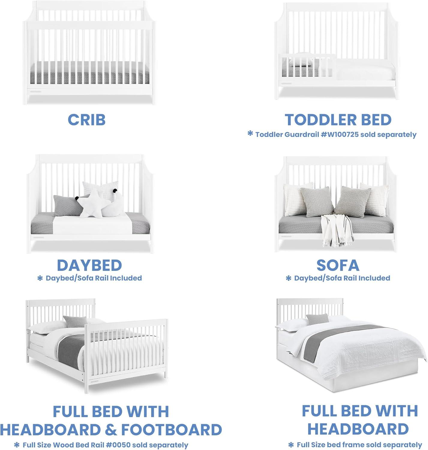 CONVERTIBLE CRIB: Converts from a crib to a toddler bed, daybed and full size bed with headboard & footboard (Daybed Rail included; Toddler Guardrail #0080 and Full Size Bed Rails #0050 sold separately)