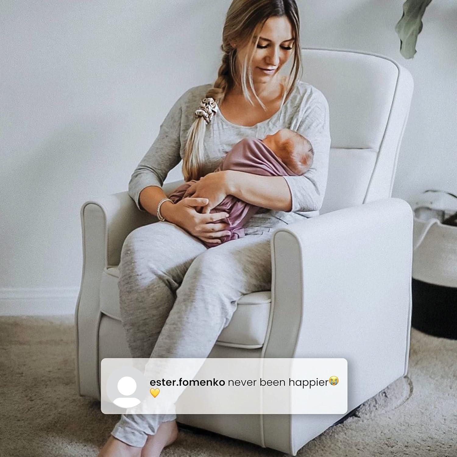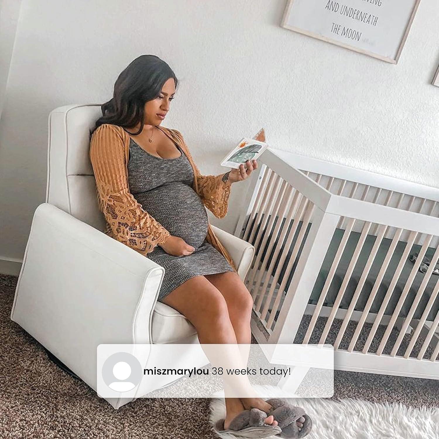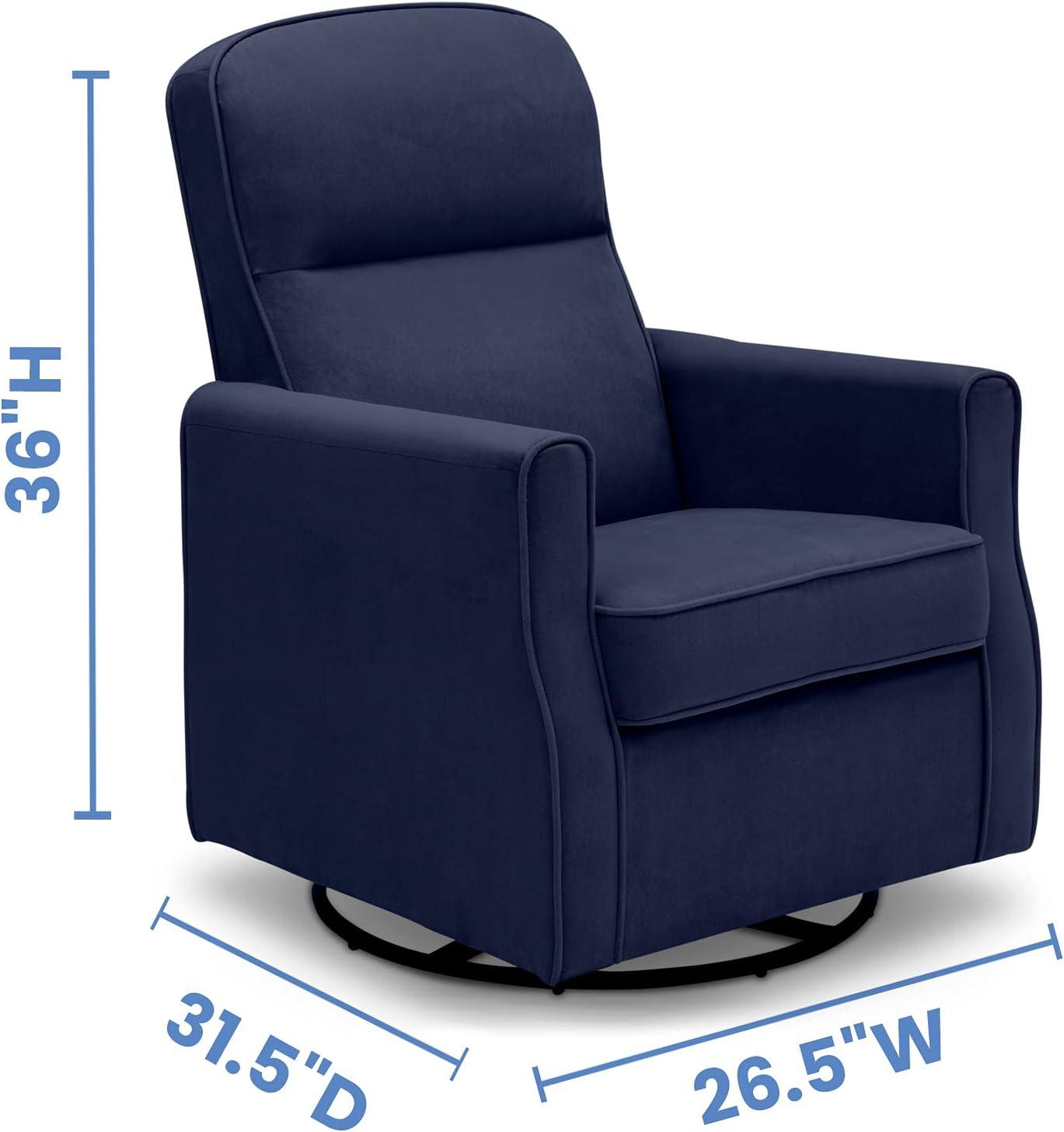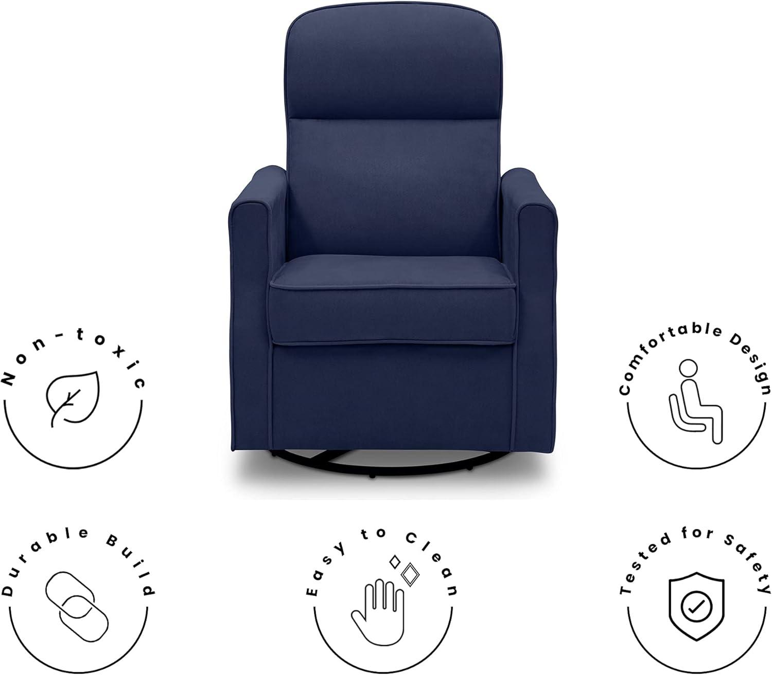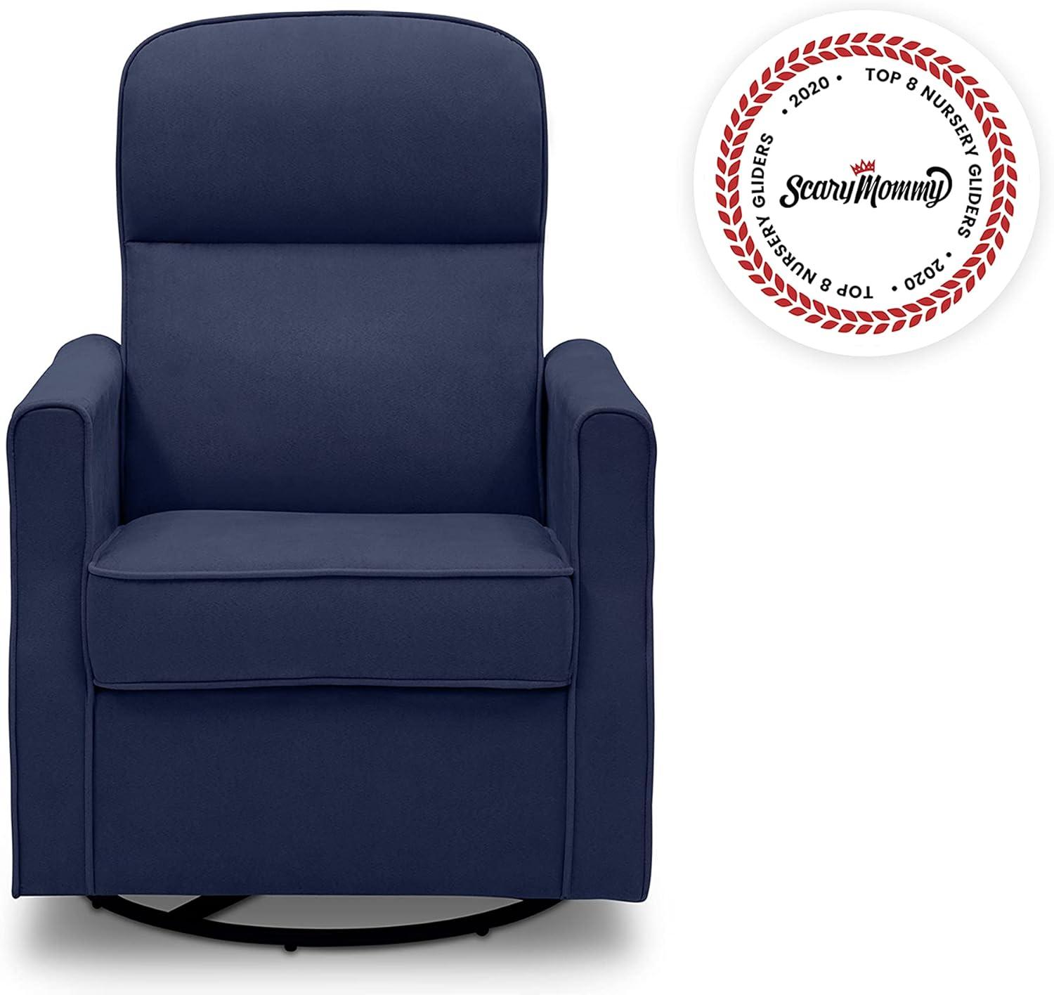 The Blair Slim Nursery Glider Swivel Rocker Chair from Delta Furniture allows you to sink-in and snuggle up with your baby, no matter how much floor space you have available. This glider features a striking, curved silhouette that stands up to real life-it's upholstered in durable woven fabric that is easy to clean. The smaller footprint of this slim glider helps you maximize every square inch without sacrificing comfort. The chair's smooth, built-in gliding and swivel system allows you to rock and relax with your little one for years to come. Delta Children was founded around the idea of making safe, high-quality children's furniture affordable for all families. They know there's nothing more important than safety when it comes your child's space. That's why all Delta Children products are built with long-lasing materials to ensure they stand up to years of jumping and playing. Plus, they are rigorously tested to meet or exceed all industry safety standards.