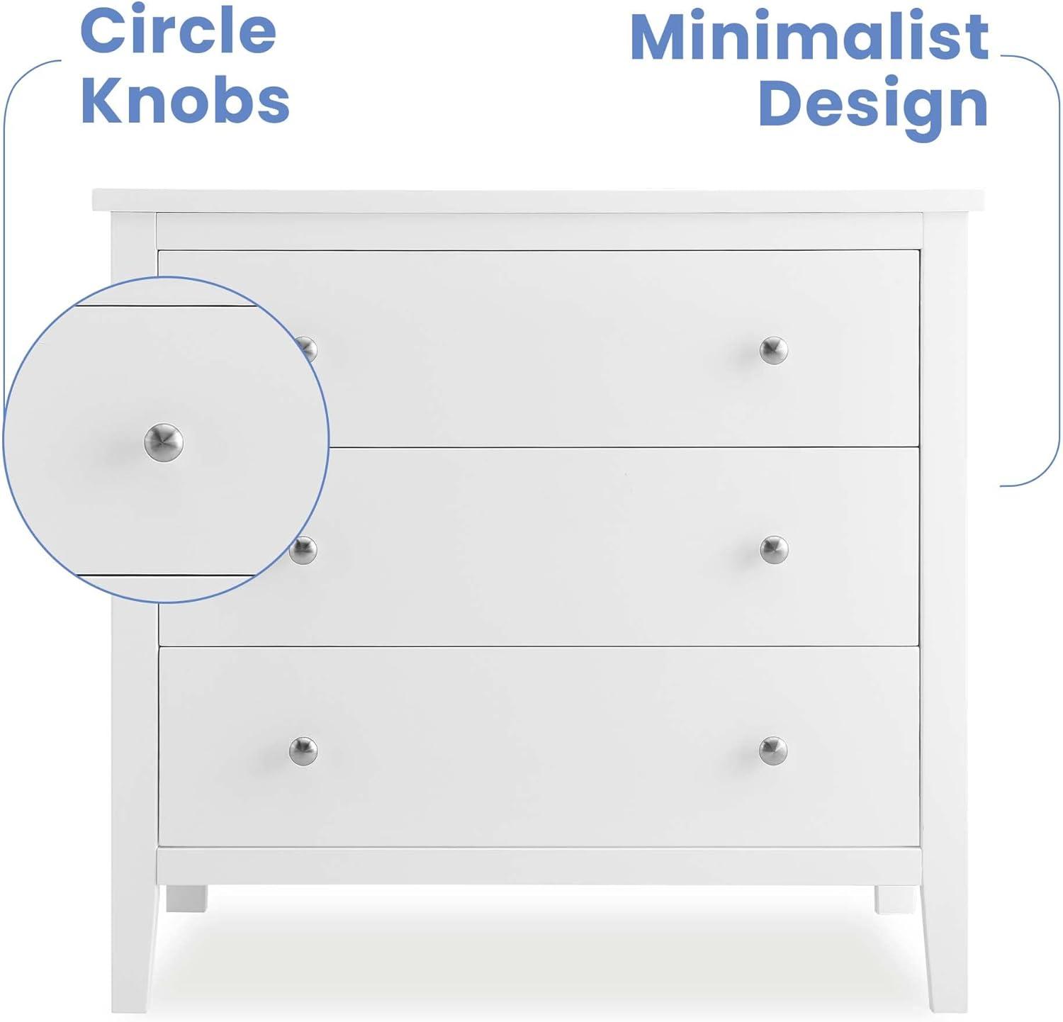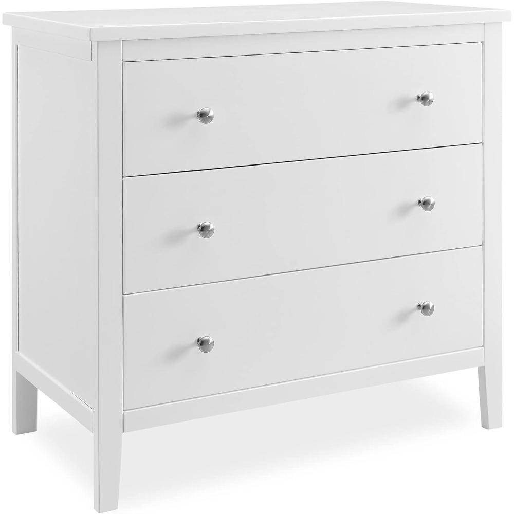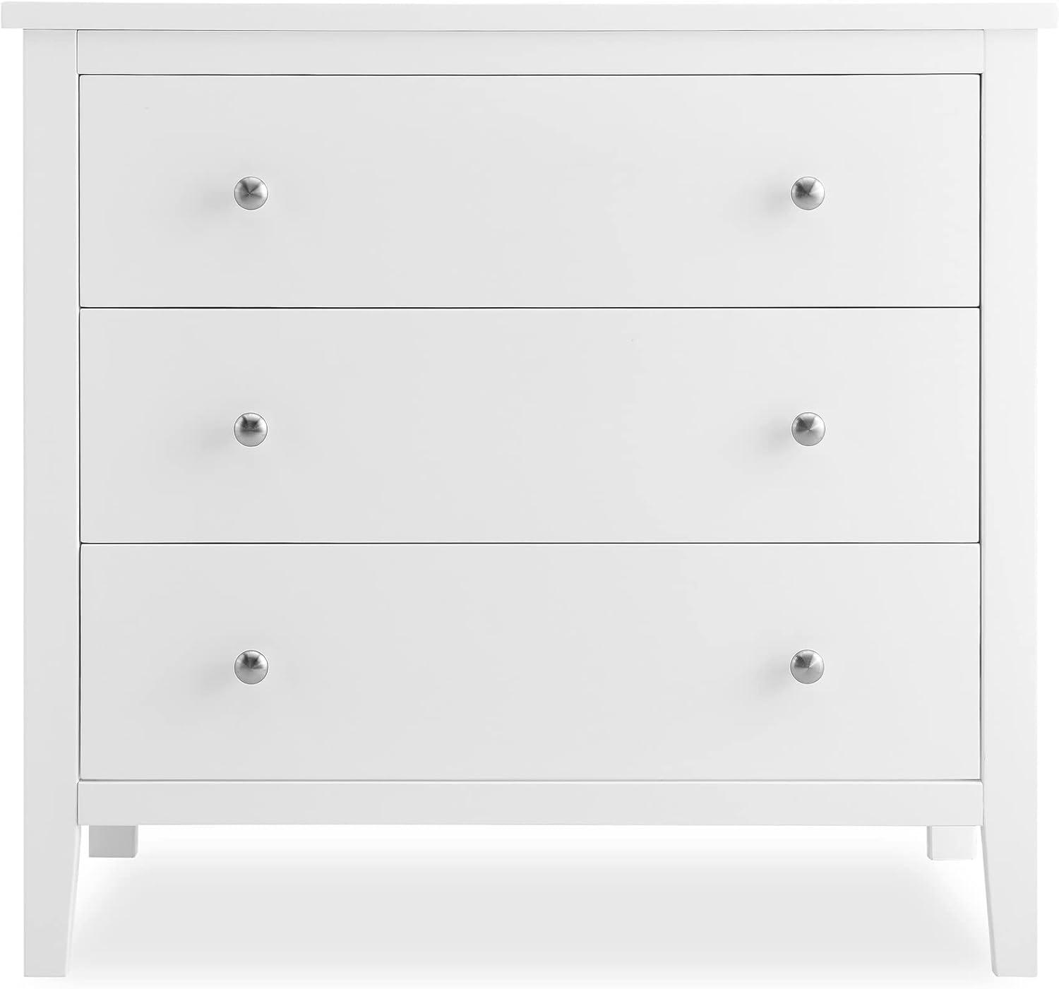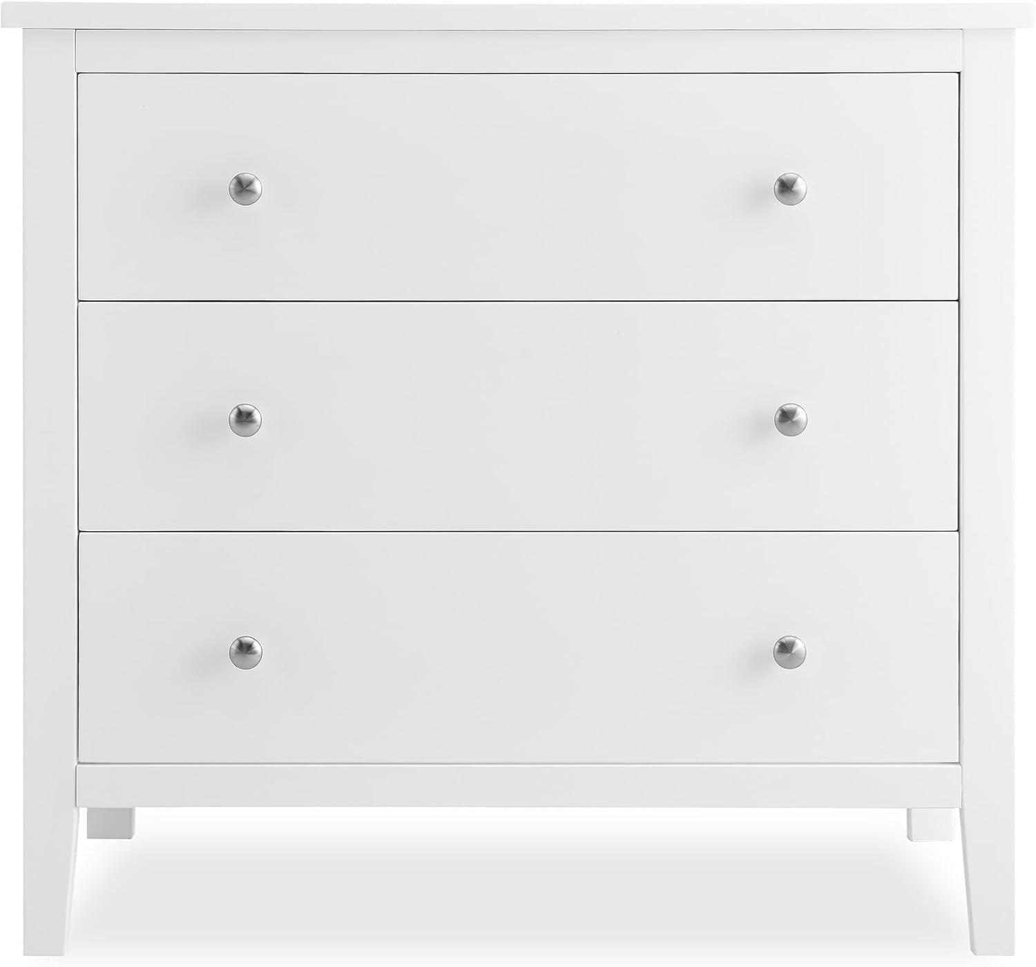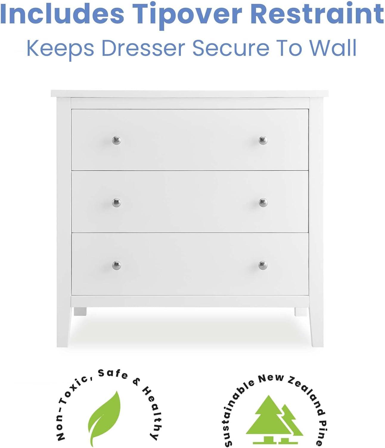 Bring your dream nursery to life with the Campbell 3 Drawer Dresser by Delta Children. Clean lines, playful round knobs and tapered legs define this beautiful dresser. This dresser also has a smooth metal glide system with safety stops that prevent drawers from pulling out, so it is easy and safe for kids to manage on their own. Pair this dresser with other pieces in the Campbell Nursery Collection for a coordinated look, as well as the coordinating Changing Top #W100810 (sold separately) to transform this dresser into a convenient changing table.