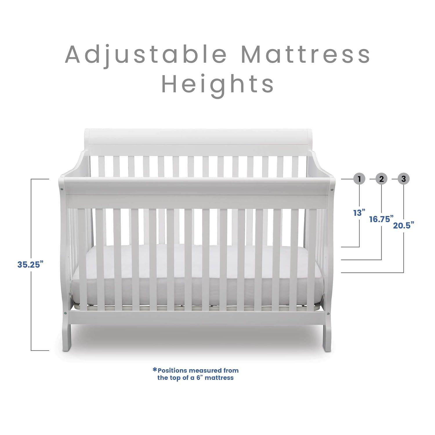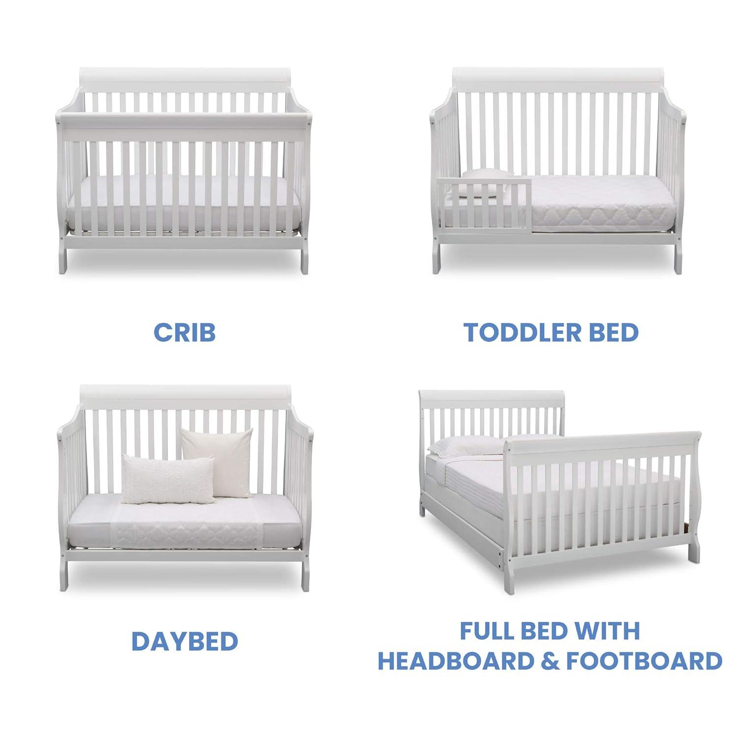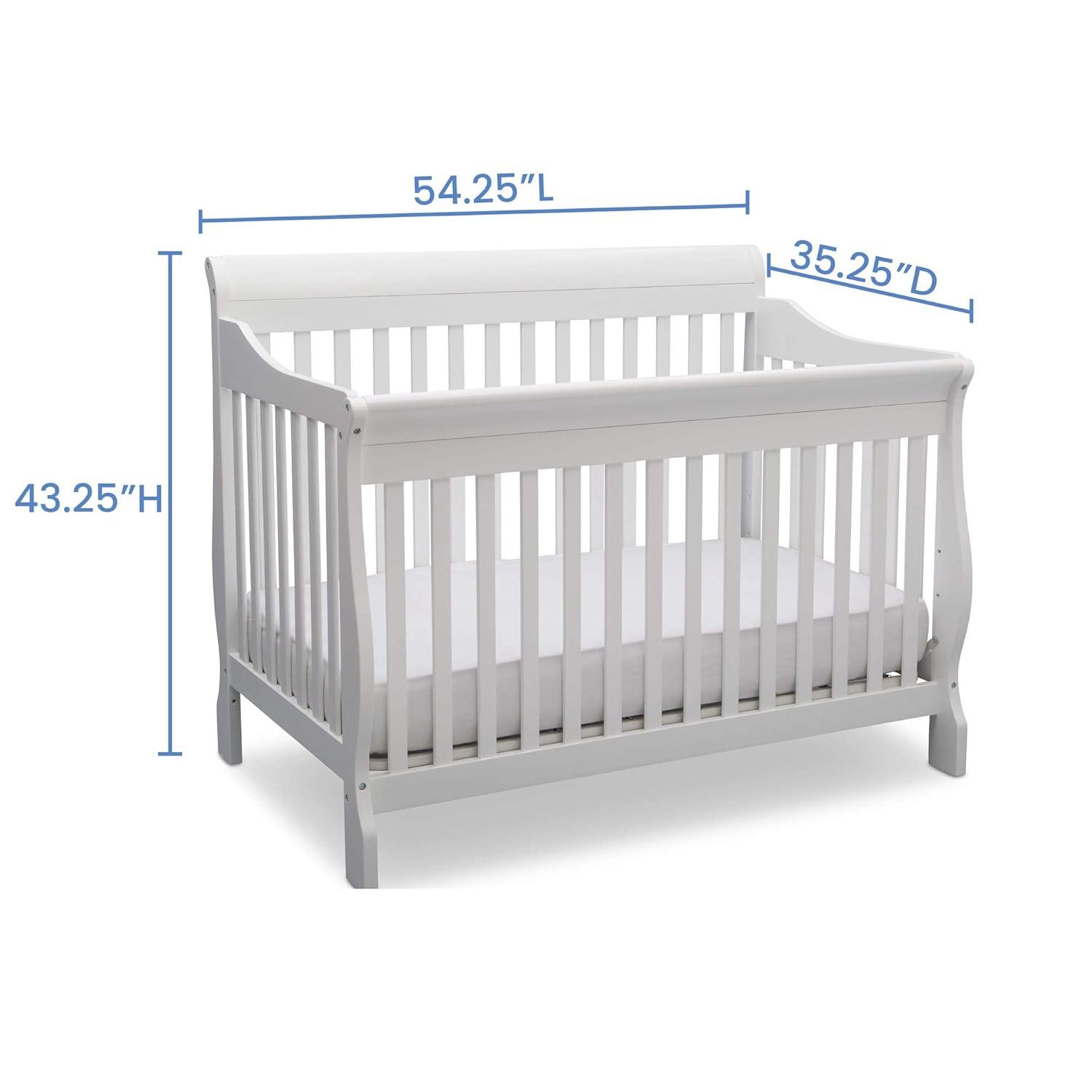 Truly timeless, the Canton 4-in-1 Crib from Delta Children is embellished with a sleek, sleigh-style headboard, beautifully curved legs, plus a versatile design that converts from a multi-positional crib to a toddler bed, daybed and full size bed. Creating a warm and welcoming space, it's not only aesthetically pleasing, it's extremely safe-JPMA certified, it has gone though rigorous testing to ensure your baby's safety for years to come.