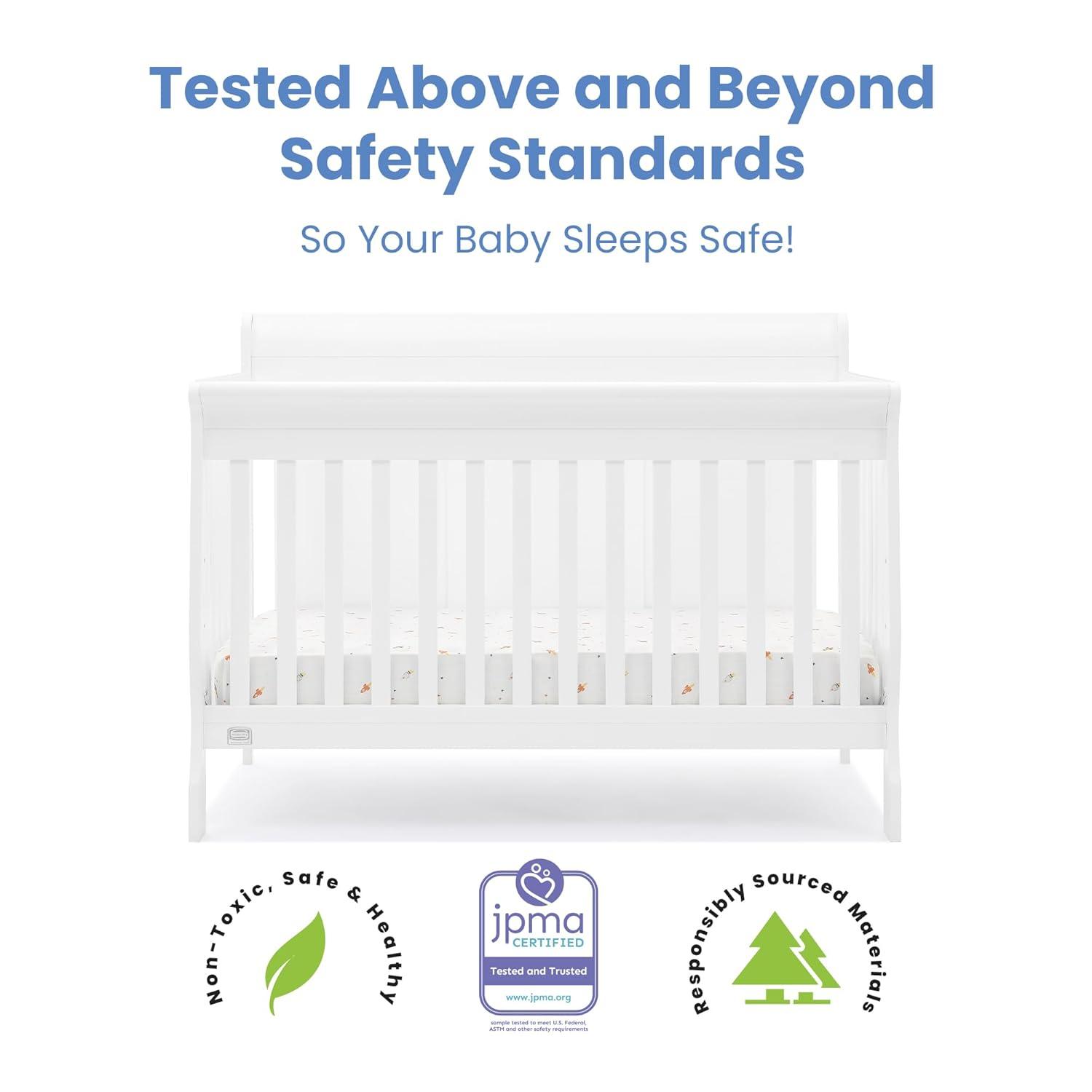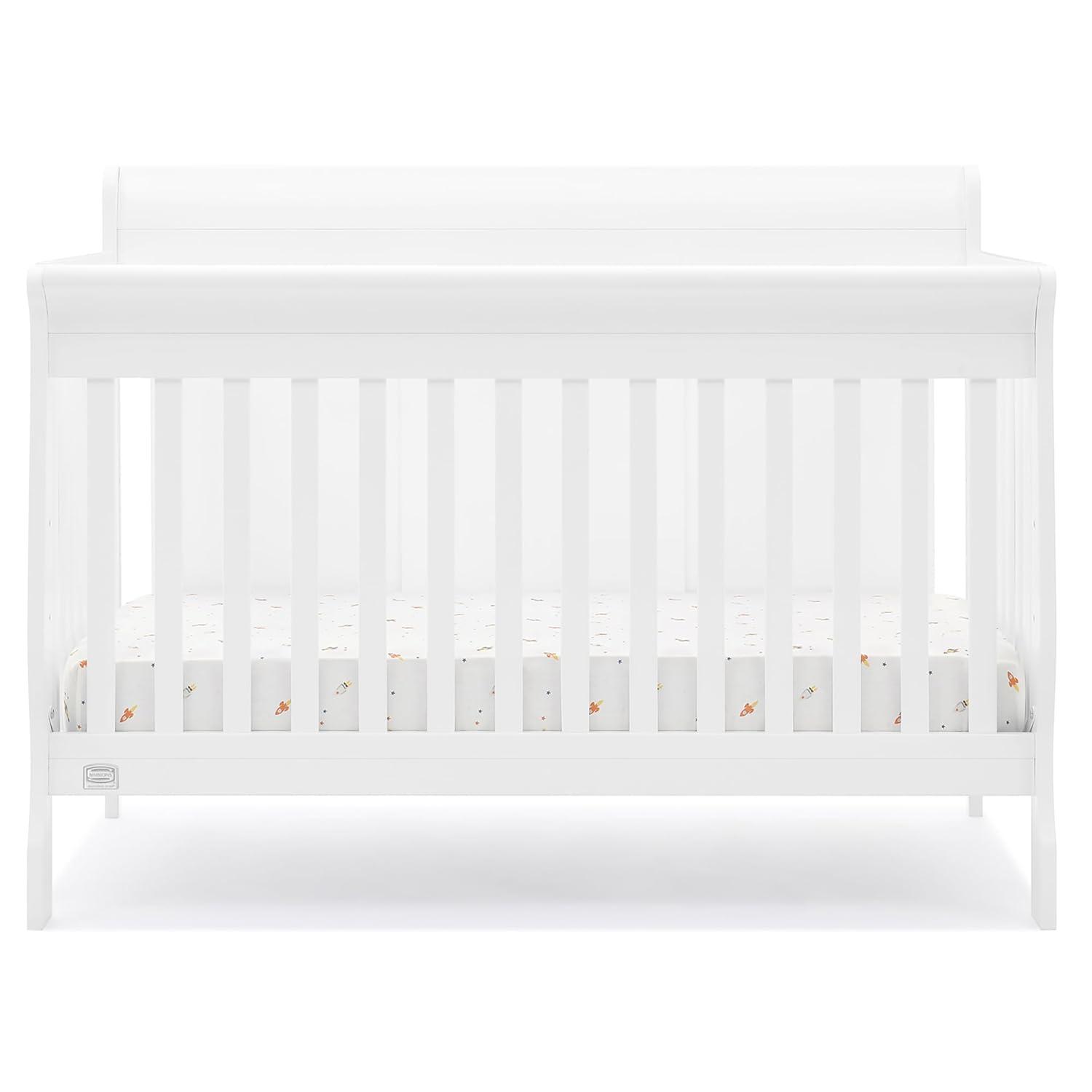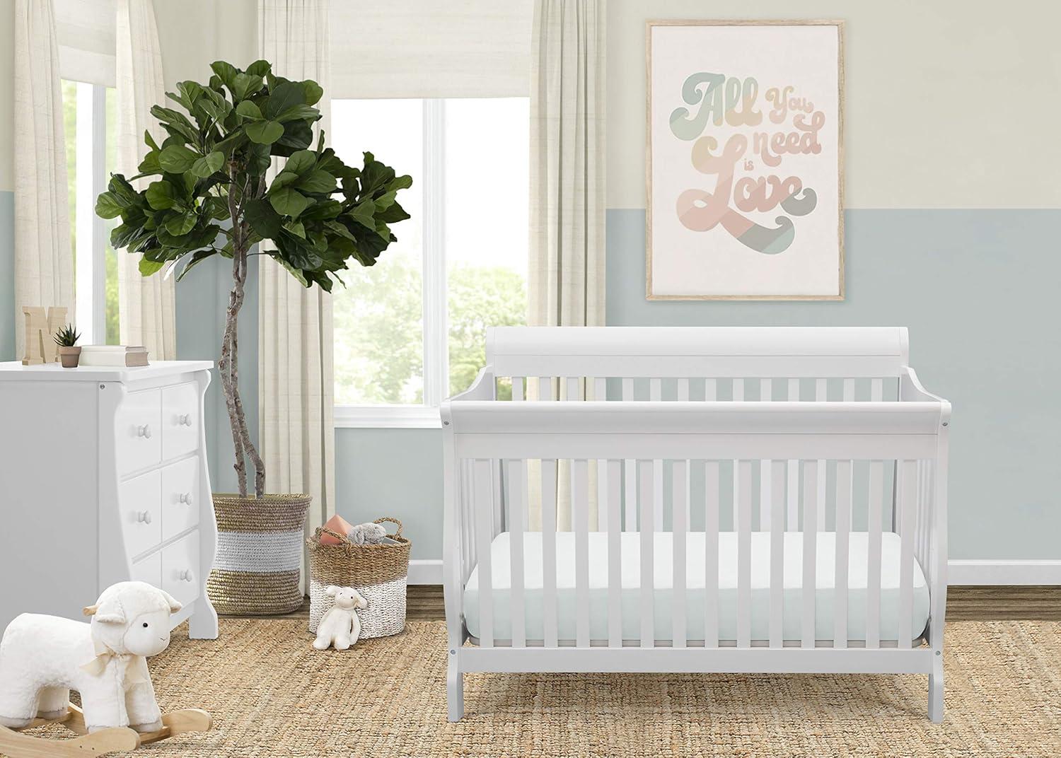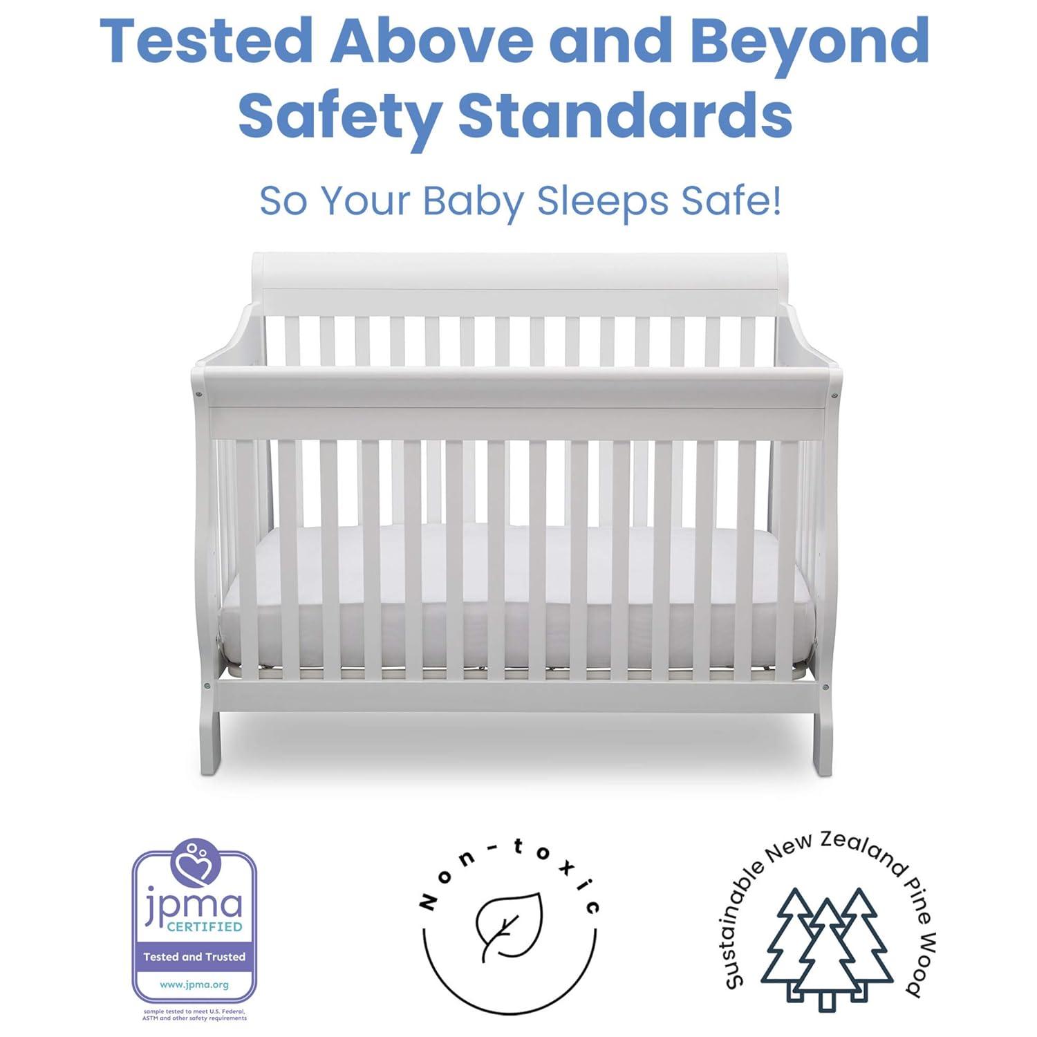 Truly timeless, the Canton 4-in-1 Crib from Delta Children is embellished with a sleek, sleigh-style headboard, beautifully curved legs, plus a versatile design that converts from a multi-positional crib to a toddler bed, daybed and full size bed. Creating a warm and welcoming space, it's not only aesthetically pleasing, it's extremely safe-JPMA certified, it has gone though rigorous testing to ensure your baby's safety for years to come.