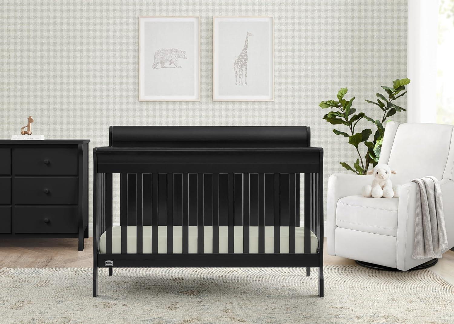 Delta Children Canton 4-in-1 Convertible Crib – Easy to Assemble, Espresso Cherry(Ebony Black)