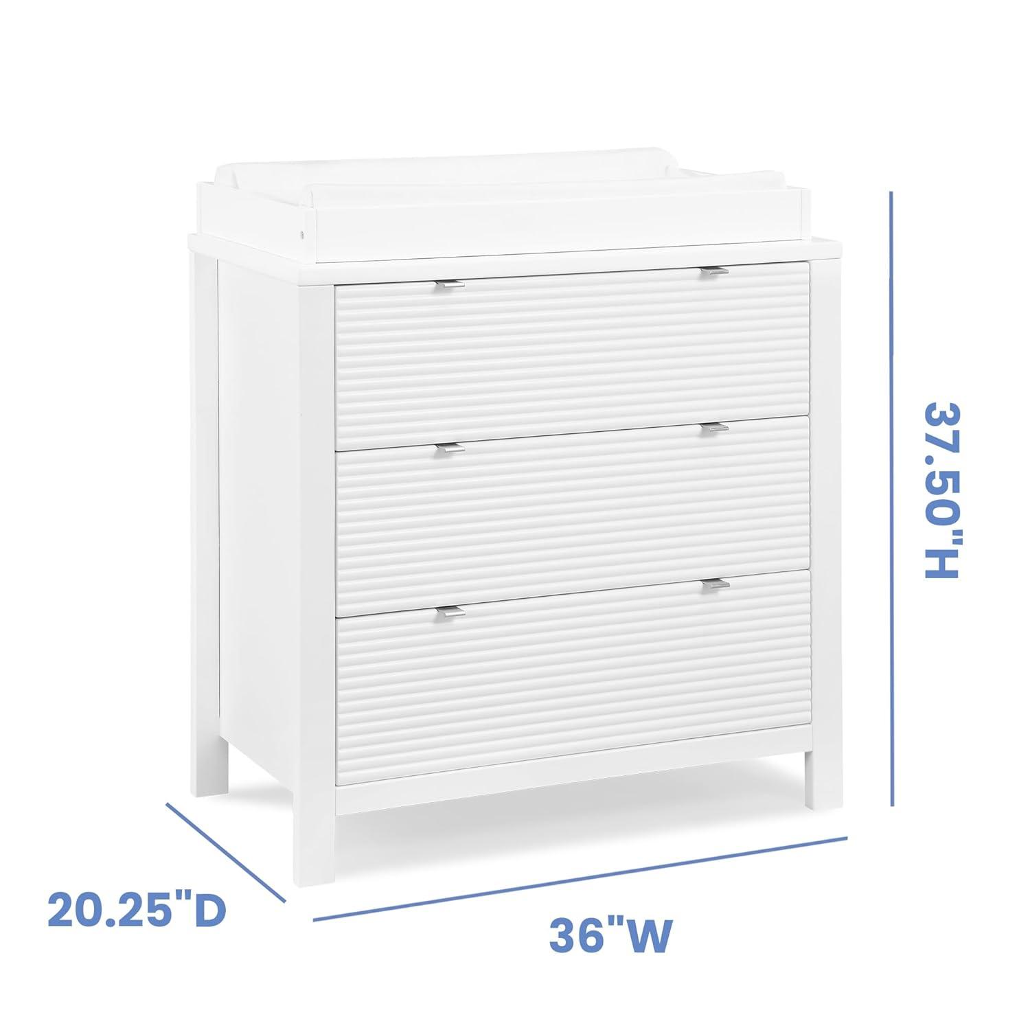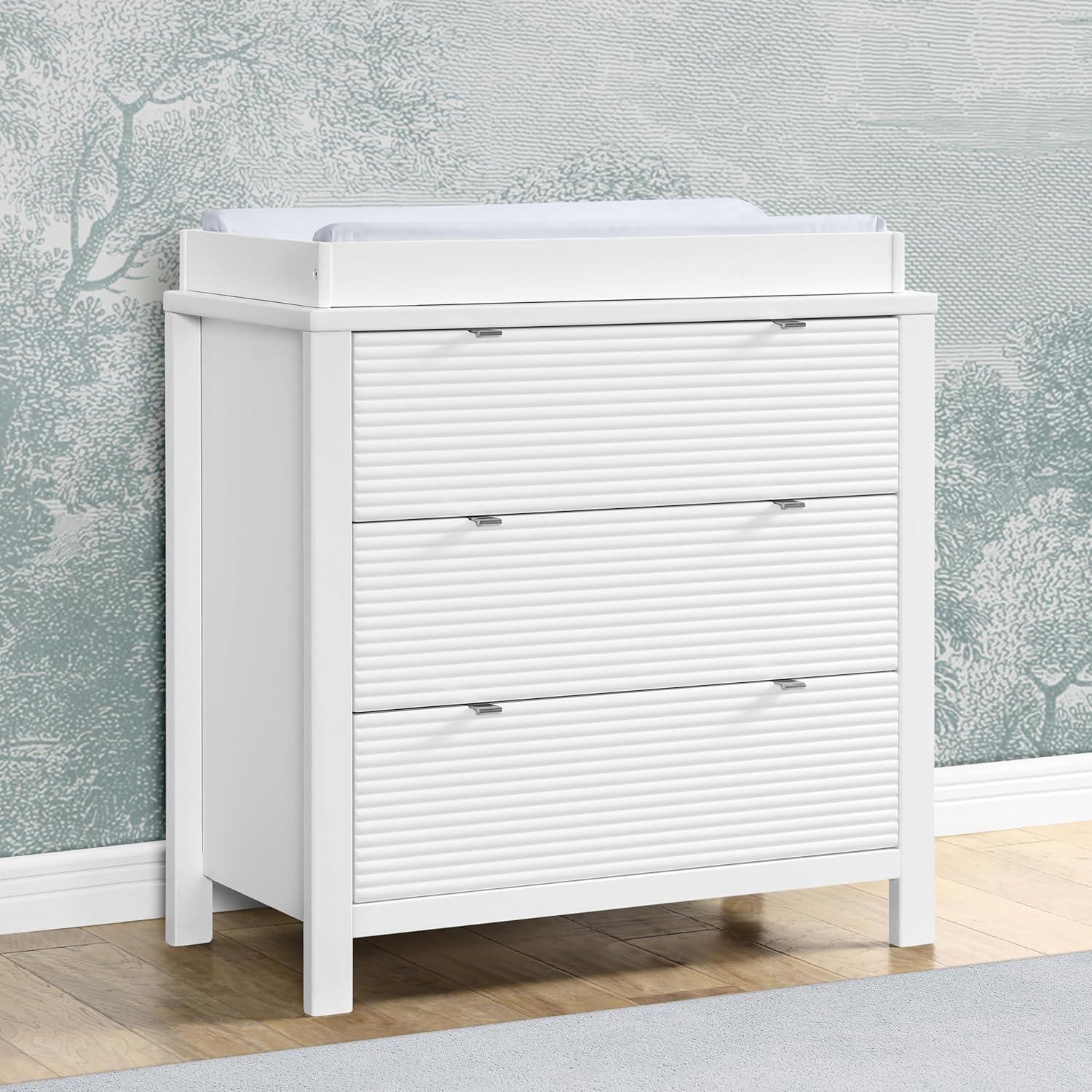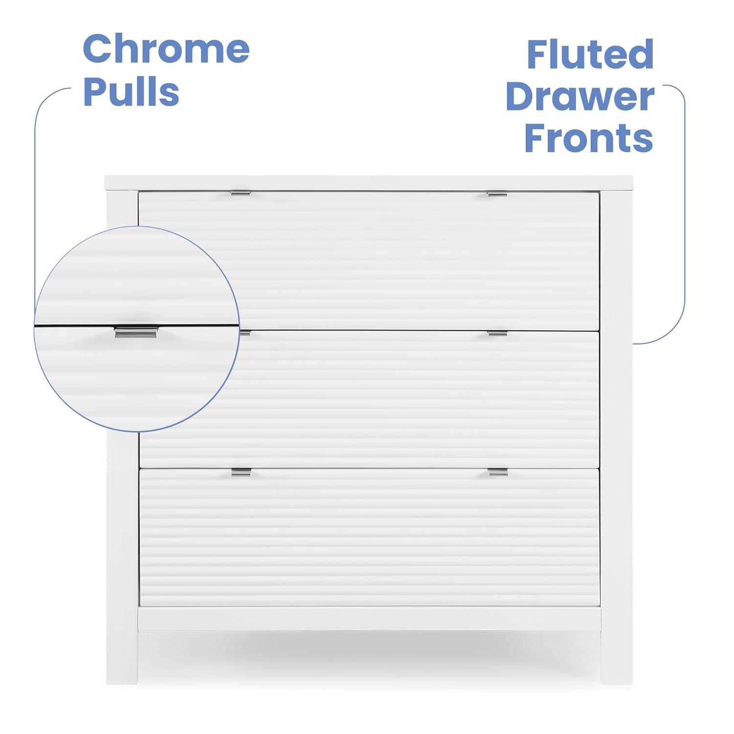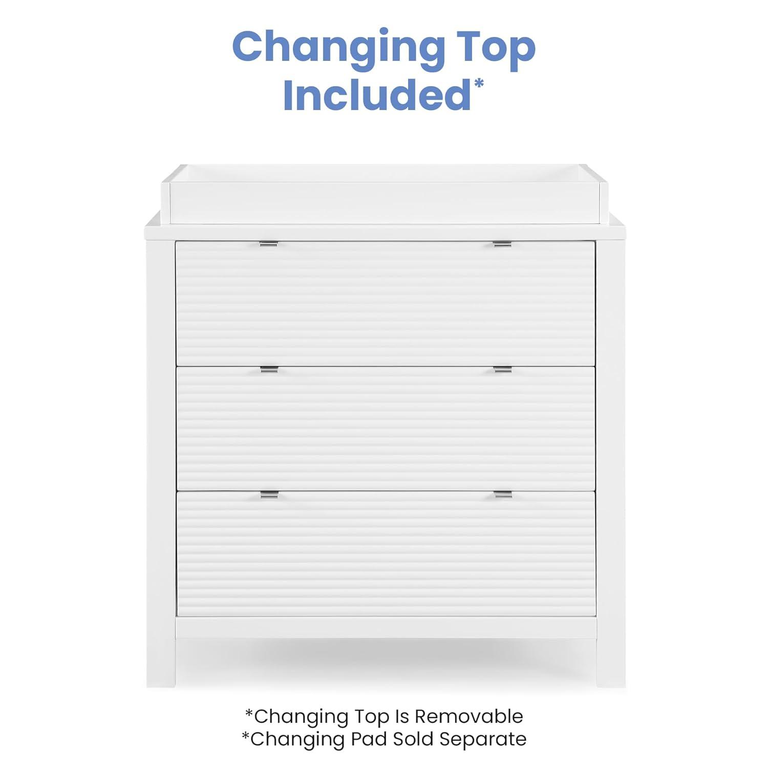 VERSATILE STORAGE: This dresser features 3 drawers for plenty of storage space | Fluted drawer fronts | Changing Top Included (Changing pad sold separately, recommended size: 32″W x 16″D x 1″H)