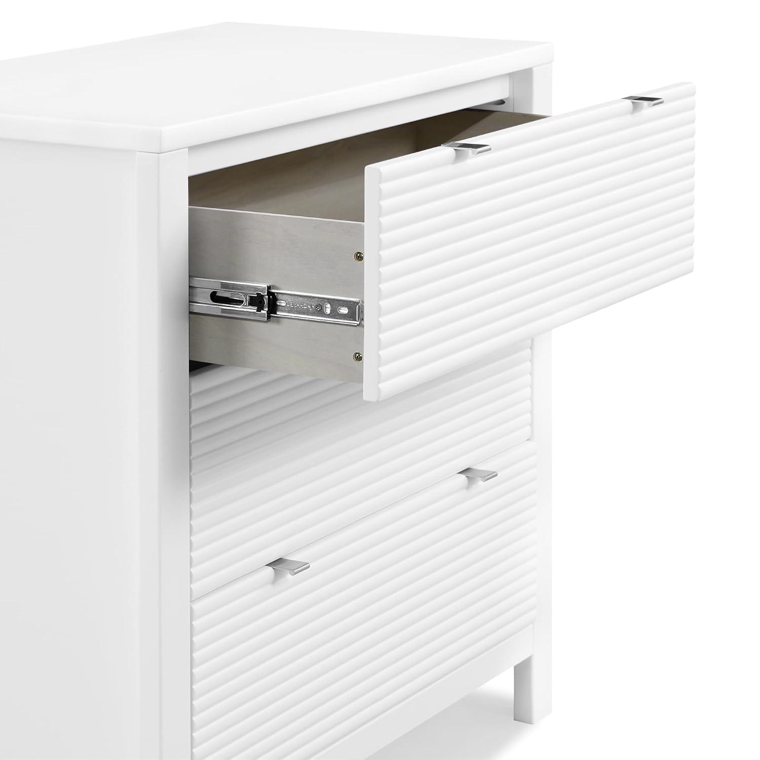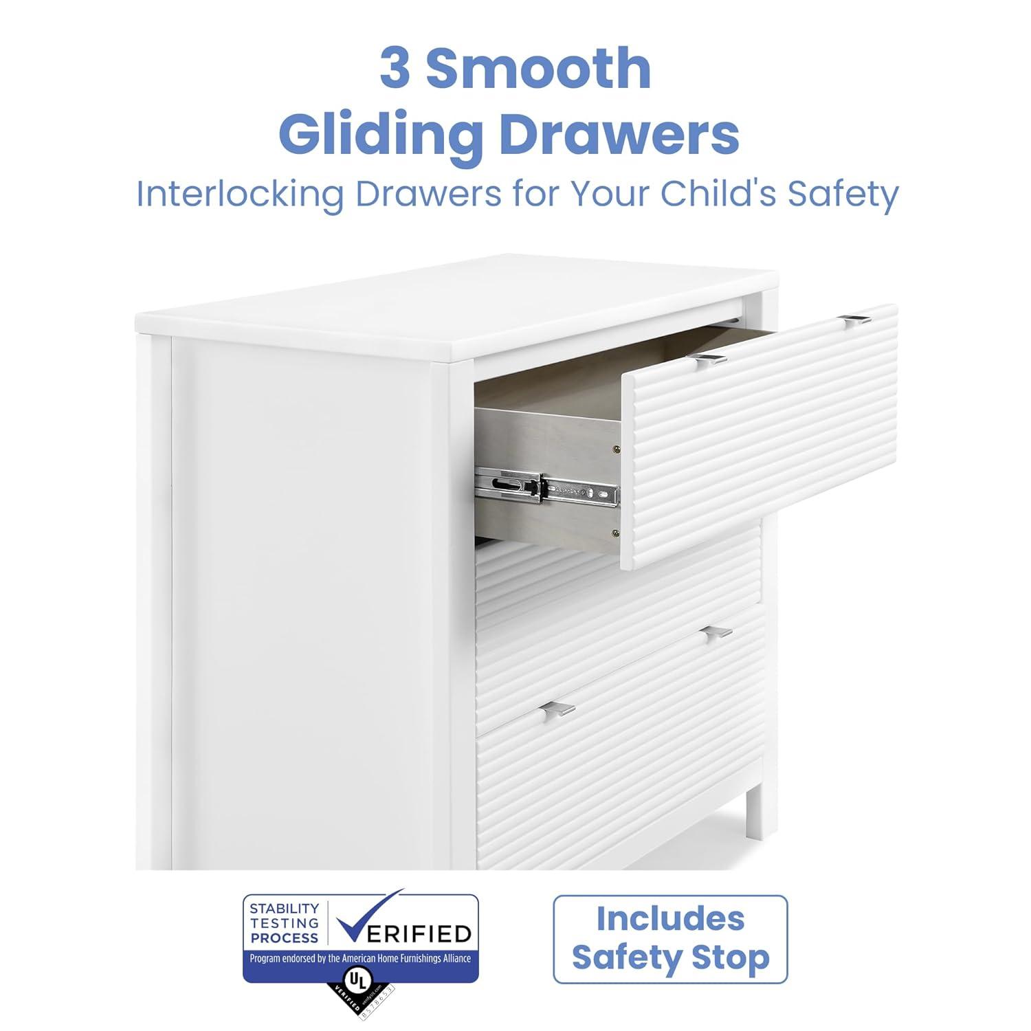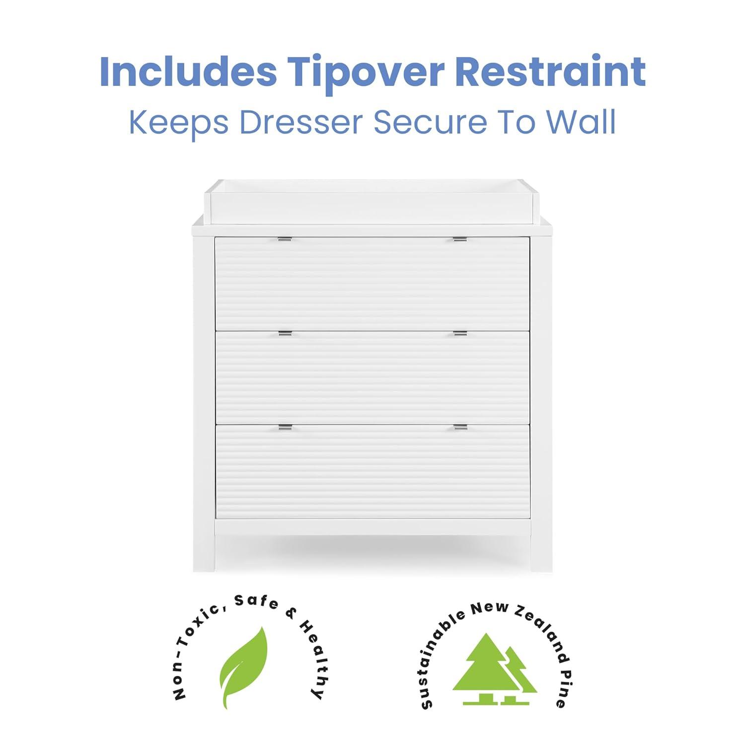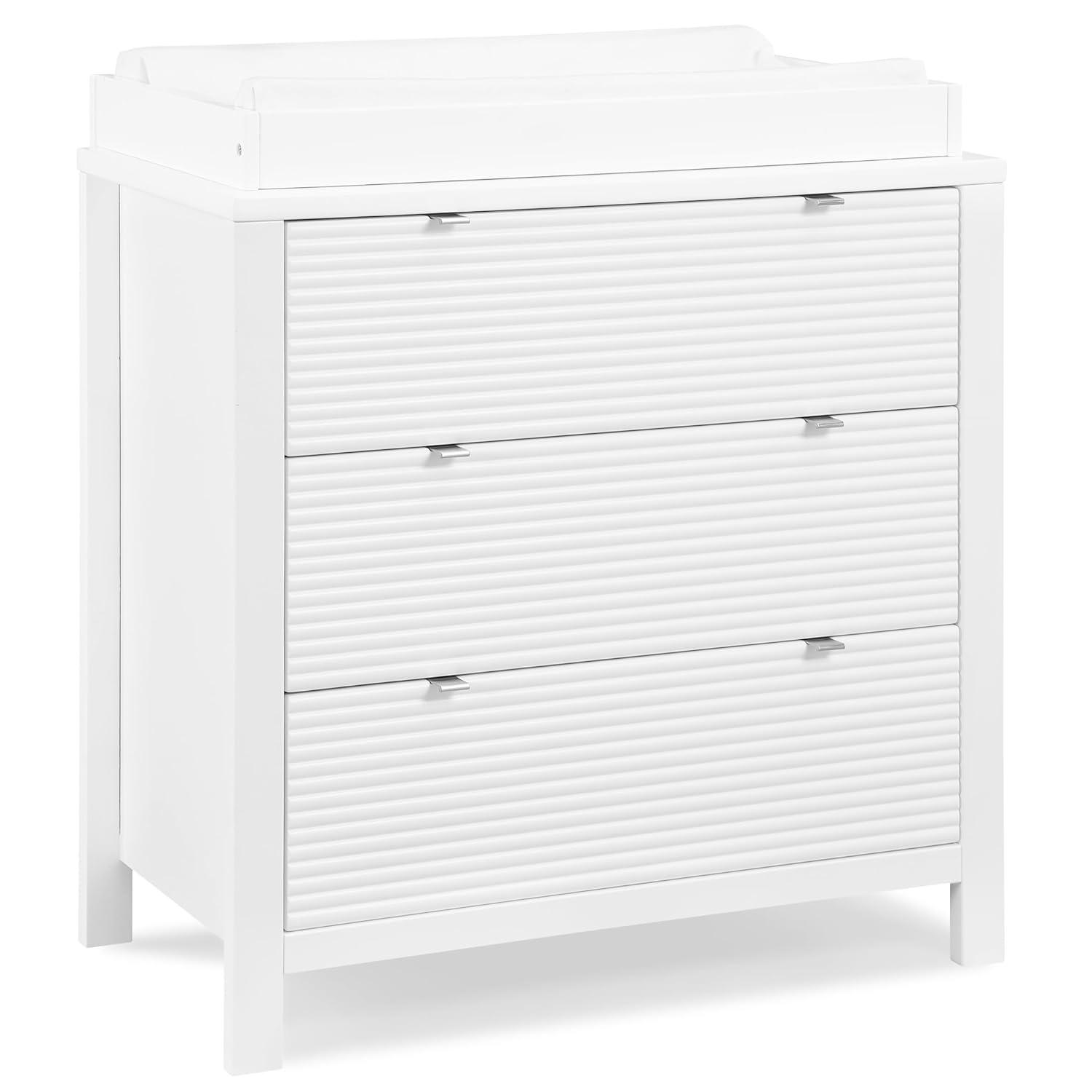 VERSATILE STORAGE: This dresser features 3 drawers for plenty of storage space | Fluted drawer fronts | Changing Top Included (Changing pad sold separately, recommended size: 32″W x 16″D x 1″H)