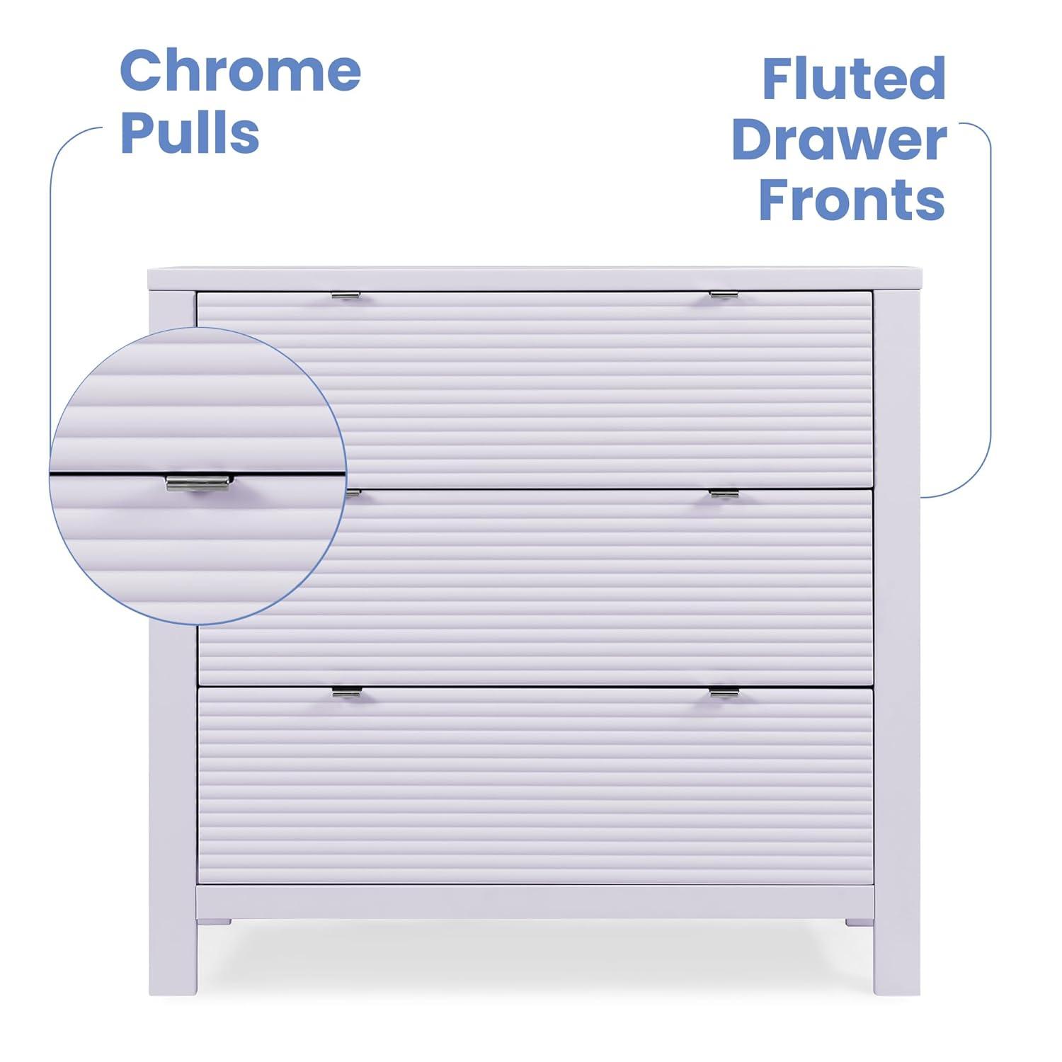 COORDINATING ITEMS: The Delta Children Cassie 3 Drawer Dresser coordinates with the Cassie 4-in-1 Crib by Delta Children | Available in Bianca White, Midnight Gray and Lilac