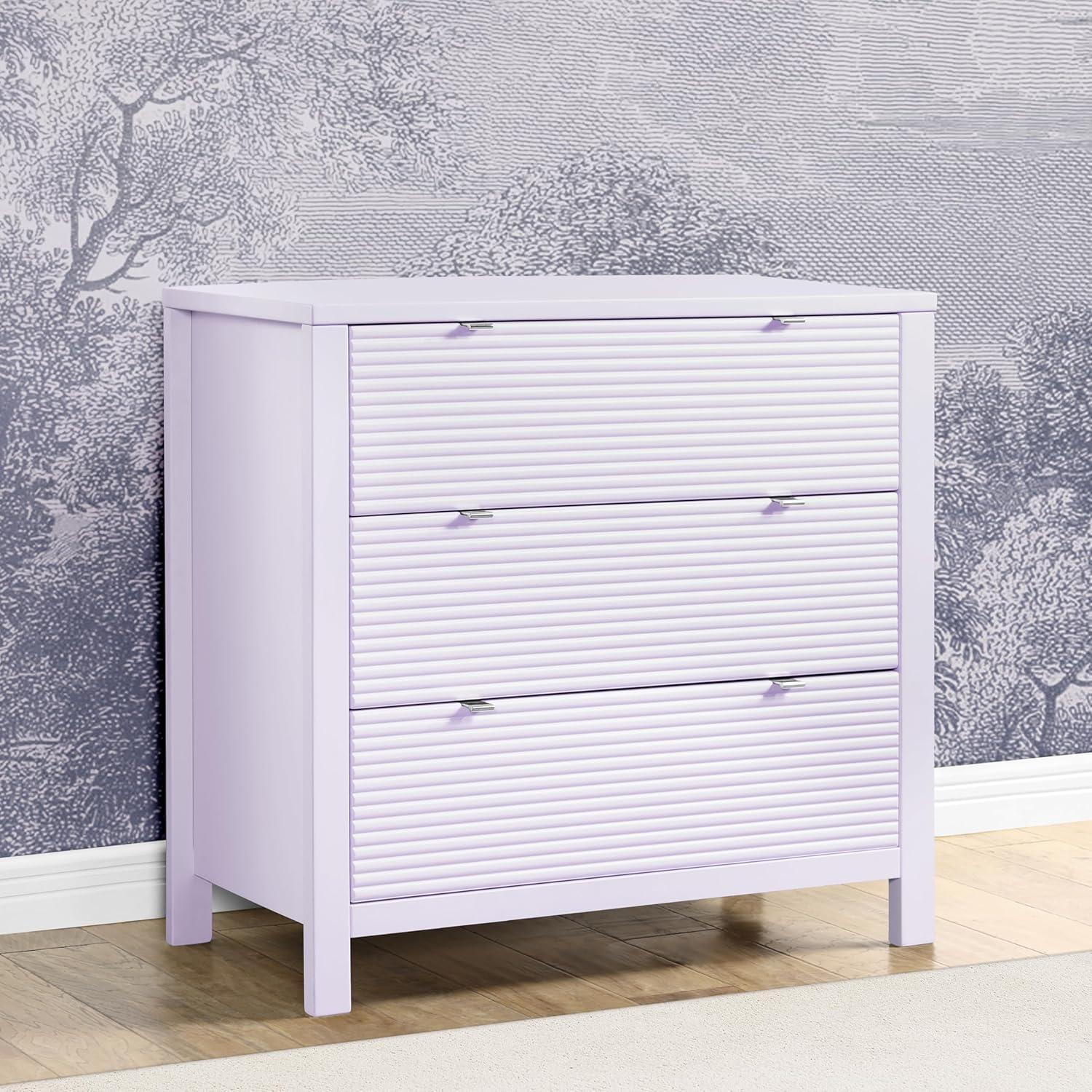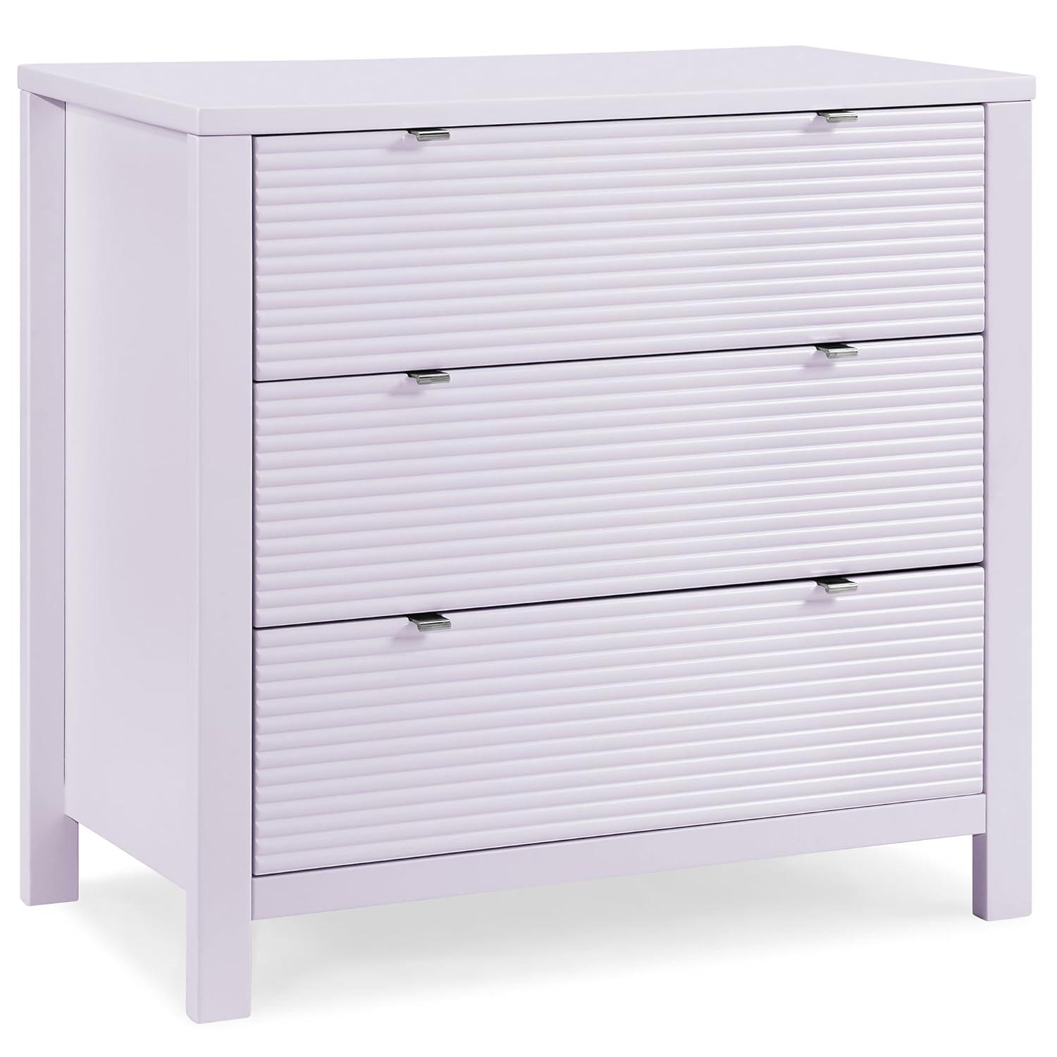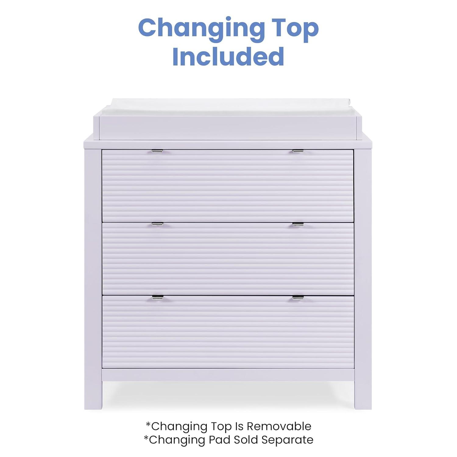 Delta Children Cassie 3 Drawer Dresser with Changing Top and Interlocking Drawers, Bianca White(Lilac)