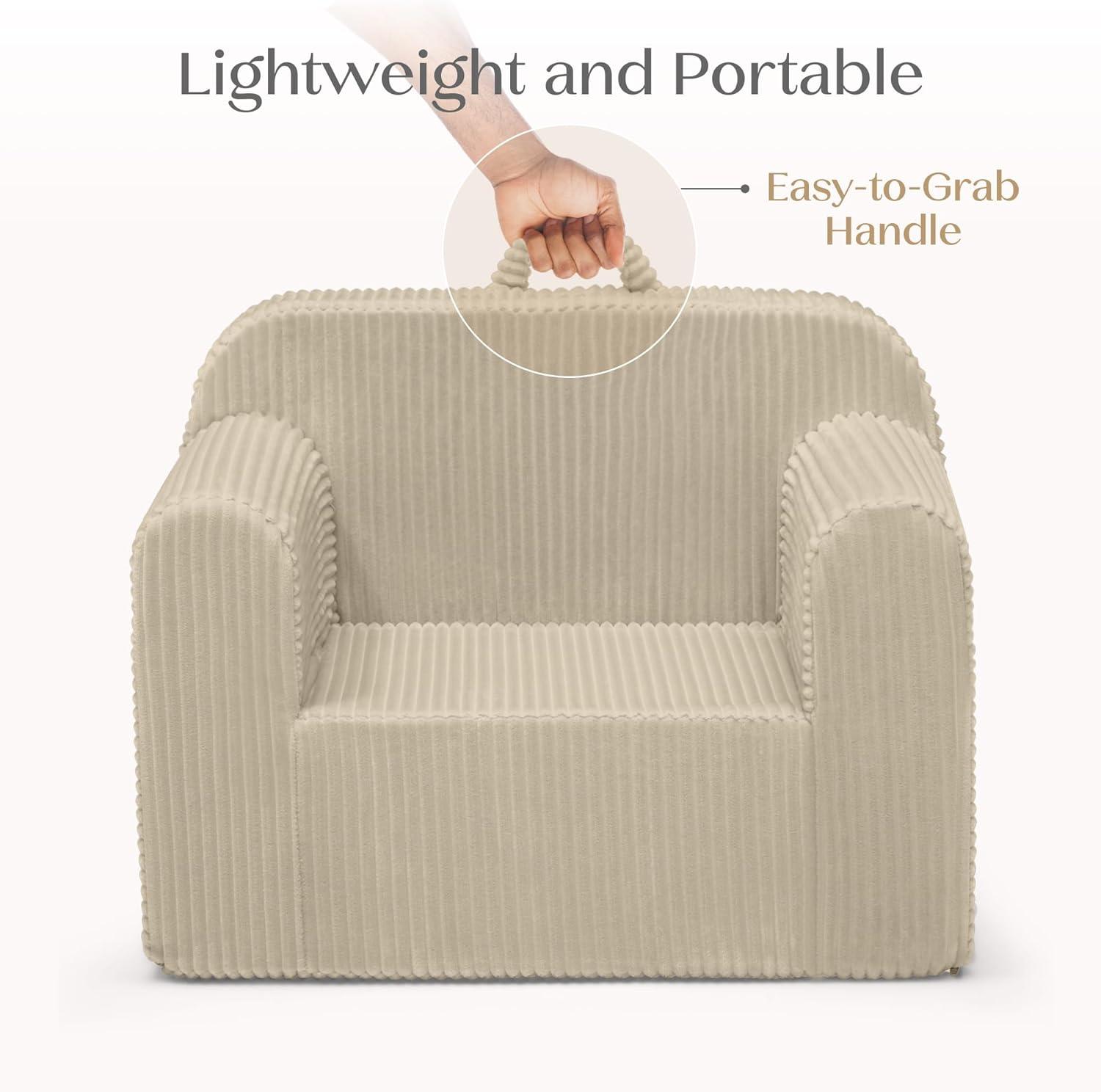 SO COZY: This kids’ foam chair features a super-soft corduroy slipcover that adds texture and comfort | Lightweight design with handle is easy to move from room to room