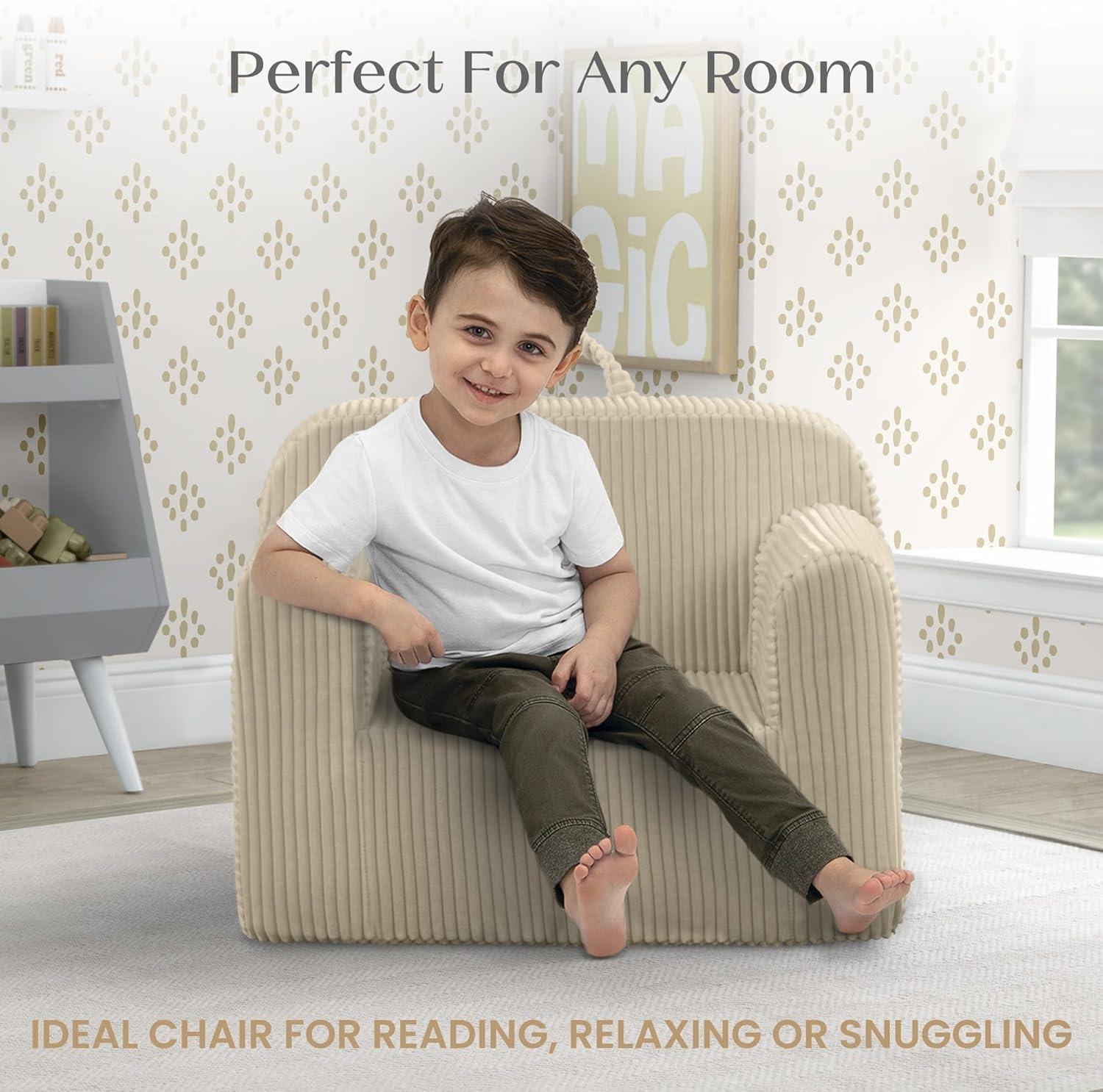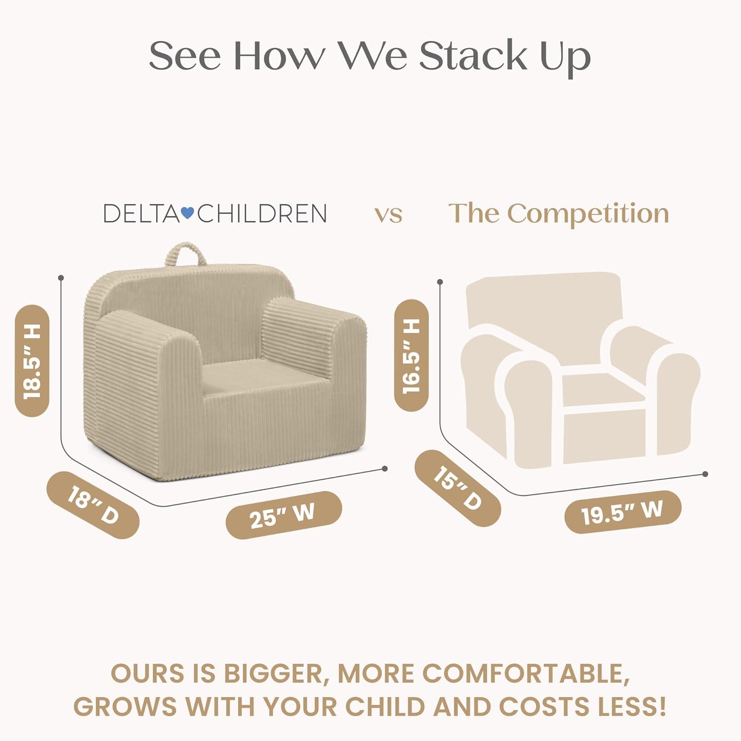 Cozy up to the Cozee Corduroy Chair for Kids by Delta Children. A snuggly spot for reading, watching TV or just hanging out, this supremely comfy chair features a corduroy slipcover that adds texture and comfort, plus it’s removable and machine washable for easy cleaning. Perfect for the playroom, living room or your child's bedroom, this kids’ foam chair goes anywhere they do–the lightweight design with handle on top is easy to move from room to room. Recommended for ages 18 months+.