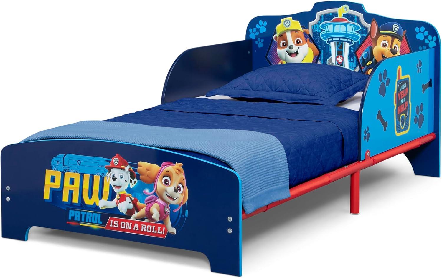 QUALITY CONSTRUCTION: This toddler bed features a sturdy wood headboard, footboard and guardrails, and a metal and fabric mattress support