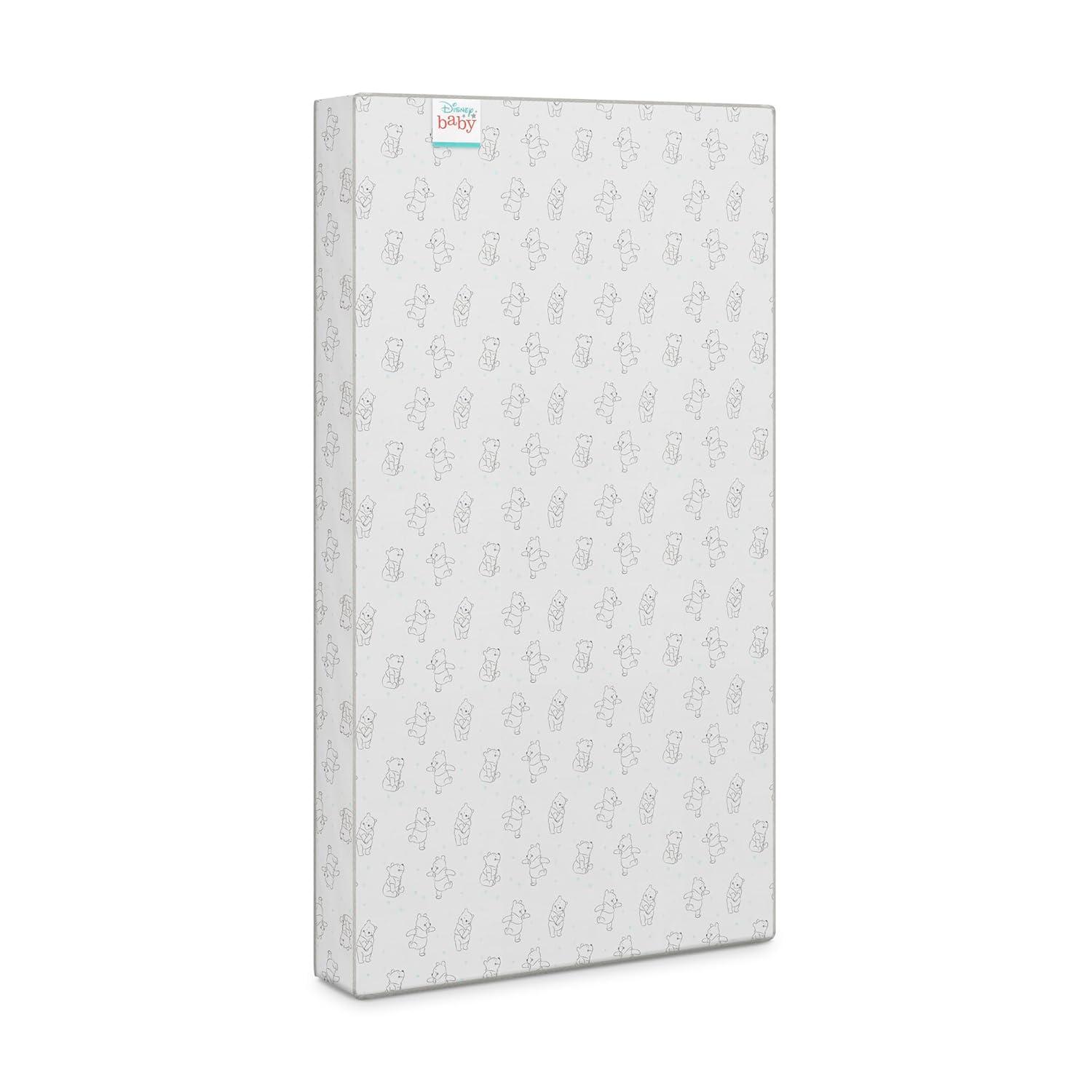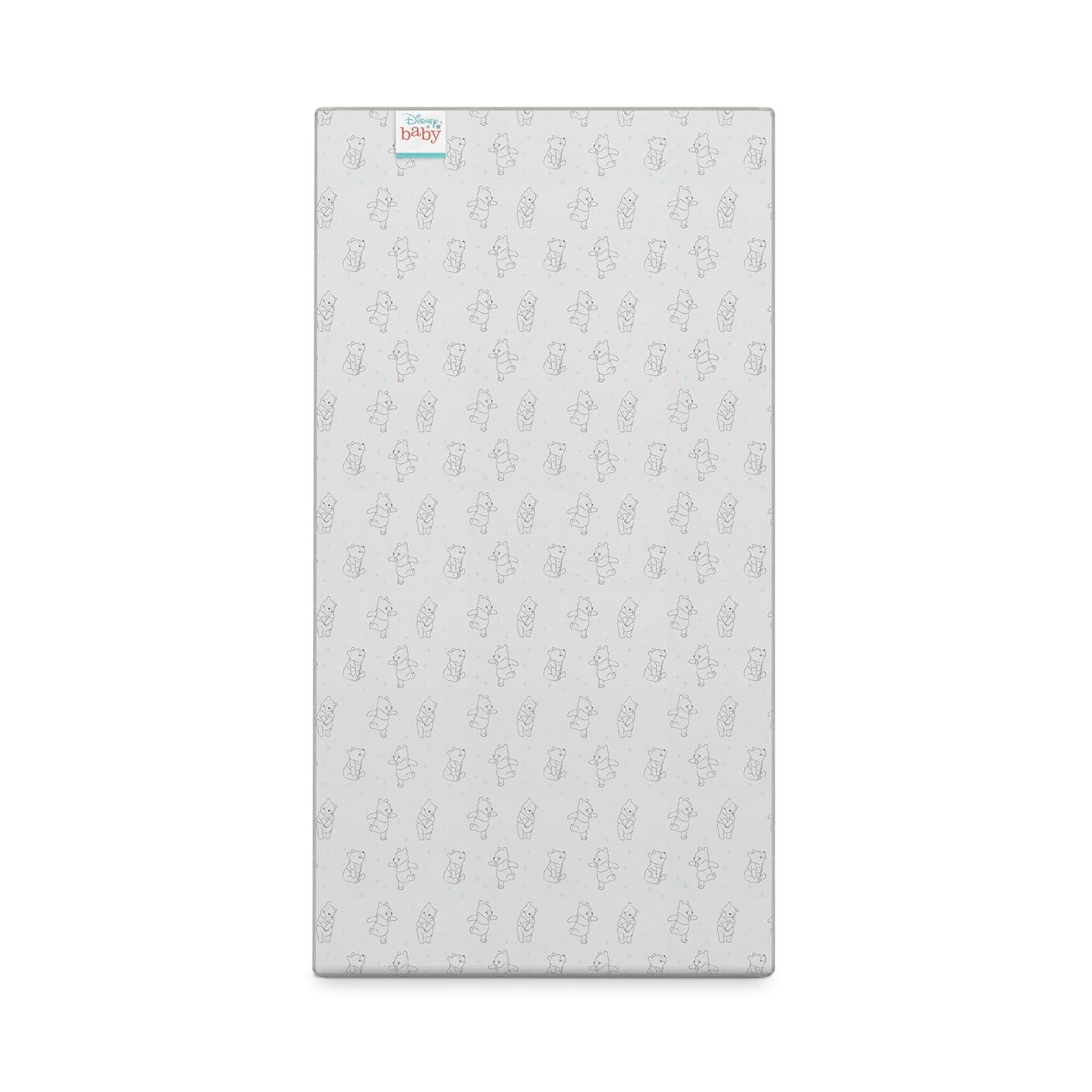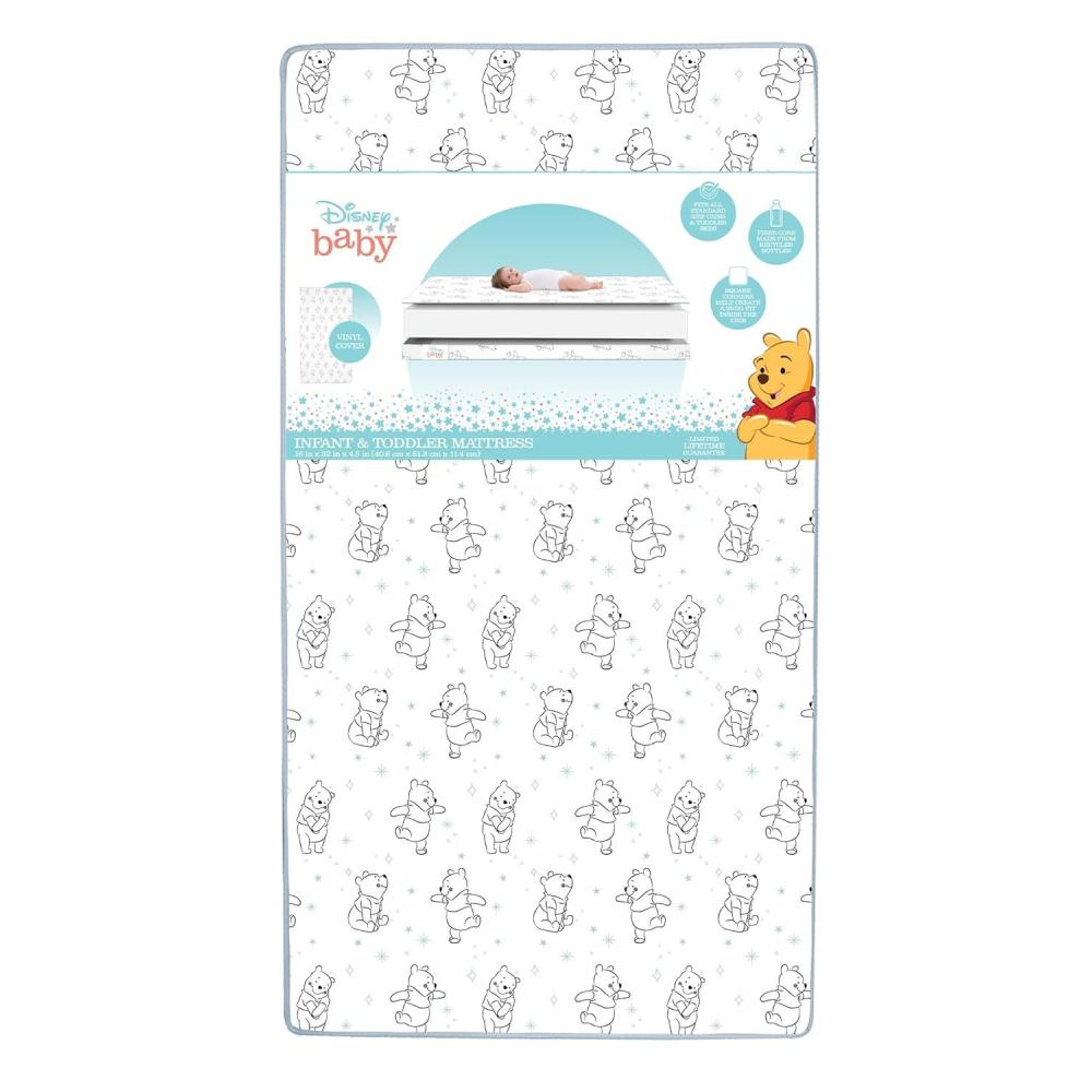 Now you can make every day (and night!) ''A snuggly sort of day” with this Disney Winnie the Pooh Dual Sided Crib and Toddler Mattress by Delta Children. A healthy choice for your growing baby, the fiber core of this mattress is made from recycled bottles that deliver the ideal firmness level for newborns, infants and toddlers and it is topped with a waterproof vinyl cover that is easy to wipe clean. The super-easy to clean cover features a colorful allover print of everyone’s favorite honey-loving bear, Winnie the Pooh. A playful addition to your baby’s nursery, this crib and toddler bed mattress delivers sweet as honey style, plus the comfort and support your child needs for a safe, restorative sleep.
