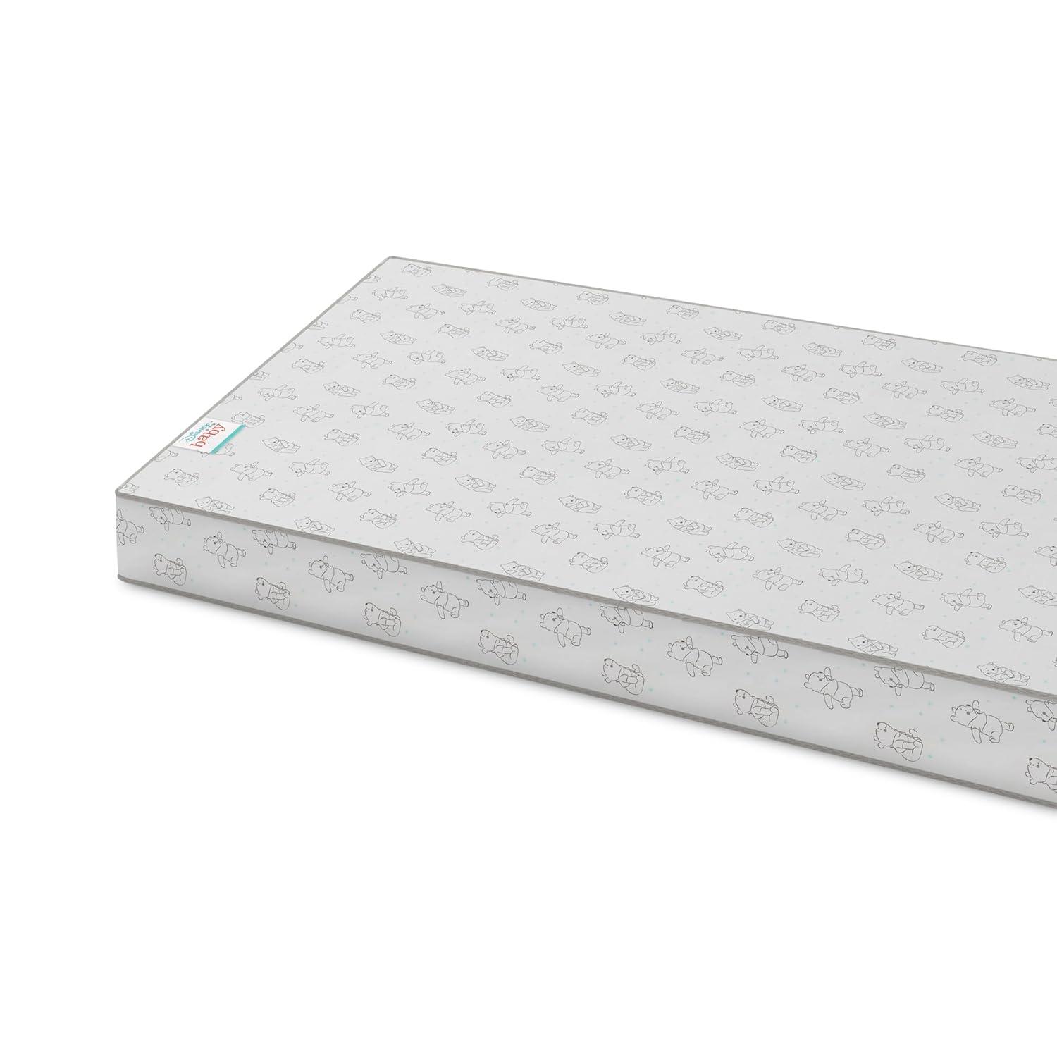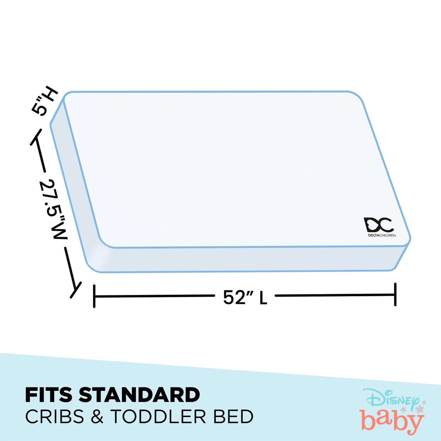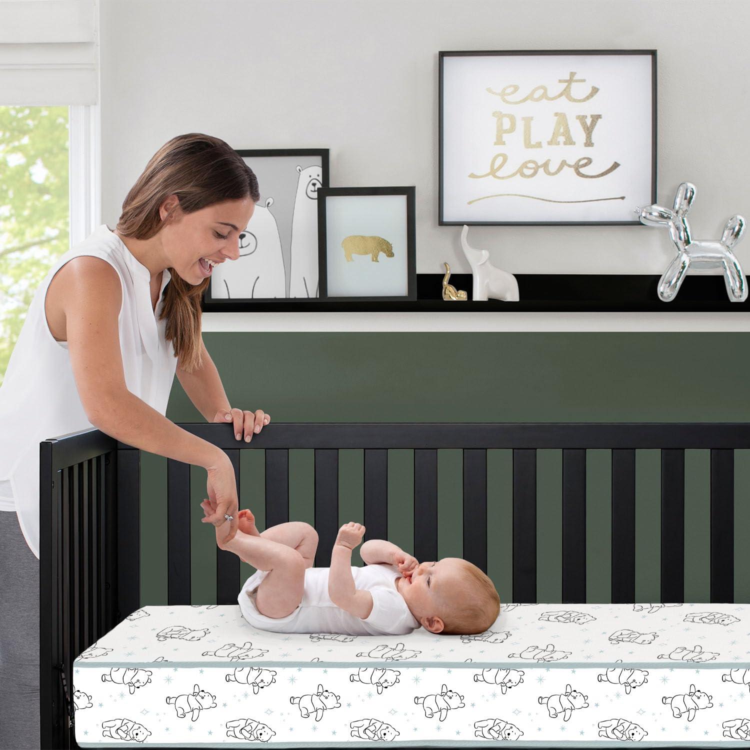 Now you can make every day (and night!) ''A snuggly sort of day” with this Disney Winnie the Pooh Dual Sided Crib and Toddler Mattress by Delta Children. A healthy choice for your growing baby, the fiber core of this mattress is made from recycled bottles that deliver the ideal firmness level for newborns, infants and toddlers and it is topped with a waterproof vinyl cover that is easy to wipe clean. The super-easy to clean cover features a colorful allover print of everyone’s favorite honey-loving bear, Winnie the Pooh. A playful addition to your baby’s nursery, this crib and toddler bed mattress delivers sweet as honey style, plus the comfort and support your child needs for a safe, restorative sleep.