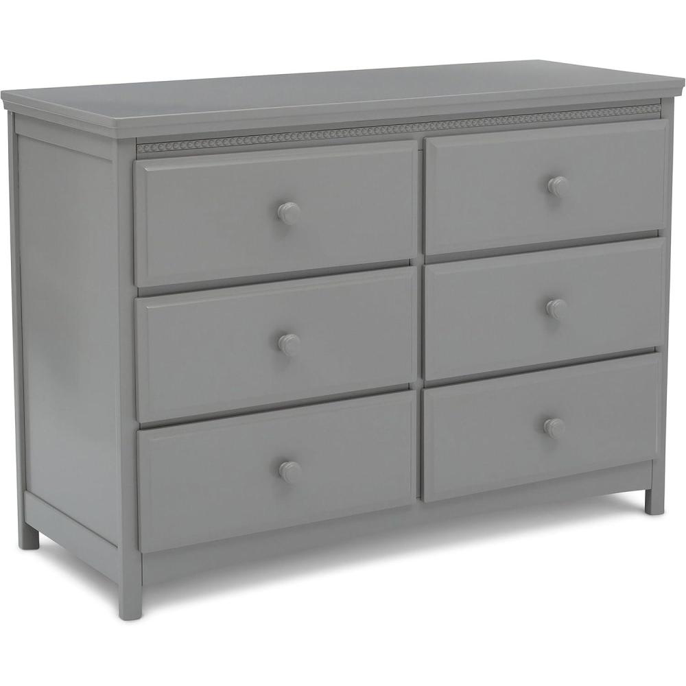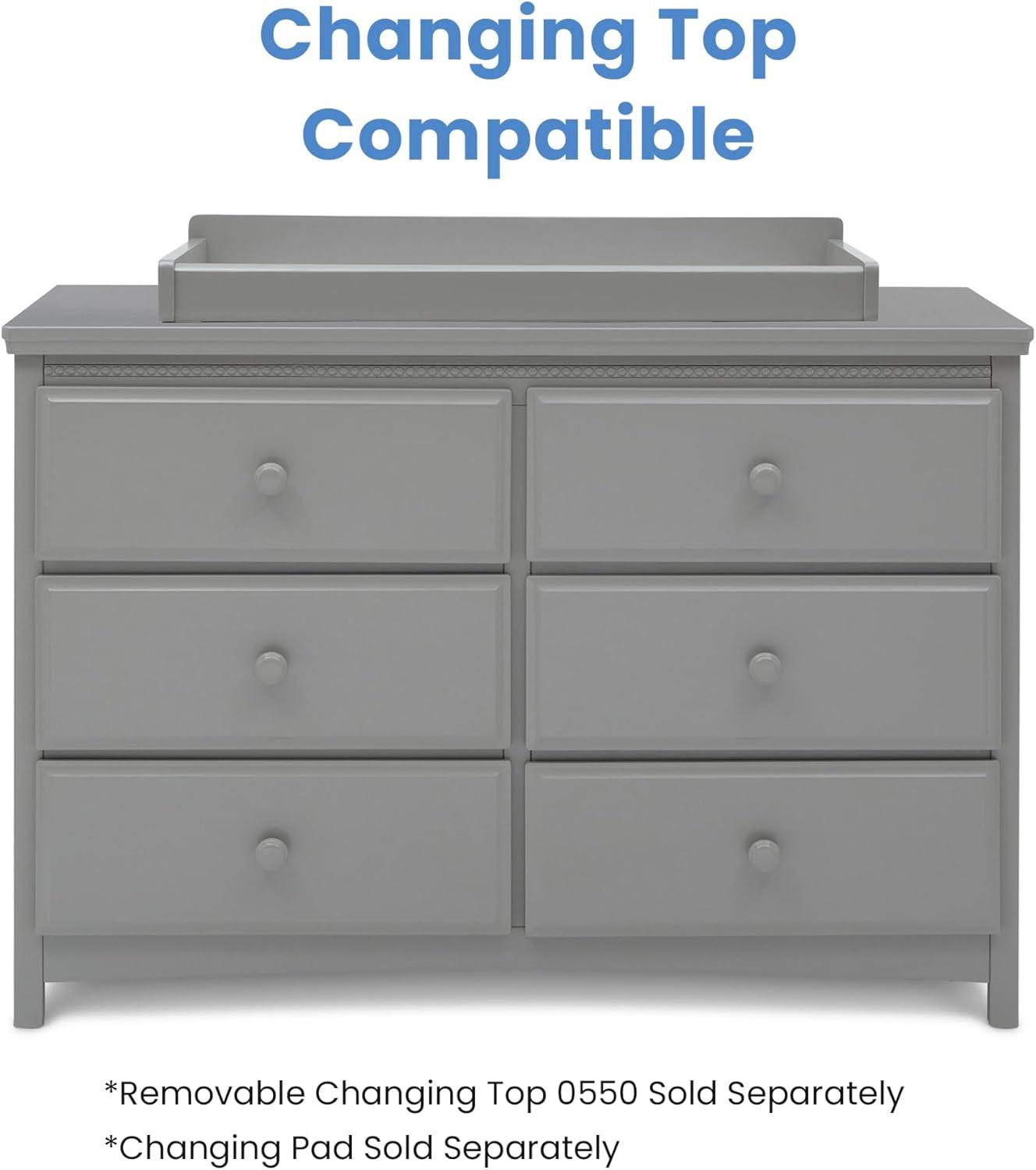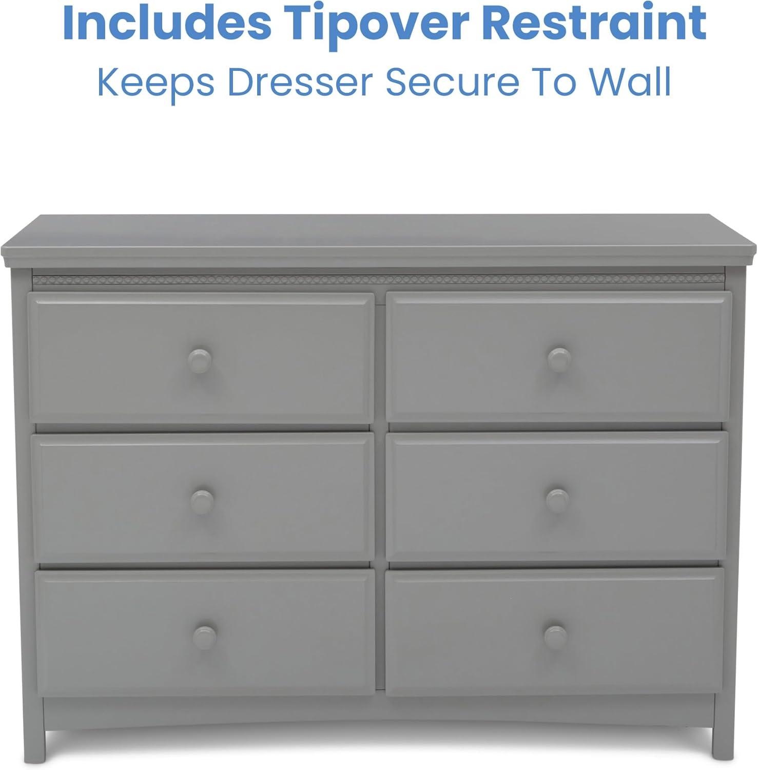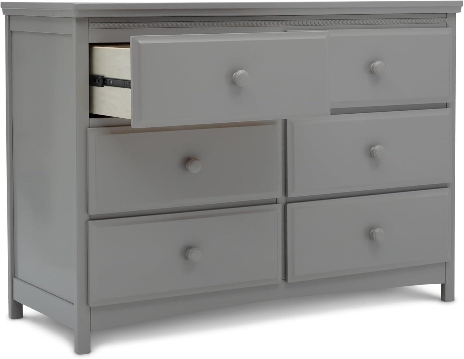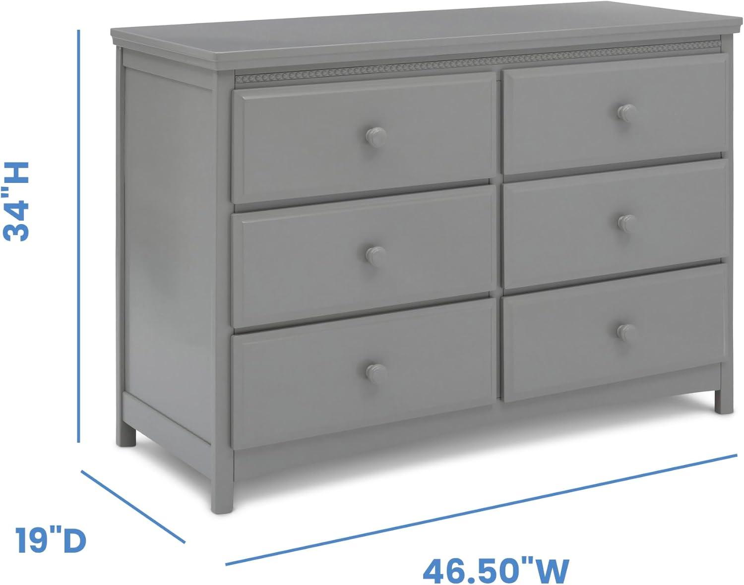 The Emerson 6 Drawer Dresser with Interlocking Drawers by Delta Children is an elegant addition for just about any nursery. Boasting a classic silhouette and pearl detailing, this piece features plenty of storage, making it as functional as it is fashionable. A smart choice for storage in any space, this dresser is outfitted with an interlocking drawer system that limits the number of drawers that can be opened at one time. Plus, it’s GREENGUARD Gold Certified, which means it’s built to contribute to cleaner air for a healthy home. The Emerson 6 Drawer Dresser is part of the Emerson Nursery Collection. Pair with the Emerson 4-in-1 Convertible Crib for a coordinated look (crib sold separately).