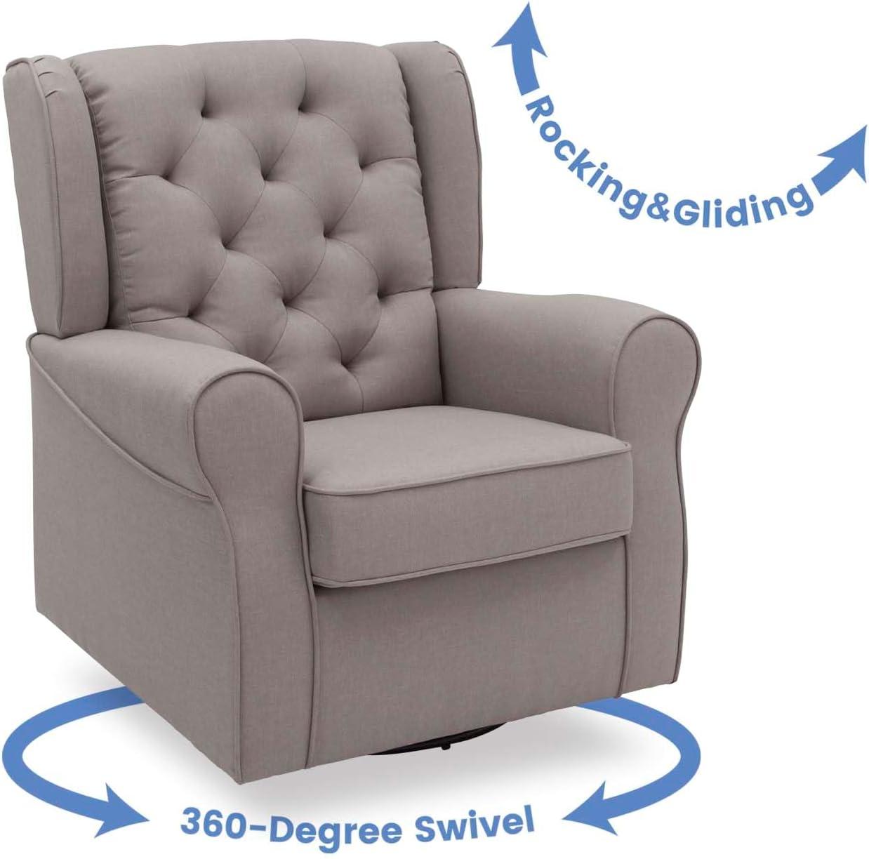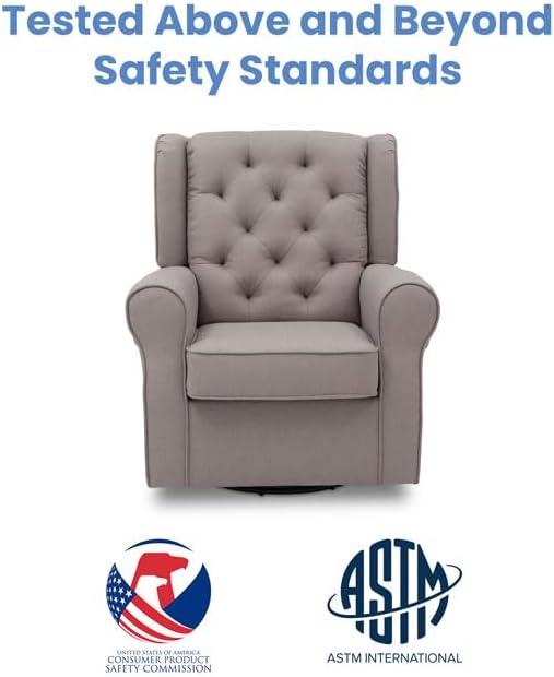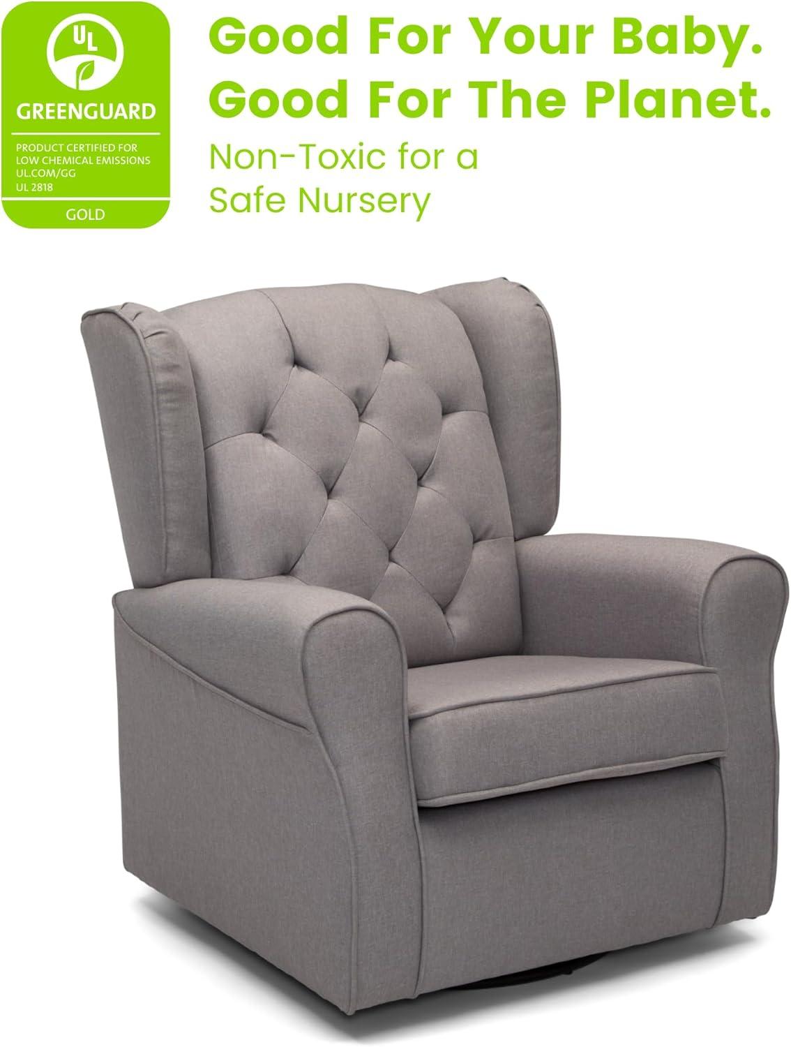 No nursery is complete without a plush glider, and the Emma Nursery Glider Swivel Rocker Chair by Delta Children is the perfect addition to your baby’s space. Crafted with parents and baby in mind, it features a winged back, thickly padded armrests and a sturdy frame with durable steel mechanisms that ensure quiet swivels and glides. Design details include a diamond tufted pattern and tonal welt trim that allows this cozy glider to easily transition to other areas of your house. The Emma Nursery Glider Swivel Rocker Chair by Delta Children brings style and comfort to your nursery. The nursery glider has a smooth gliding, rocking and swivel motion that's great for soothing both you and your baby. Plus, this glider is GREENGUARD Gold Certified, which means it’s built to contribute to cleaner air for a healthy home.