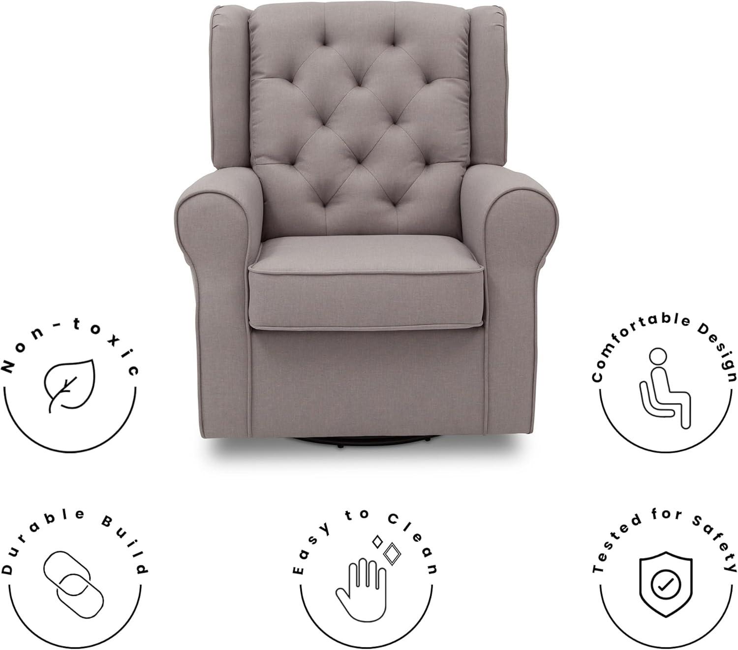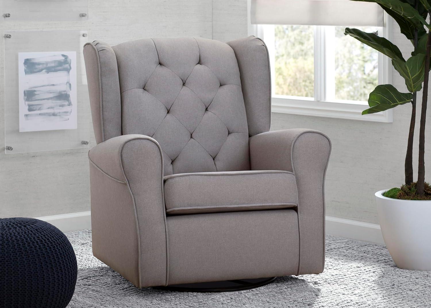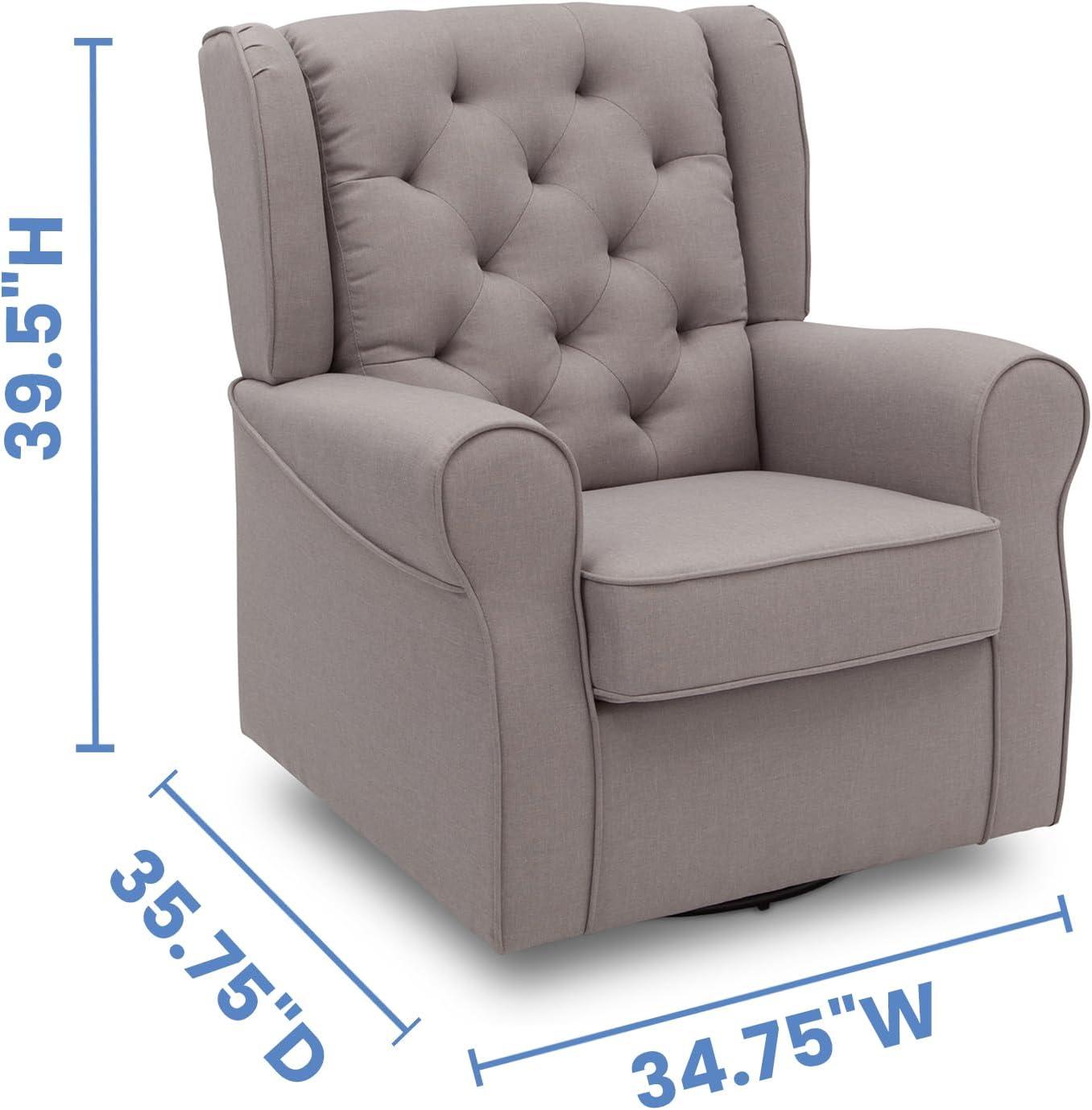 No nursery is complete without a plush glider, and the Emma Nursery Glider Swivel Rocker Chair by Delta Children is the perfect addition to your baby’s space. Crafted with parents and baby in mind, it features a winged back, thickly padded armrests and a sturdy frame with durable steel mechanisms that ensure quiet swivels and glides. Design details include a diamond tufted pattern and tonal welt trim that allows this cozy glider to easily transition to other areas of your house. The Emma Nursery Glider Swivel Rocker Chair by Delta Children brings style and comfort to your nursery. The nursery glider has a smooth gliding, rocking and swivel motion that's great for soothing both you and your baby. Plus, this glider is GREENGUARD Gold Certified, which means it’s built to contribute to cleaner air for a healthy home.