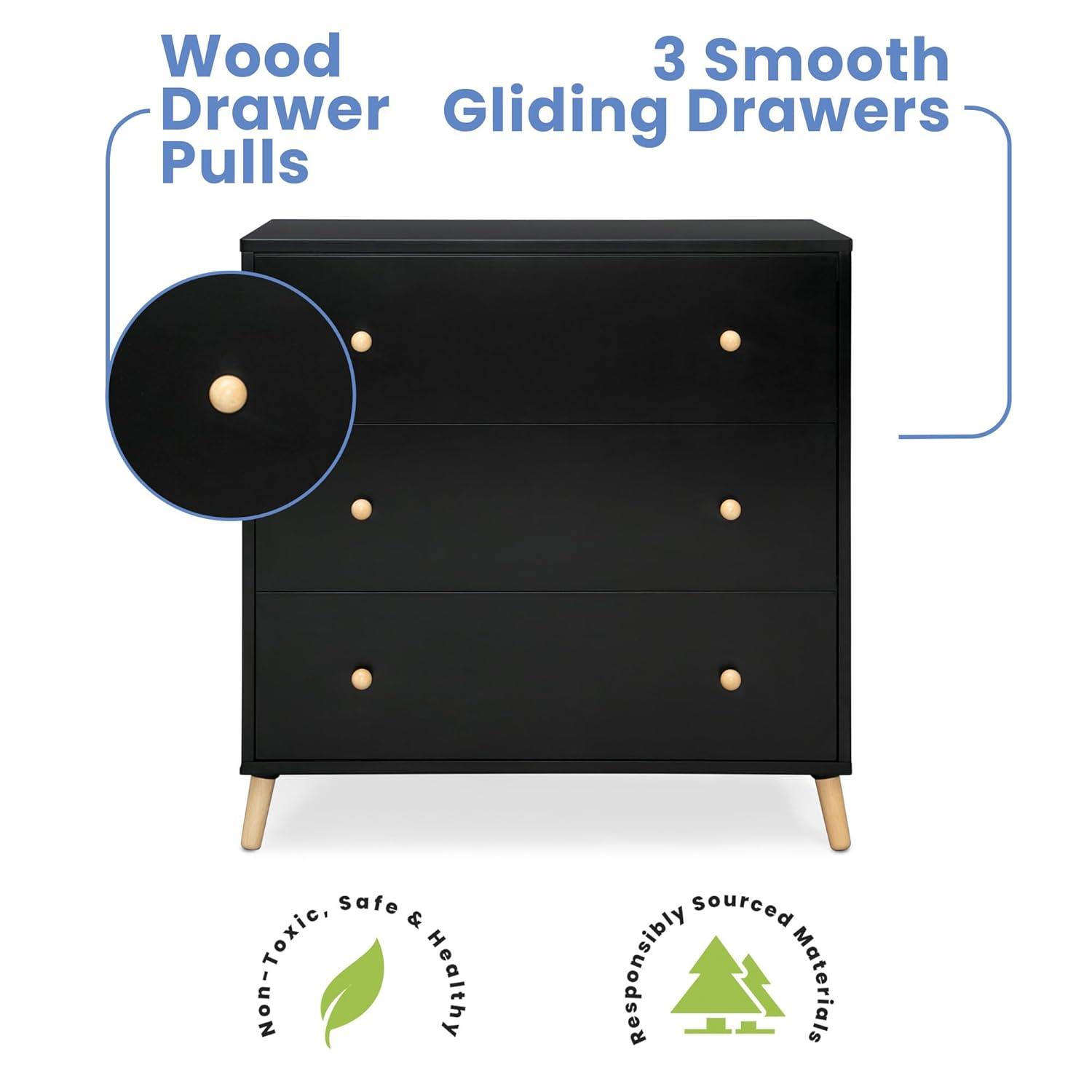 Delta Children Essex 3 Drawer Dresser with Interlocking Drawers, Ebony/Natural(Ebony/Natural)