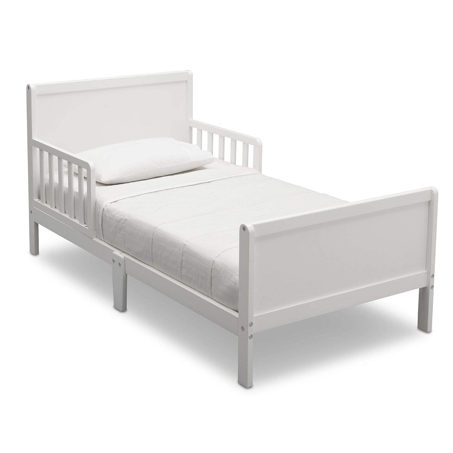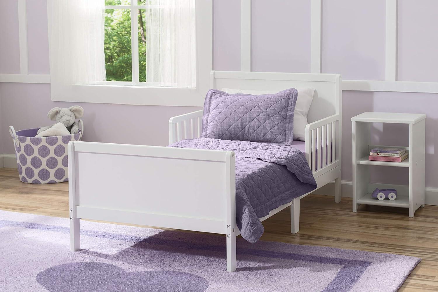 Sophisticated style in a scaled down size, the Fancy Toddler Bed from Delta Children helps make the transition to “big kid” bed easy. Straight lines on the headboard and footboard, plus guardrails on both sides are just a few key features that make it a must-have for any growing child.