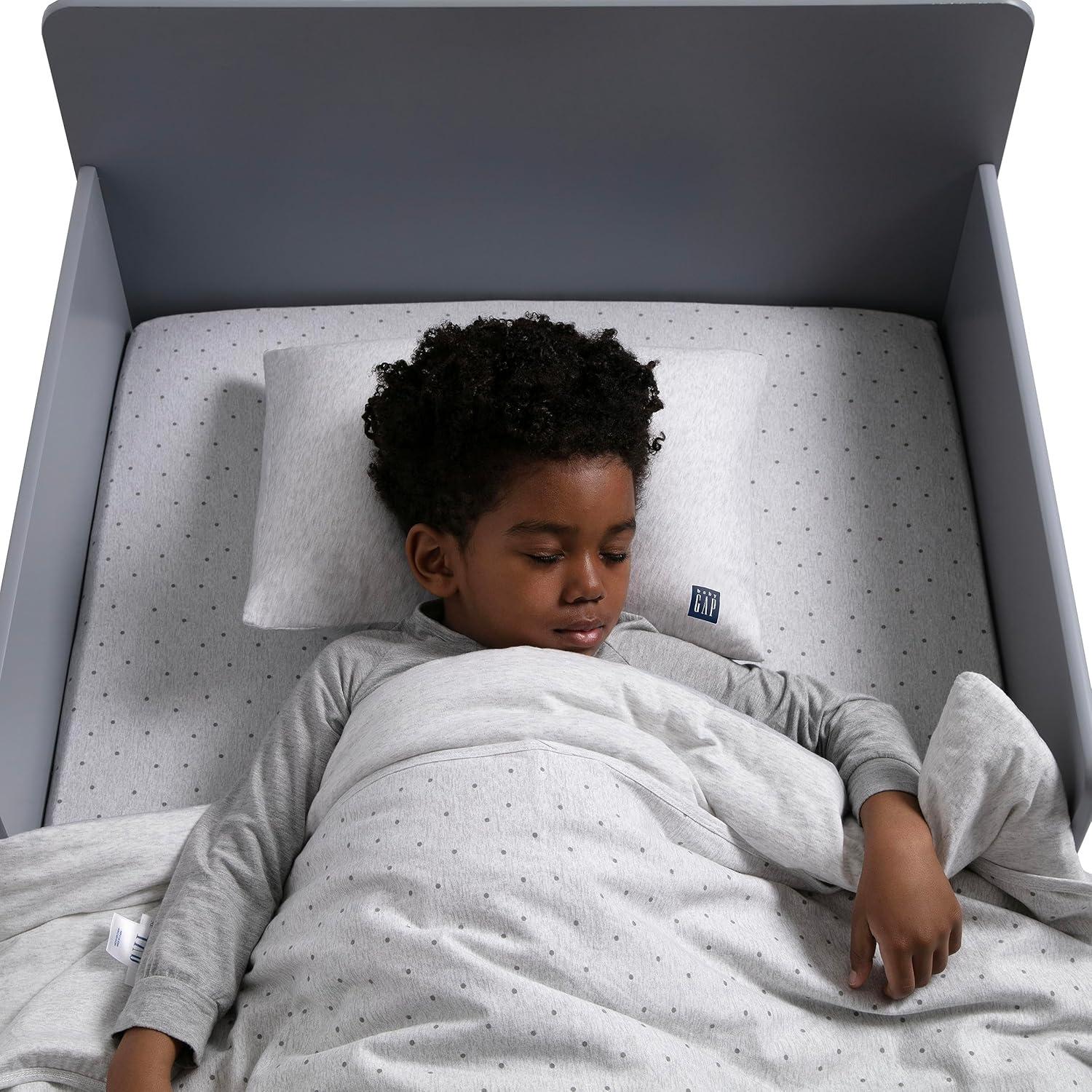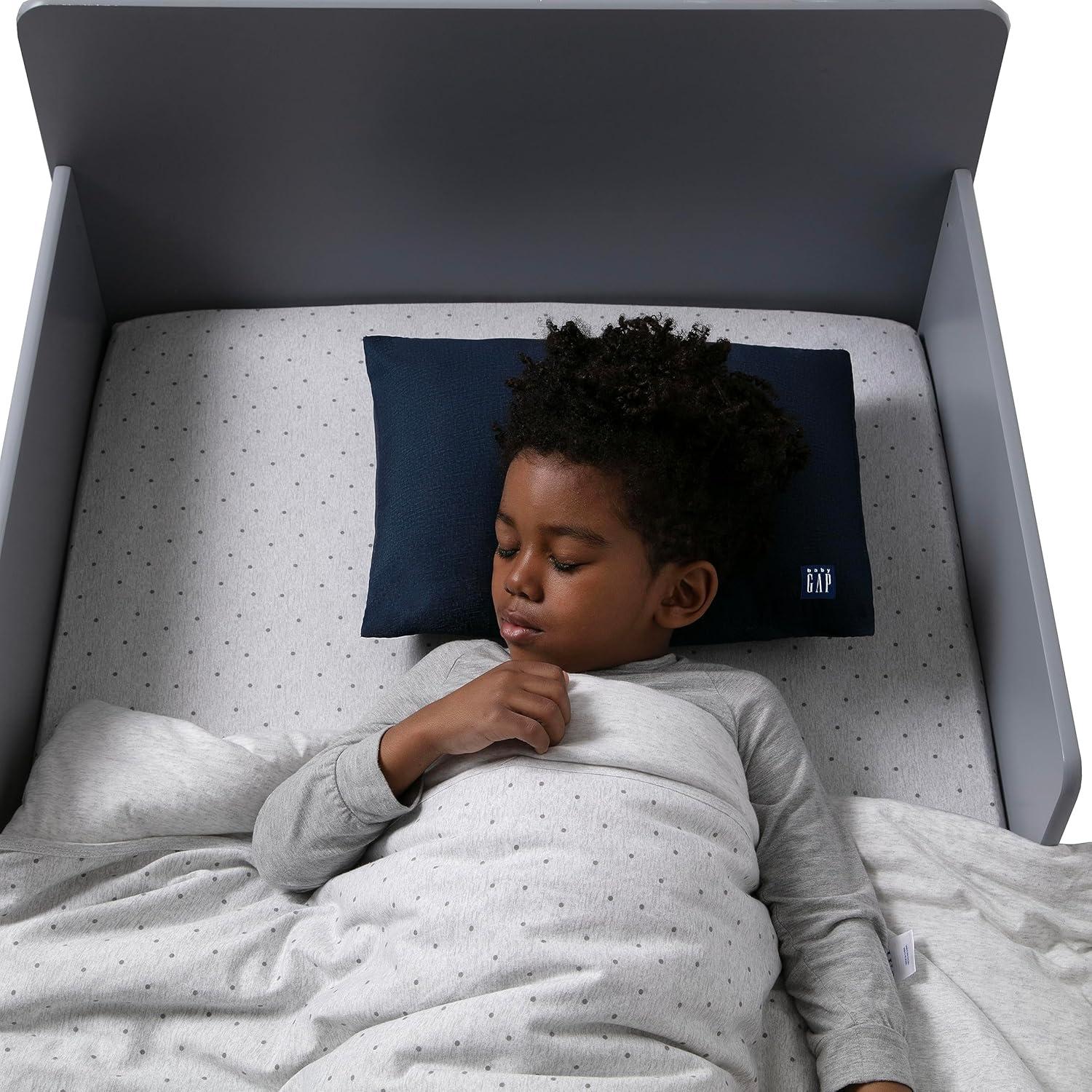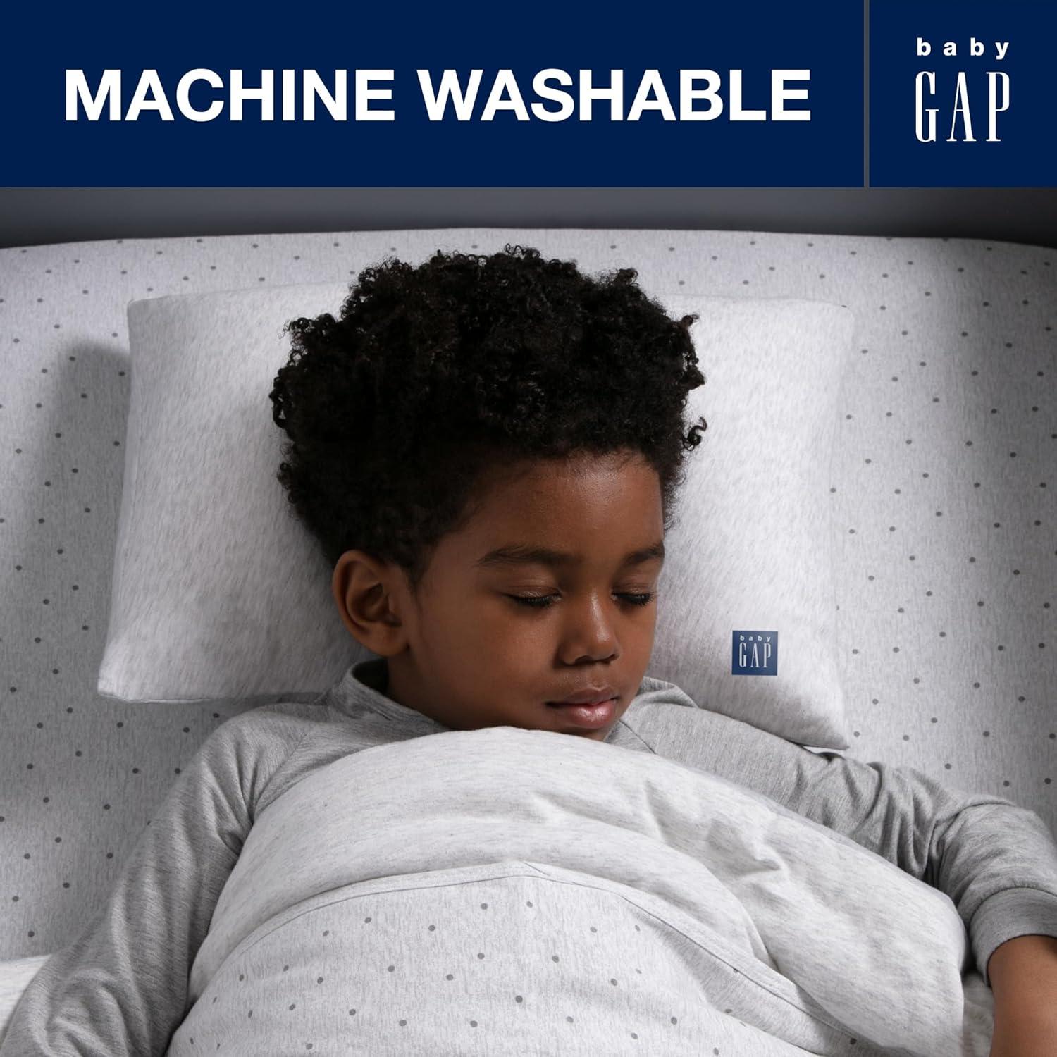 Sweet dreams are made of this babyGap by Delta Children Memory Foam Toddler Pillow with 2 Cooling Covers. Perfectly sized to cradle a toddler's head with its memory foam construction, this thoughtfully designed pillow features a water-resistant inner cover and two fully removable, machine-washable cooling pillowcases. The memory foam core helps target pressure point relief for a more restorative sleep while the included cooling covers help keep your child’s sleep environment cool, dry, and comfortable with their cooling fiber construction. Ensure your little one will wake up well rested each day with the babyGap by Delta Children Memory Foam Toddler Pillow with 2 Cooling Covers.