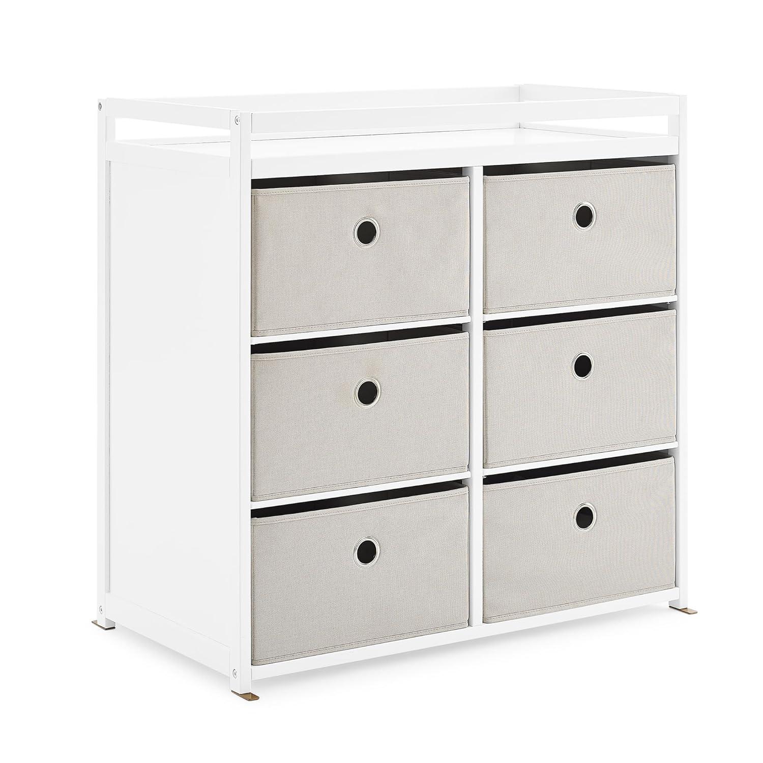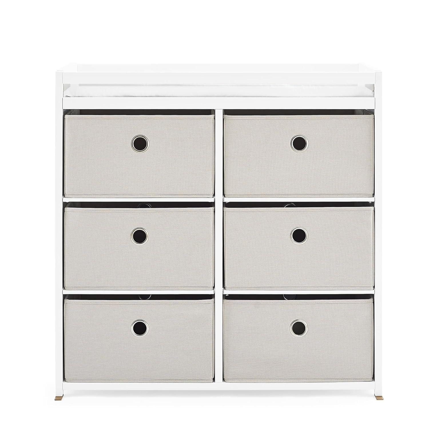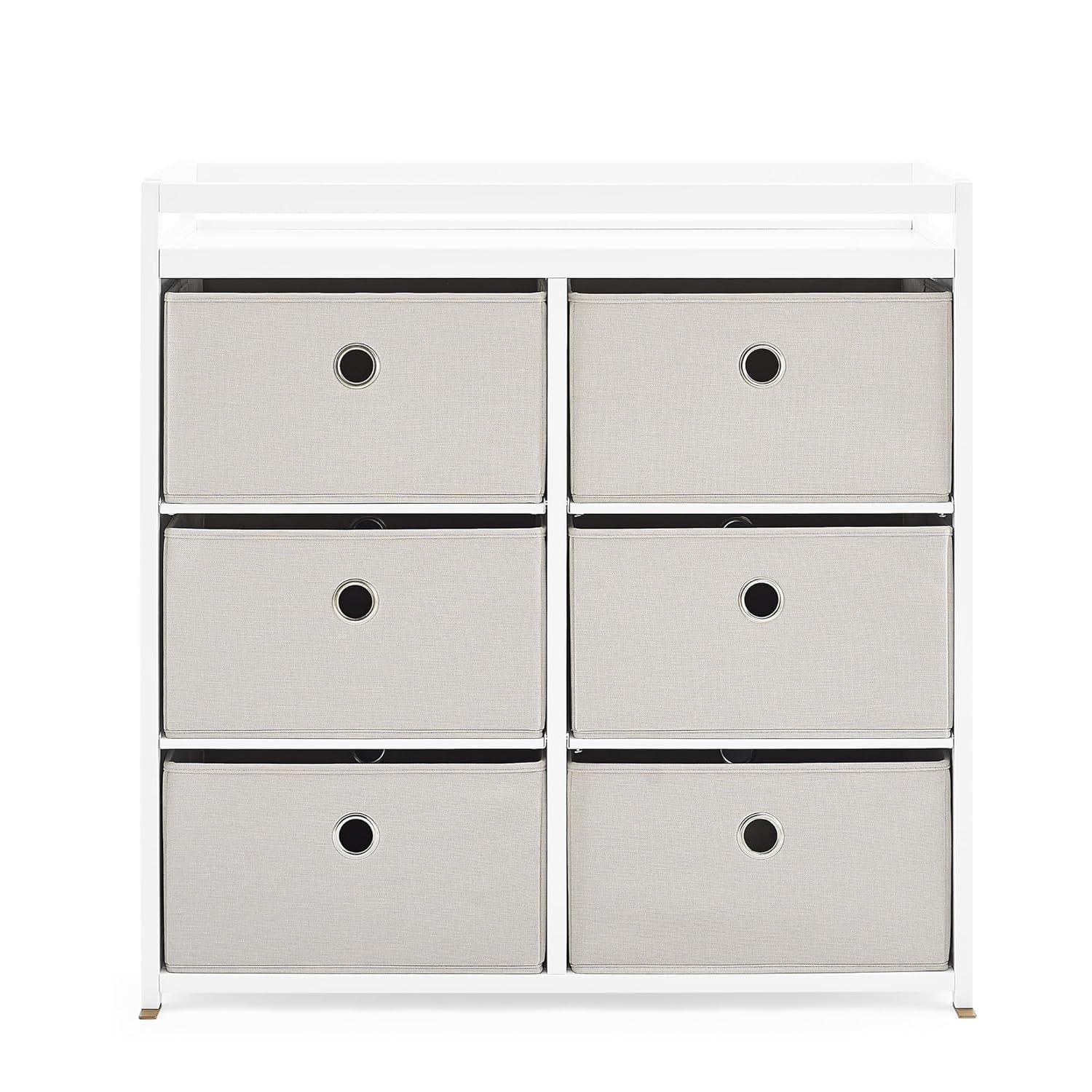Delta Children Hayes Changing Table and Dresser for Bedroom with 6 Fabric Drawers, Bianca White/Flax Bins(Bianca White/Flax Bins)