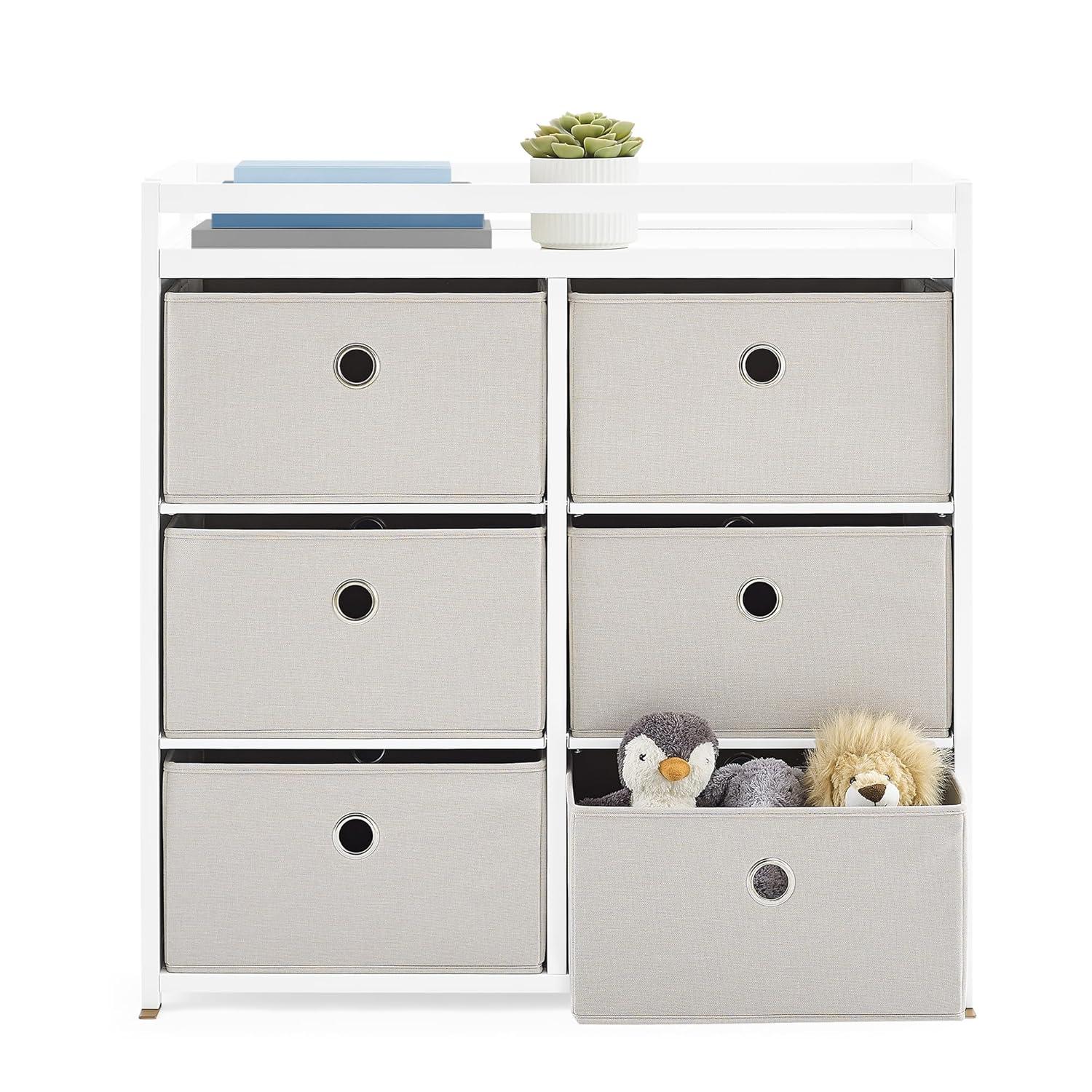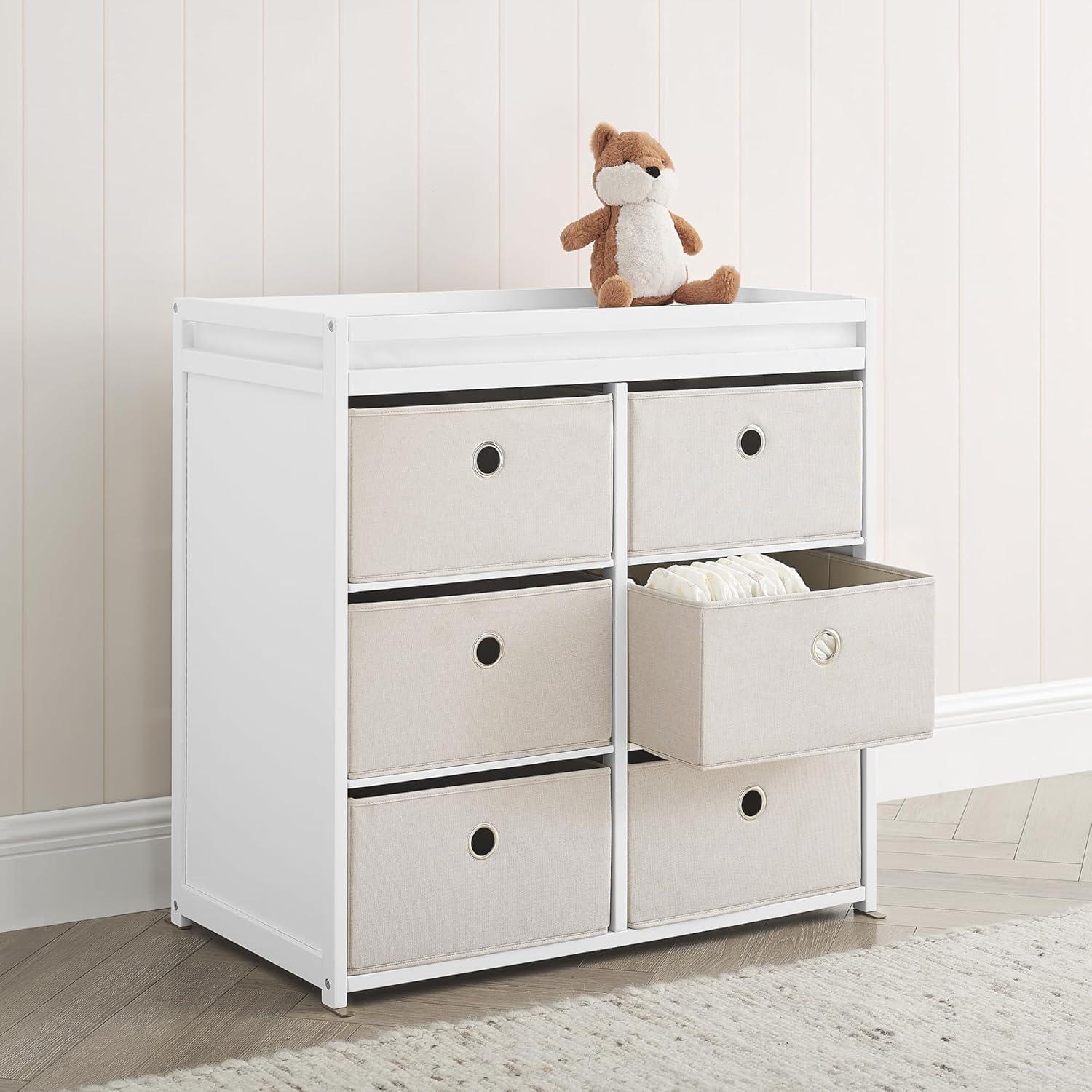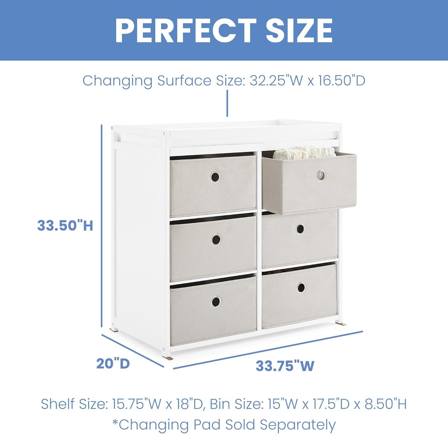 Delta Children Hayes Changing Table and Dresser for Bedroom with 6 Fabric Drawers, Bianca White/Flax Bins(Bianca White/Flax Bins)