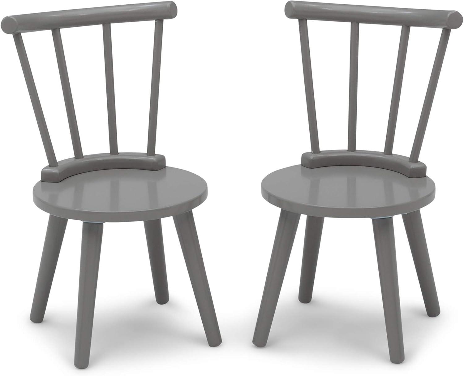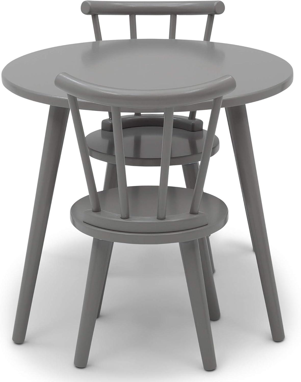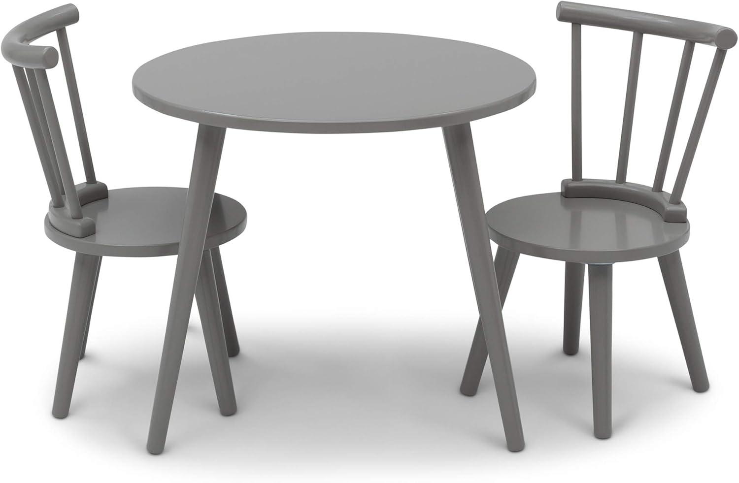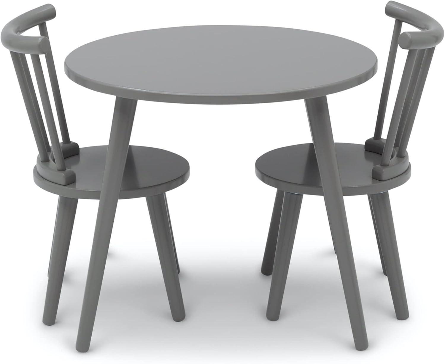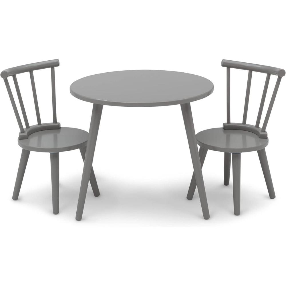 Your little one will use the Homestead kids table and chair set by Delta Children to play, create and learn. This sturdy wooden set includes a table and two coordinating chairs designed in a traditional n style. The table features a round top and the chairs feature a recognizable windsor-style silhouette with vertical spokes and curved backs. A great play table that you'll love as much as they do, it's the prefect option for kids' Bedrooms and playrooms yet stylish enough for shared living space. Completely kid-ly, the set is the ideal height for growing children and growing families. For additional seating, purchase the coordinating Homestead 2-Piece chair Set (sold separately). Delta Children was founded around the idea of making safe, high-quality children's products affordable for all families. They know there's nothing more important than safety when it comes to your child's space. That's why all Delta Children products are built with long-lasting materials to ensure they stand up to years of jumping and playing. Plus, they are rigorously tested to meet or exceed all industry safety standards.