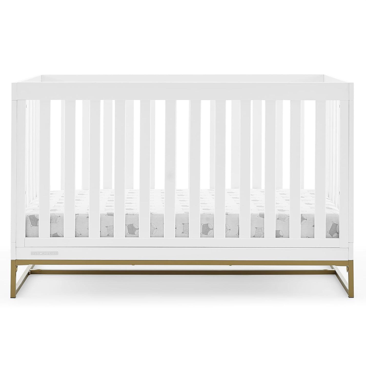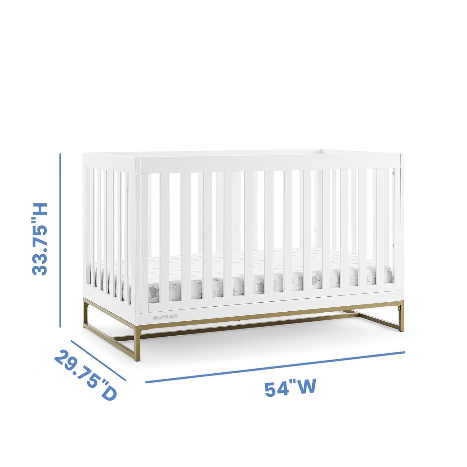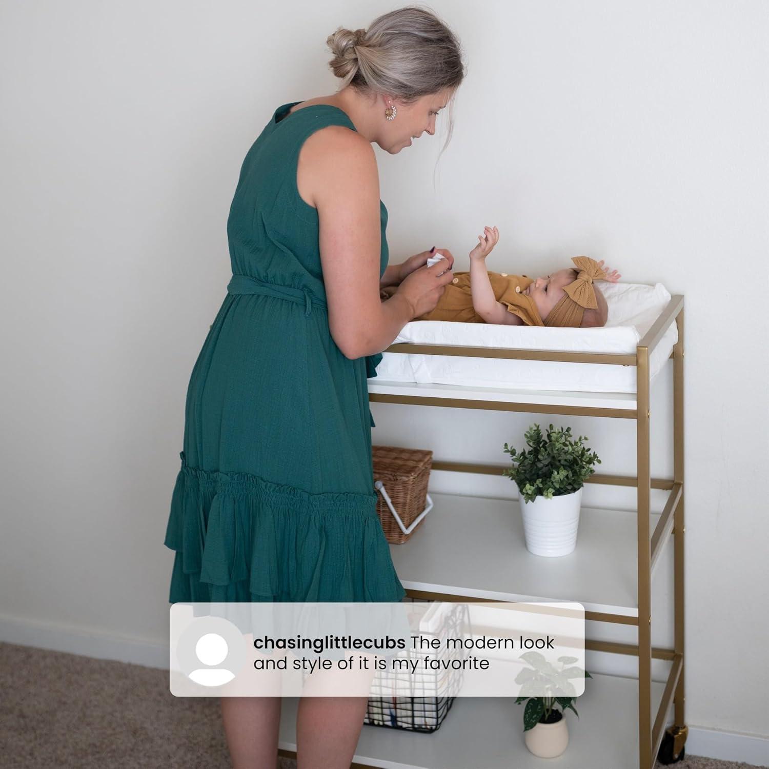 The Jade Changing Table by Delta Children is the new gold standard for modern nurseries with its gorgeous bronze metal frame. The spacious top provides plenty of room for changing your baby, and the two open shelves offer ample storage space for all your baby essentials, including diapers, onesies, rash cream and more. A standout piece for years to come, this changing table can later be used as a storage piece or bar cart. Its four wheels make it incredibly easy to move around the house, just lock them in place once you’ve found the perfect spot for it. Pair this changing table with the Jade Crib for a complete nursery. Changing pad sold separately.