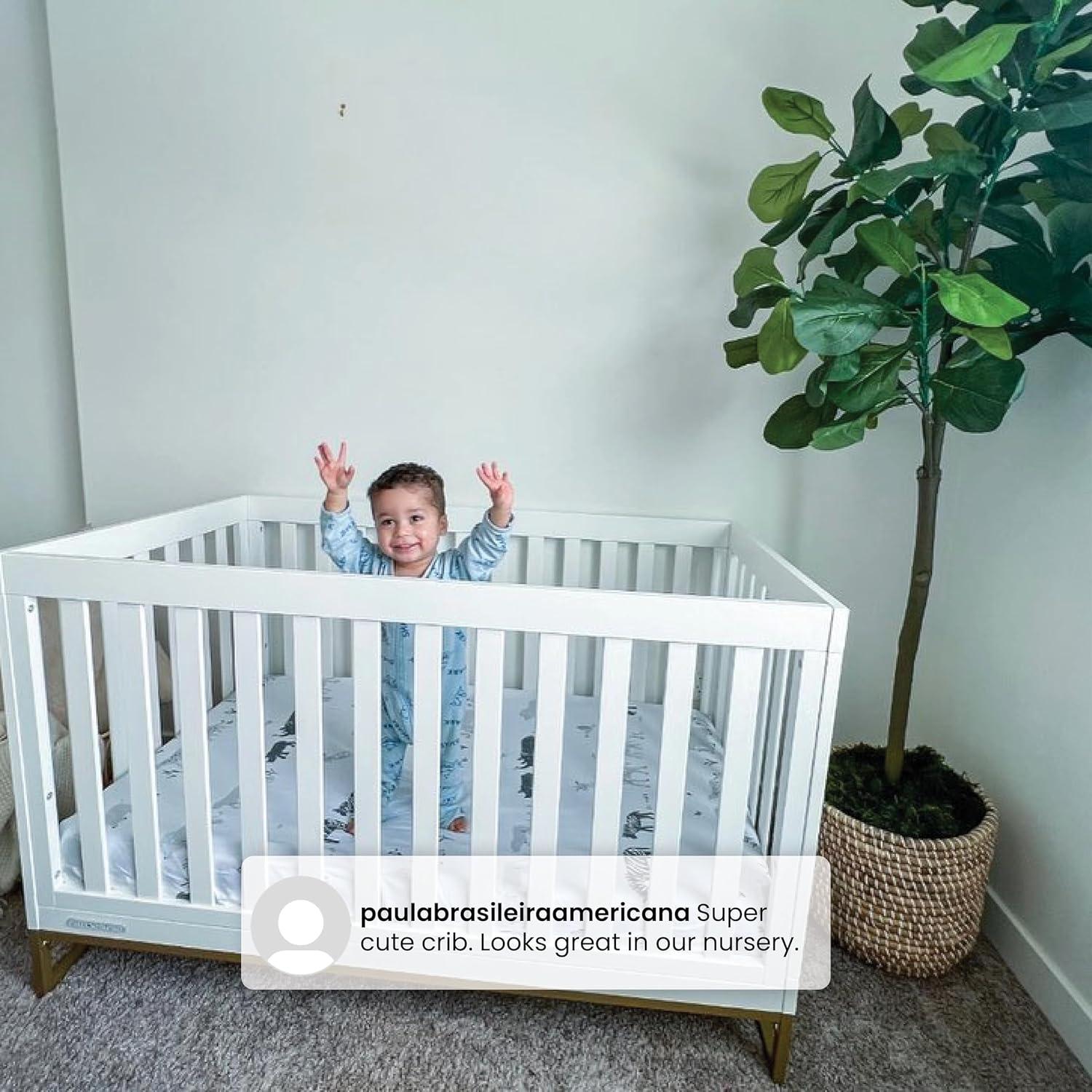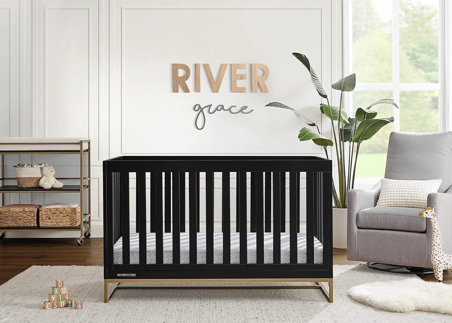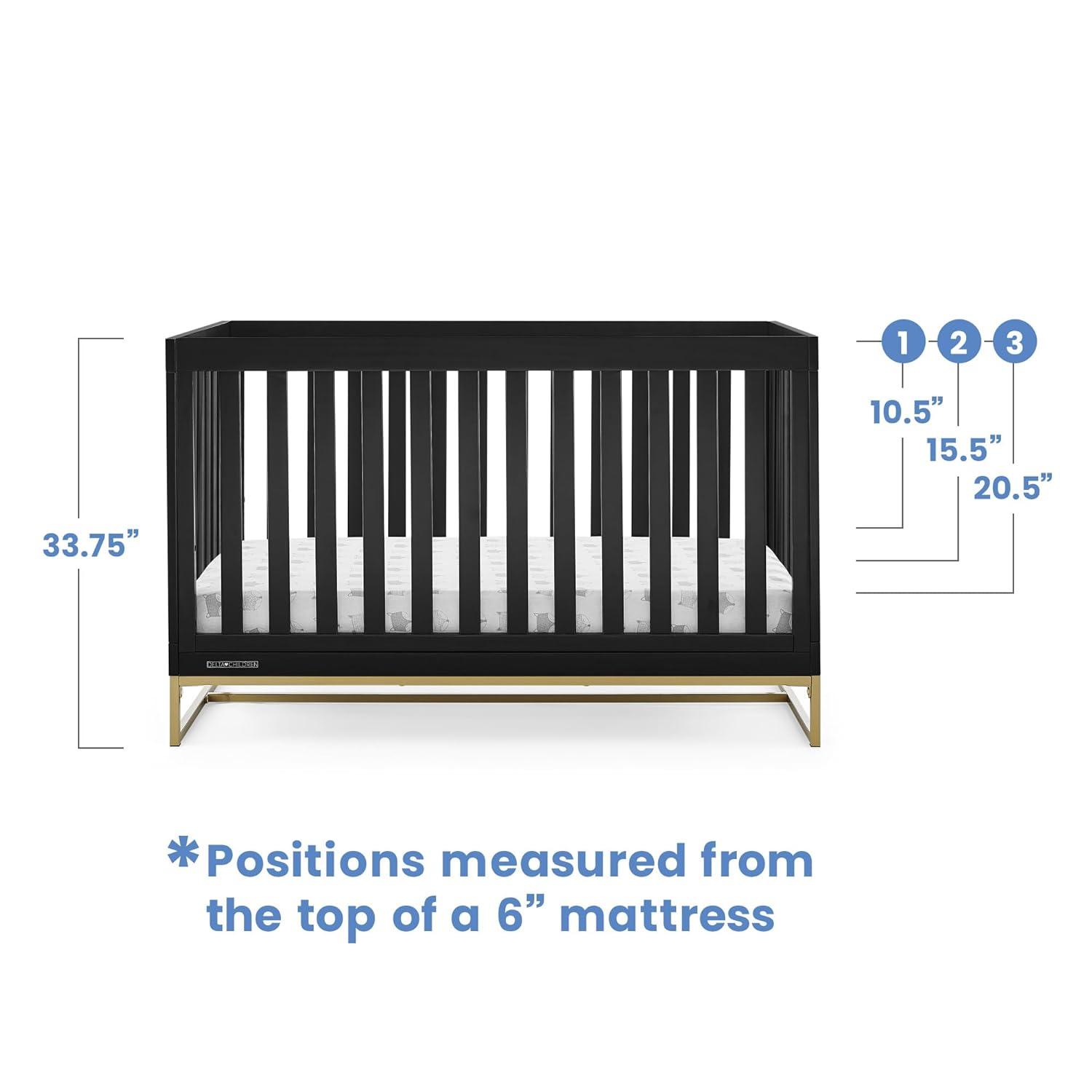 The Jade Changing Table by Delta Children is the new gold standard for modern nurseries with its gorgeous bronze metal frame. The spacious top provides plenty of room for changing your baby, and the two open shelves offer ample storage space for all your baby essentials, including diapers, onesies, rash cream and more. A standout piece for years to come, this changing table can later be used as a storage piece or bar cart. Its four wheels make it incredibly easy to move around the house, just lock them in place once you’ve found the perfect spot for it. Pair this changing table with the Jade Crib for a complete nursery. Changing pad sold separately.