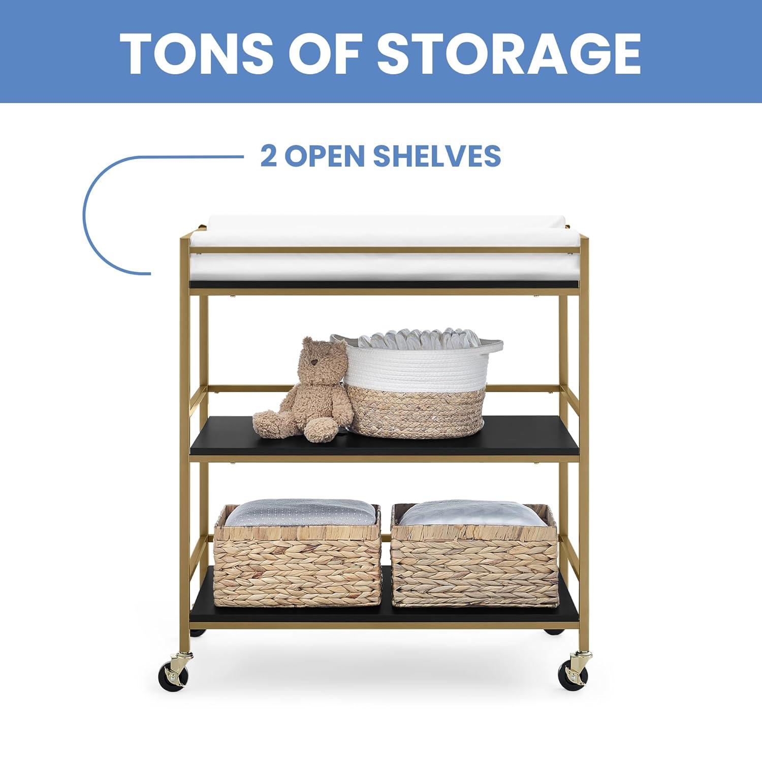 VERSATILE STORAGE: This changing table features two open shelves to keep your baby's changing needs close by | Changing Pad sold separately | To ensure safety and the perfect fit, pair your changing table with a Serta, Beautyrest or Simmons Kids contour