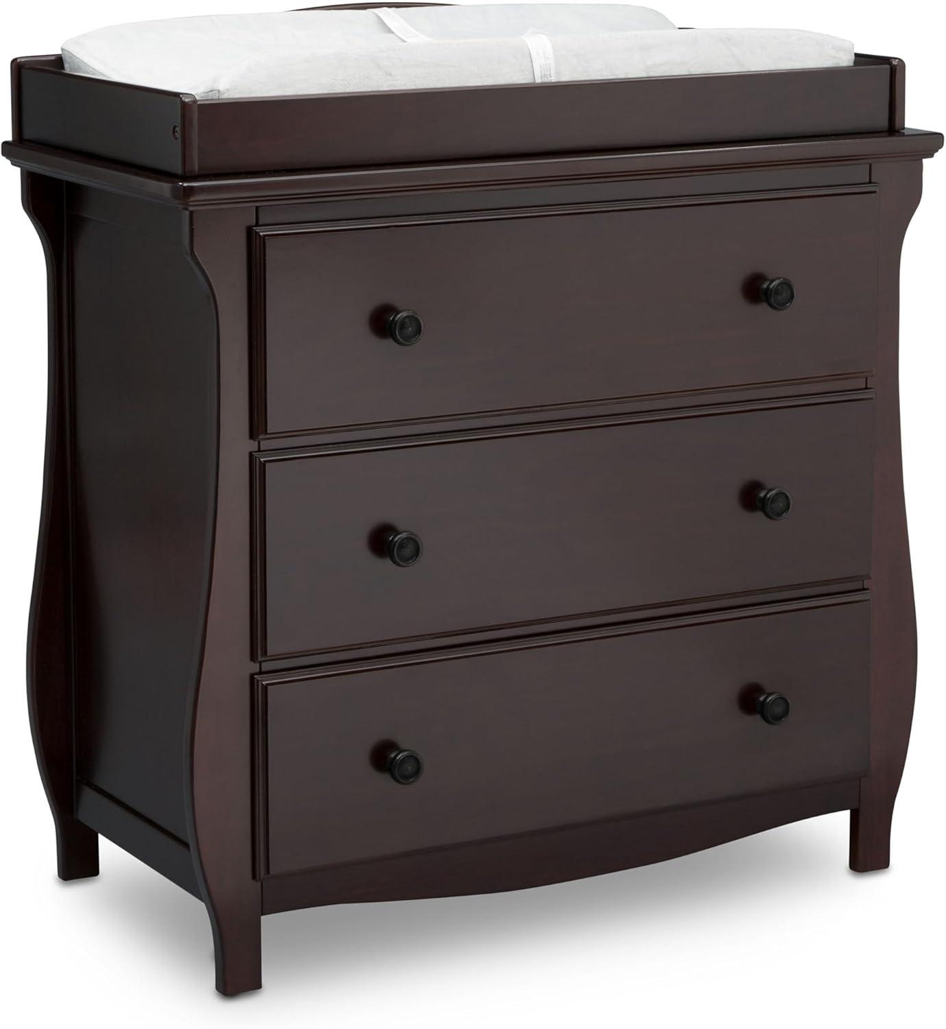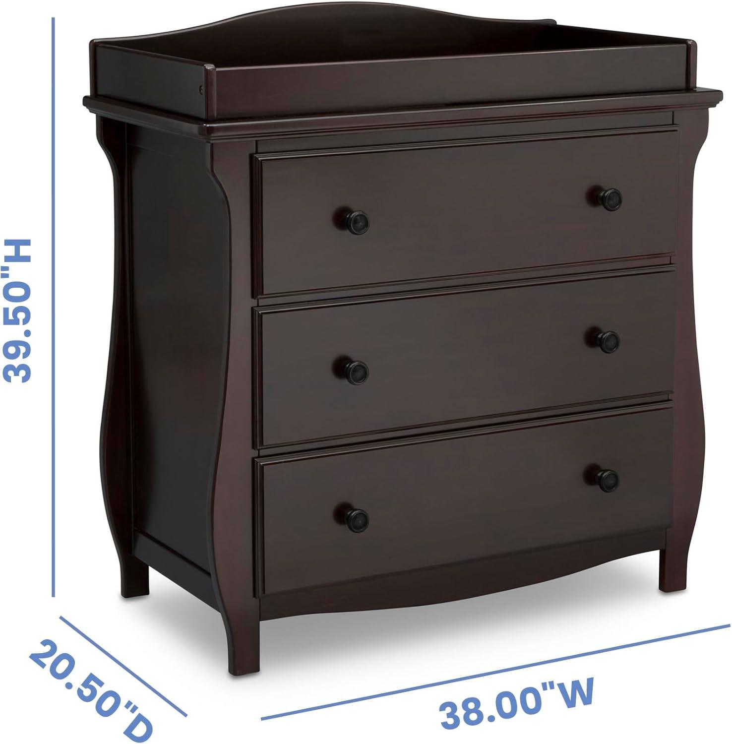 Delta Children Lancaster 3 Drawer Dresser with Changing Top and Interlocking Drawers - Greenguard Gold Certified, Grey(Dark Chocolate)