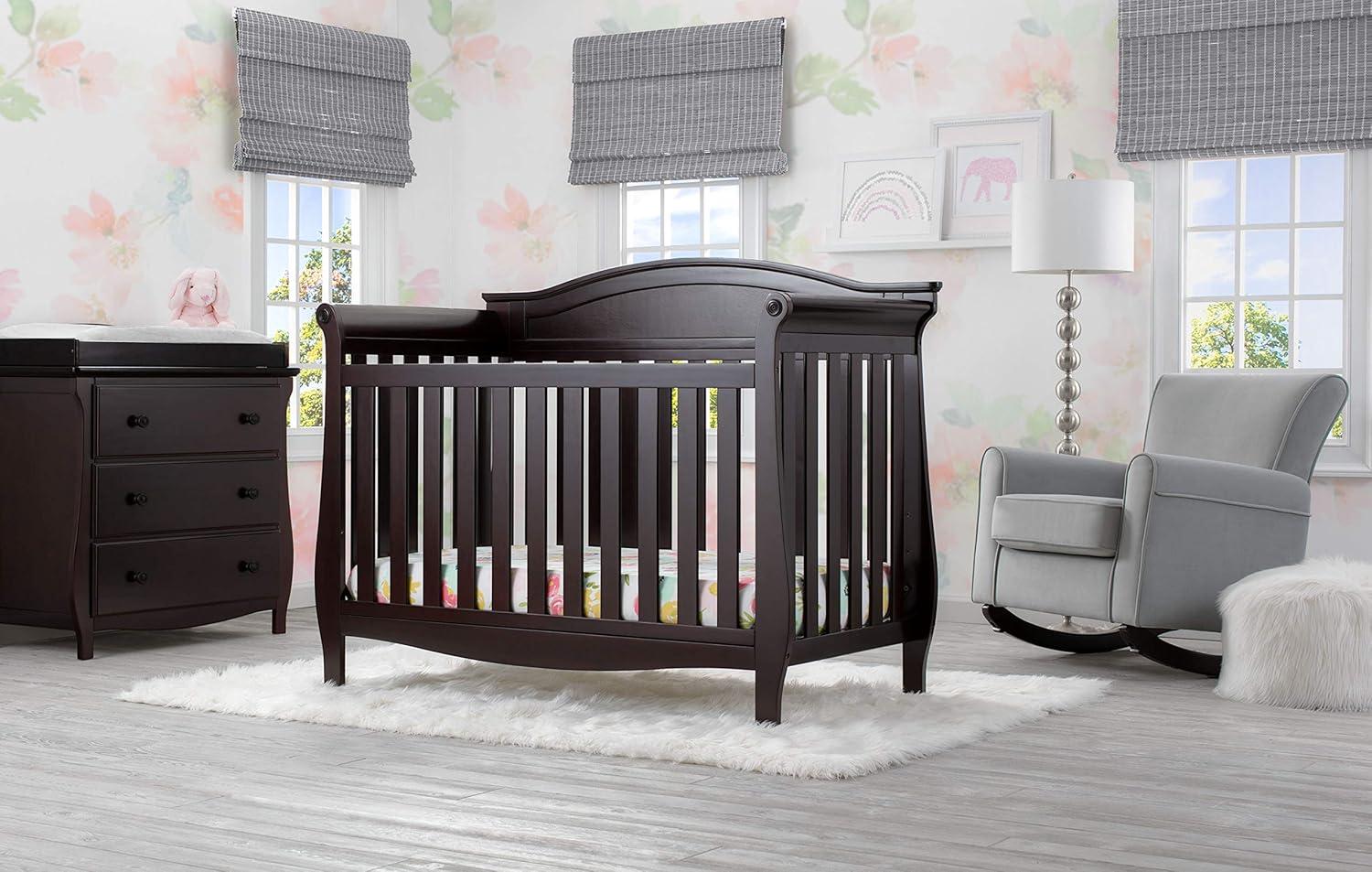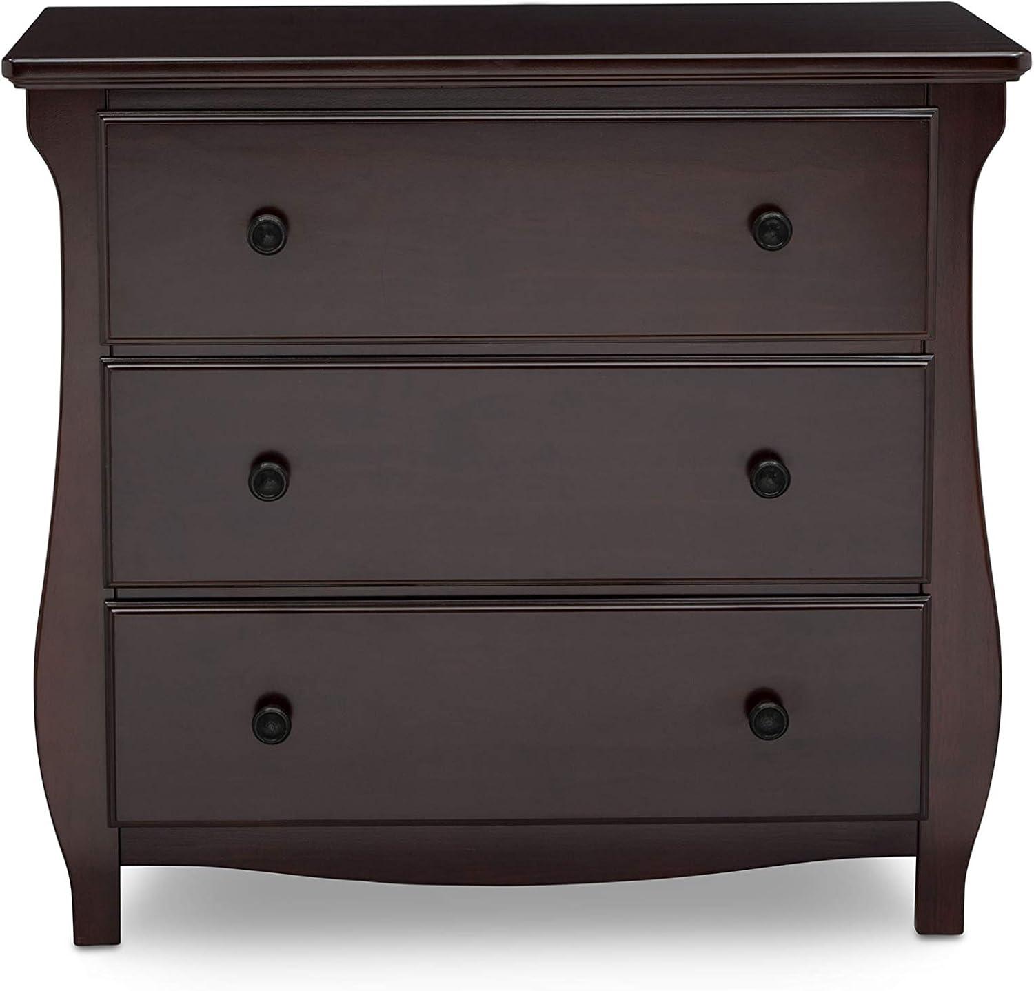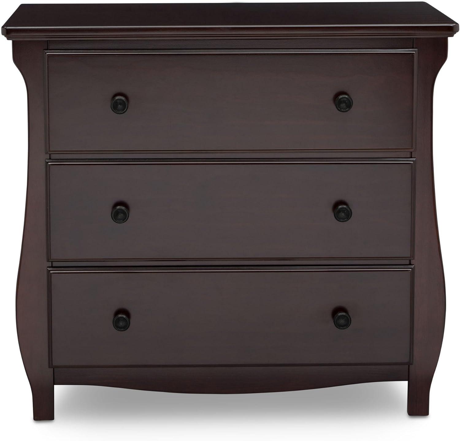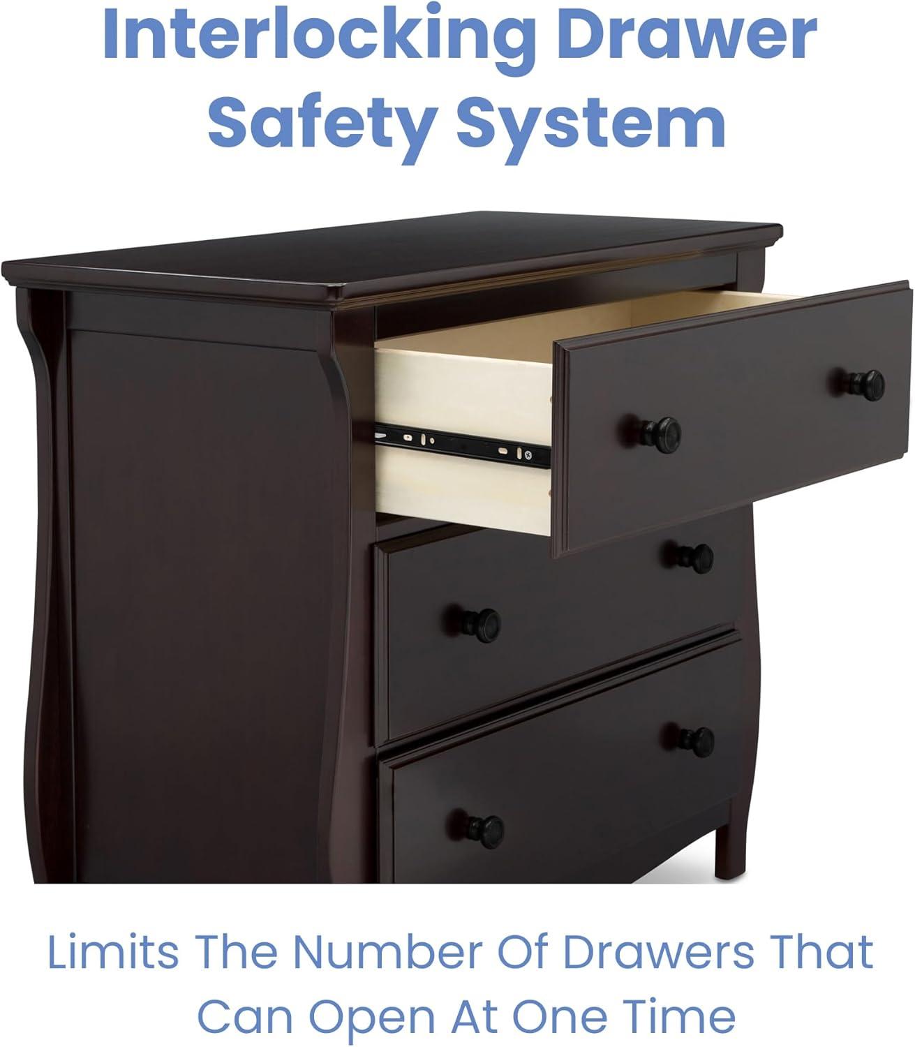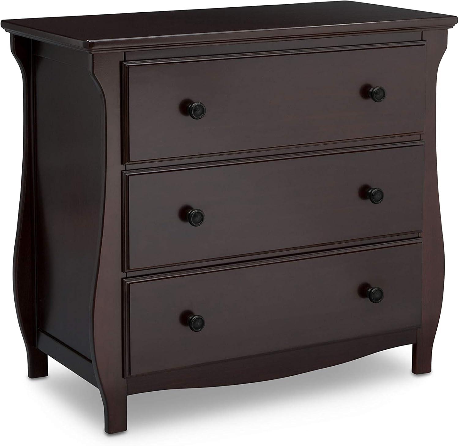 Elegant silhouette, graceful accents, functional design: these elements come together to create the Lancaster 3 Drawer Dresser with Changing Top and Interlocking Drawers by Delta Children. Both polished and inviting, this versatile dresser will accommodate all your child's storage and changing needs. The removable changing topper makes it easy to use the dresser as a changing table, and when your child outgrows the need for a changer, simply remove the topper. The dresser's sleigh-style silhouette and swooping apron add charm. A smart choice for storage in any space, this dresser is outfitted with an interlocking drawer system that limits the number of drawers that can be opened at one time. Plus, it’s GREENGUARD Gold Certified, which means it’s built to contribute to cleaner air for a healthy home. Available in Grey, Bianca White and Dark Chocolate. Coordinates with other items in the Lancaster Collection from Delta Children.