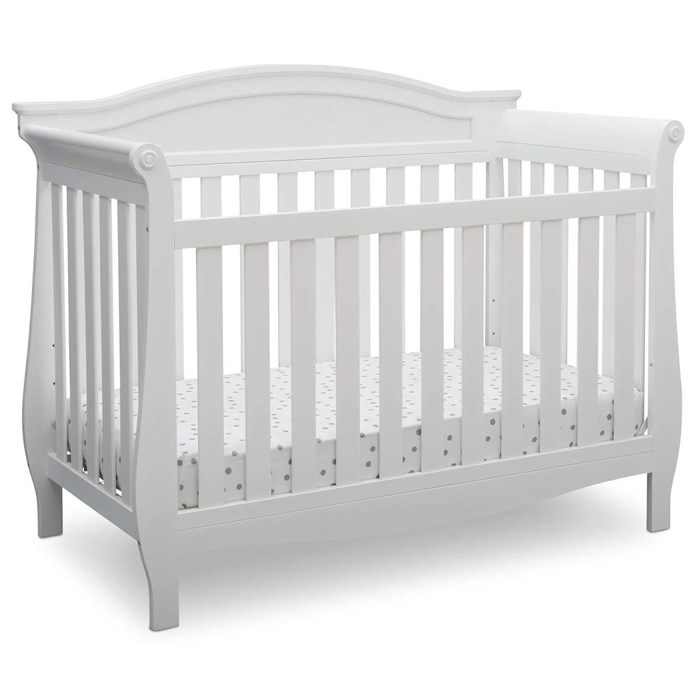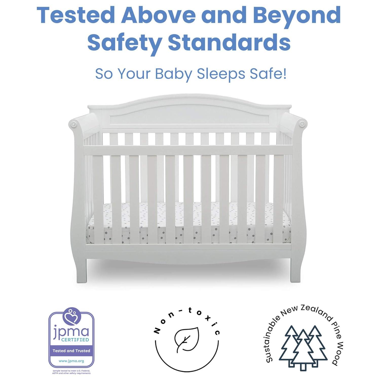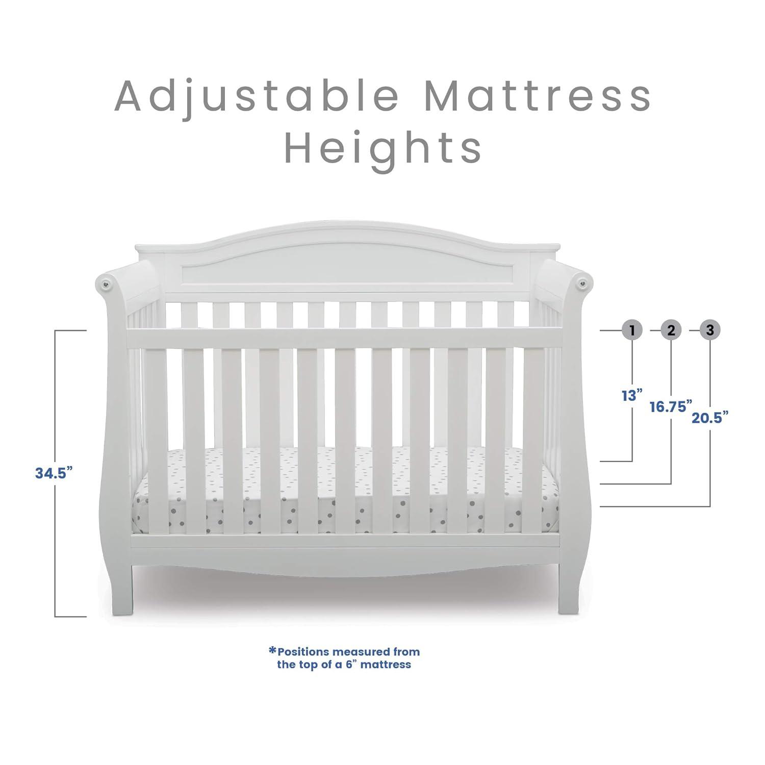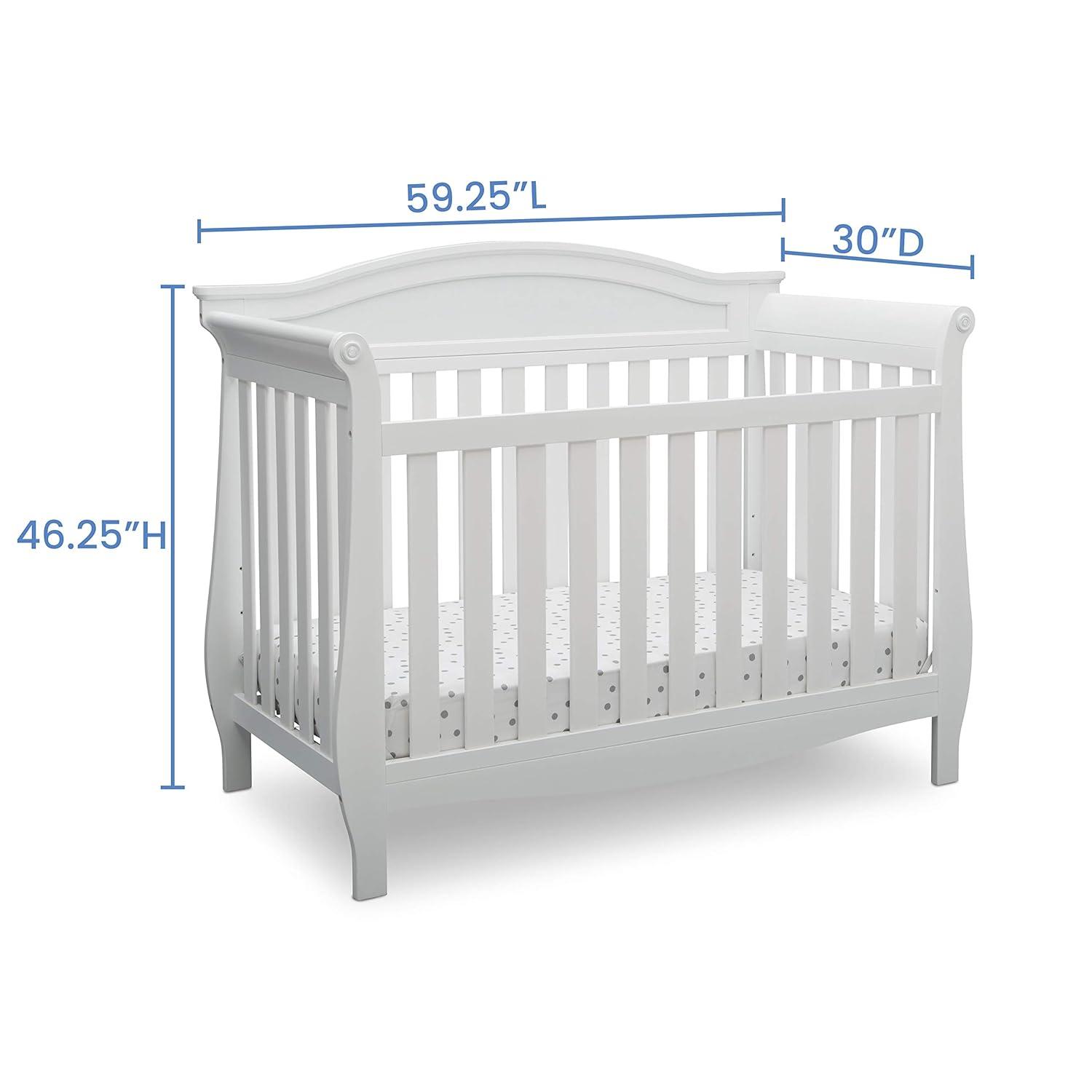 Welcome Baby home with the Lancaster 4-in-1 Convertible Baby Crib from Delta Children-rolled arms with a decorative rosette accent and sleigh-style silhouette make this classic crib a timeless choice. Designed to grow with your little one, this baby crib features three mattress heights that allow you to lower the crib mattress as your child begins standing. Then, once your child is ready to make the move to a big-kid bed, this crib converts into a toddler bed, daybed and full size bed to accommodate each stage of their life (Daybed Rail included; Toddler Guardrail and Full Size Bed Rails sold separately). A great value, the Lancaster 4-in-1 Convertible Crib from Delta Children is the only bed your child will ever need. Available in Grey, Bianca White and Dark Chocolate. Coordinates with other items in the Lancaster Collection from Delta Children. Delta Children was founded around the idea of making safe, high-quality cribs affordable for all families. That's why all Delta Children cribs are JPMA certified, and are tested above and beyond industry standards.