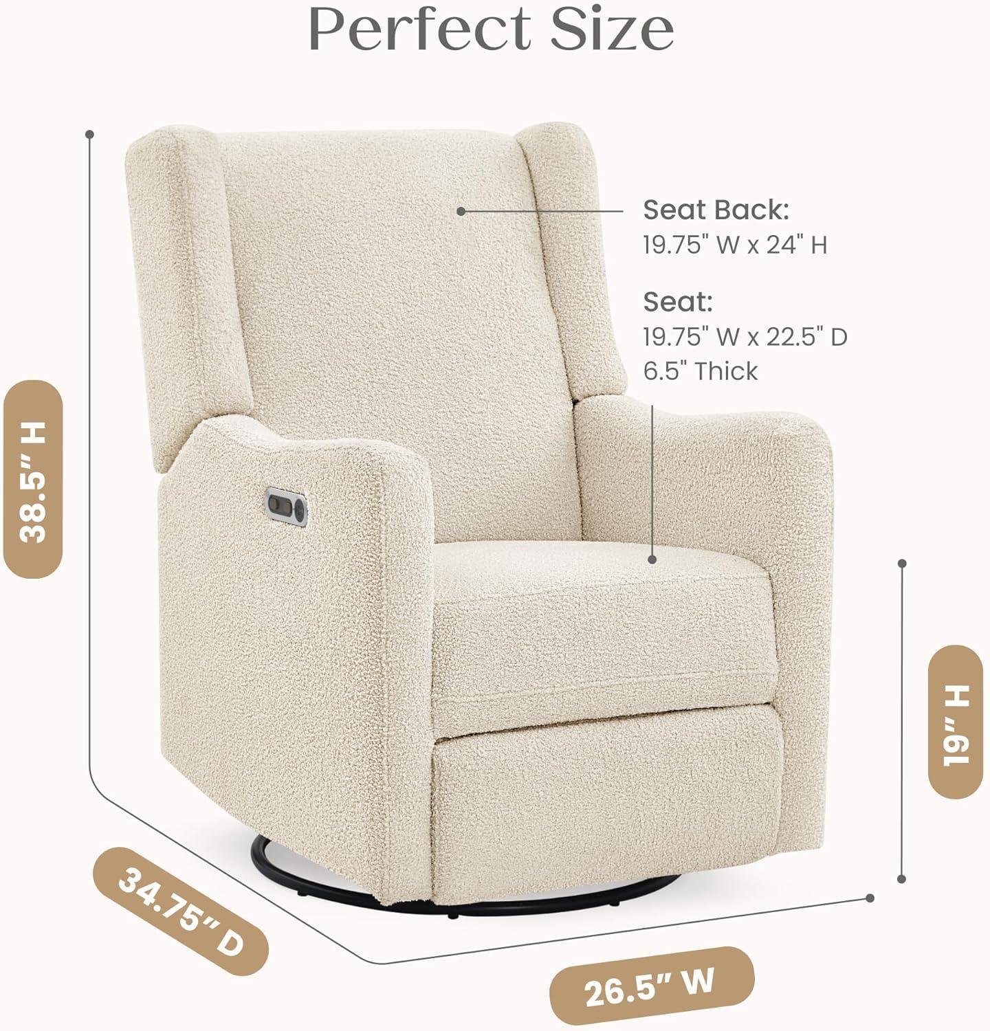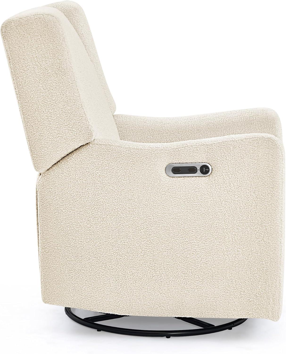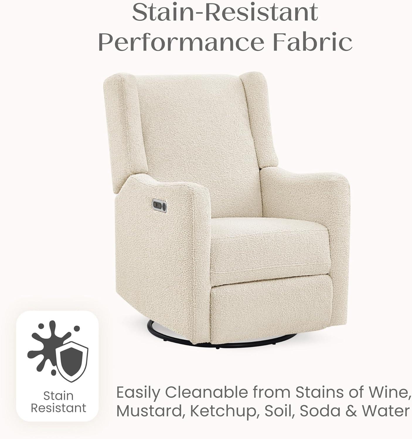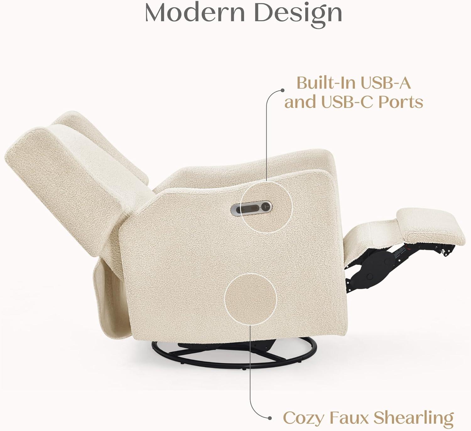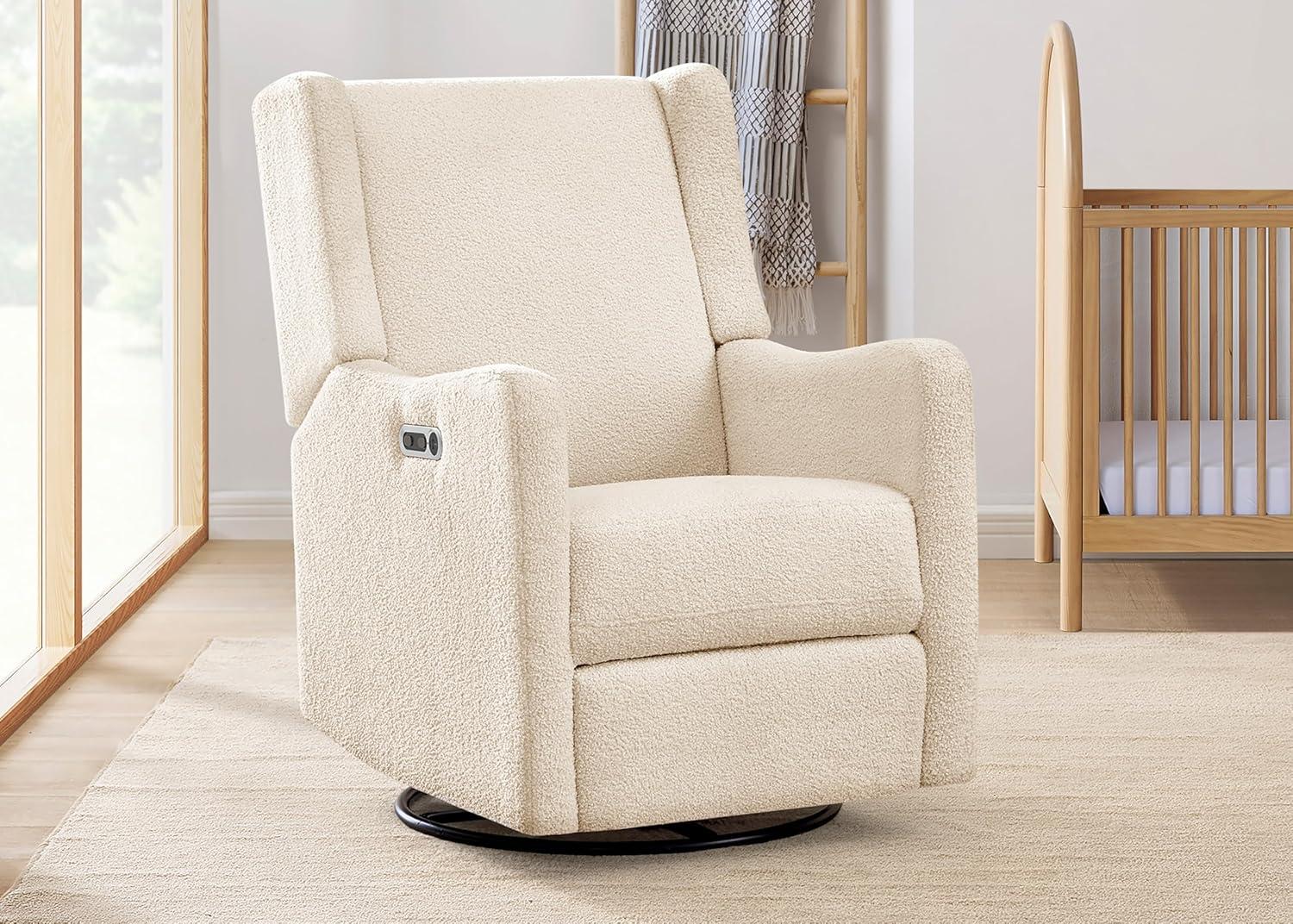 The Mercer Electronic Power Recliner and Swivel Glider by Delta Children combines contemporary design and supreme comfort. Its deep seat, supportive cushion, padded armrests and sturdy wood frame creates a relaxing spot where you and your baby can bond for years to come. The seat glides and reclines to multiple positions, and it offers plenty of shoulder and elbow room for comfortable feeding and snuggling. On the side of the chair, you’ll find buttons that allow you to control the recline, plus USB and Type-C ports, so your electronics are always fully charged. Designed for ease, the placement of these buttons and port are more conveniently placed than other recliners on the market! And the recliner swivels 240-degrees with a smooth gliding motion, so you won't disrupt your little one's sleep while you get comfortable. Incredibly easy to keep clean, this recliner is upholstered in performance LiveSmart fabric that repels liquid and is stain resistant. The Mercer Electronic Power Recliner and Swivel Glider by Delta Children is the ultimate nursery recliner for modern families.