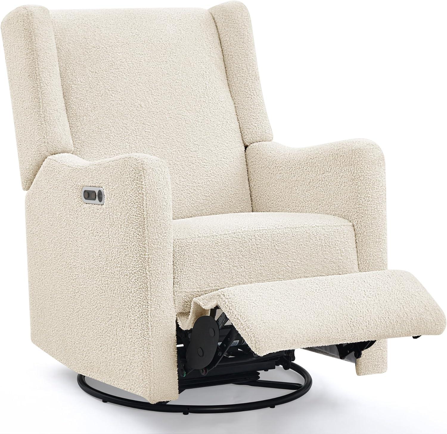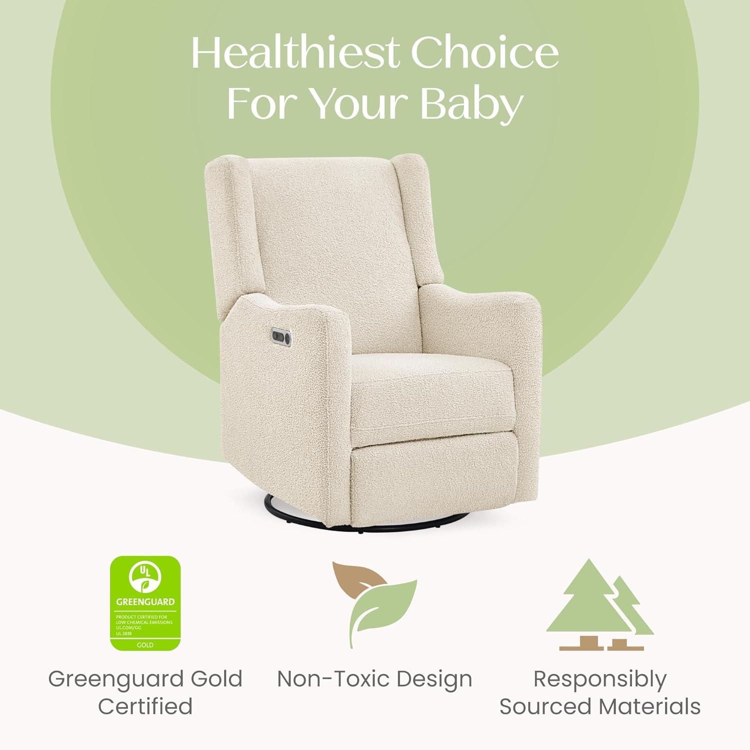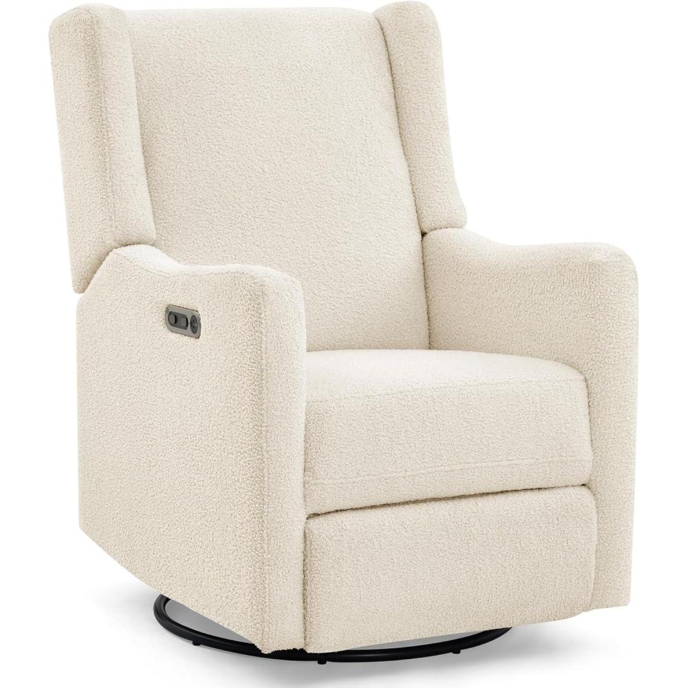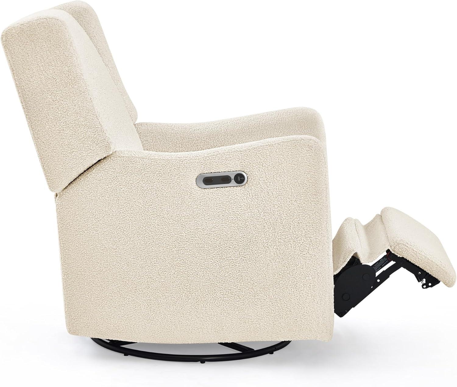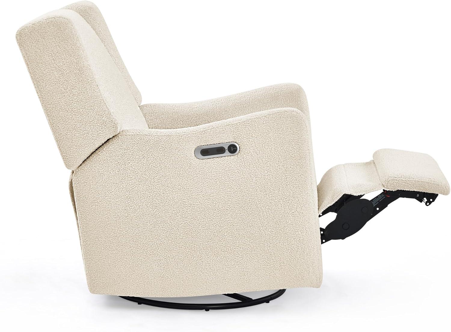 The Mercer Electronic Power Recliner and Swivel Glider by Delta Children combines contemporary design and supreme comfort. Its deep seat, supportive cushion, padded armrests and sturdy wood frame creates a relaxing spot where you and your baby can bond for years to come. The seat glides and reclines to multiple positions, and it offers plenty of shoulder and elbow room for comfortable feeding and snuggling. On the side of the chair, you’ll find buttons that allow you to control the recline, plus USB and Type-C ports, so your electronics are always fully charged. Designed for ease, the placement of these buttons and port are more conveniently placed than other recliners on the market! And the recliner swivels 240-degrees with a smooth gliding motion, so you won't disrupt your little one's sleep while you get comfortable. Incredibly easy to keep clean, this recliner is upholstered in performance LiveSmart fabric that repels liquid and is stain resistant. The Mercer Electronic Power Recliner and Swivel Glider by Delta Children is the ultimate nursery recliner for modern families.