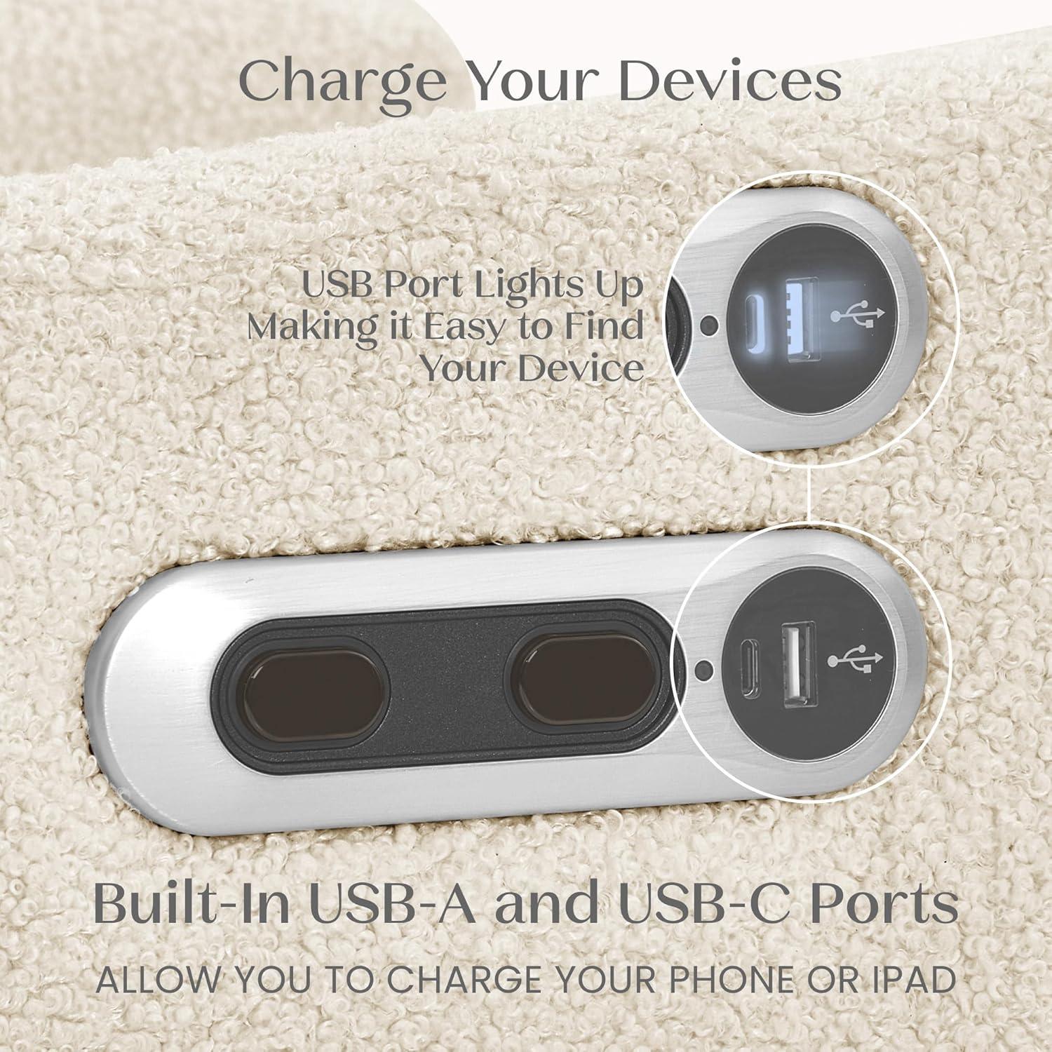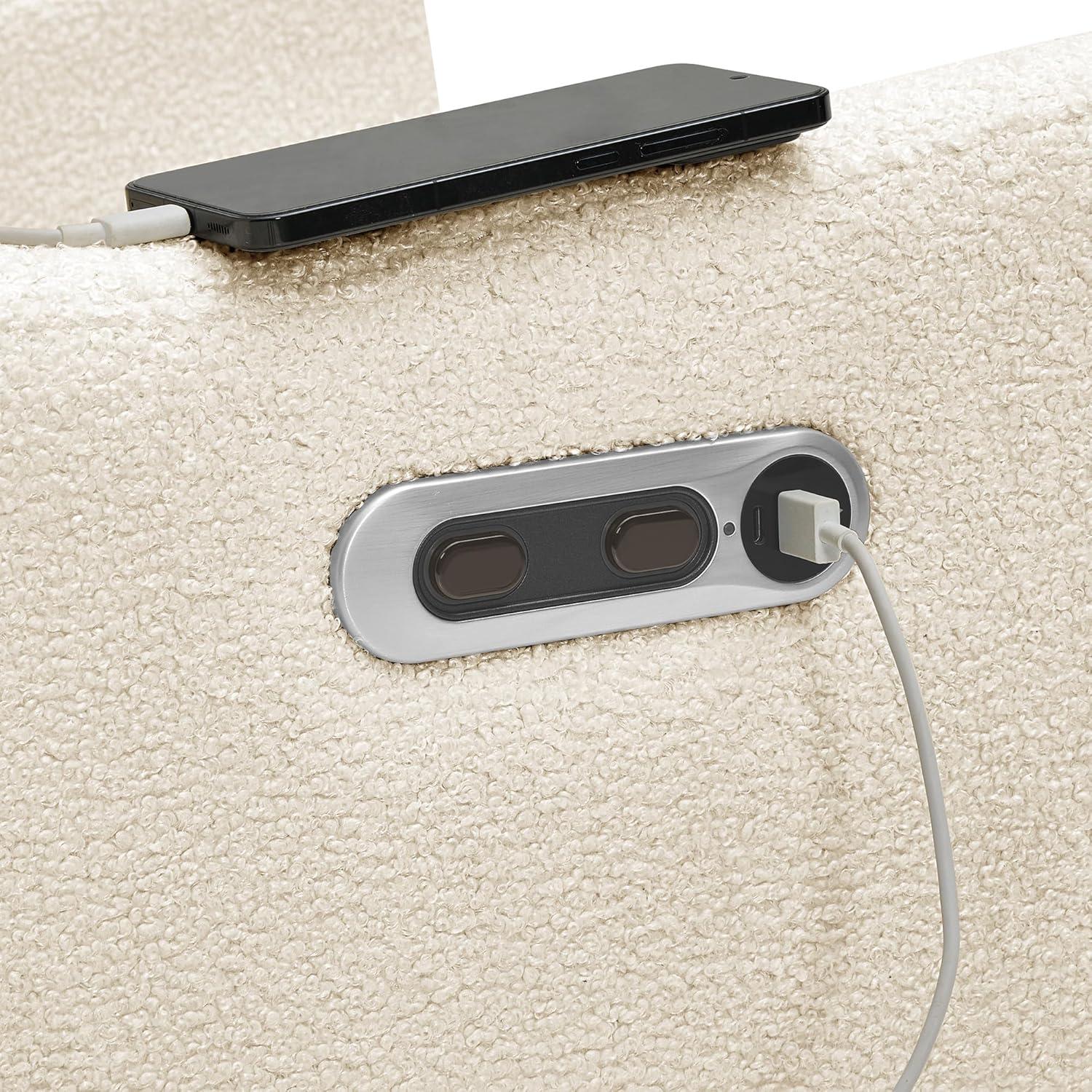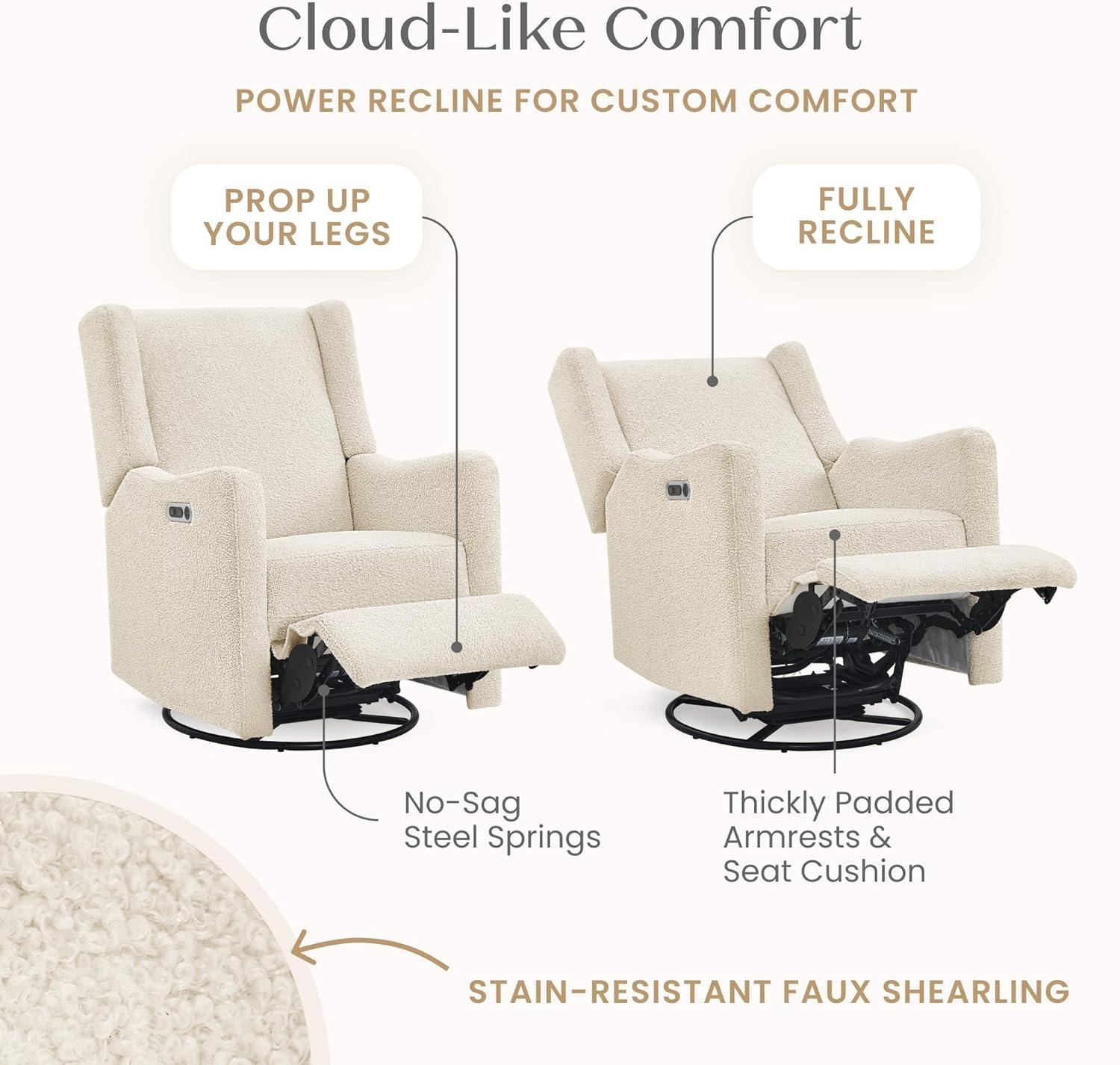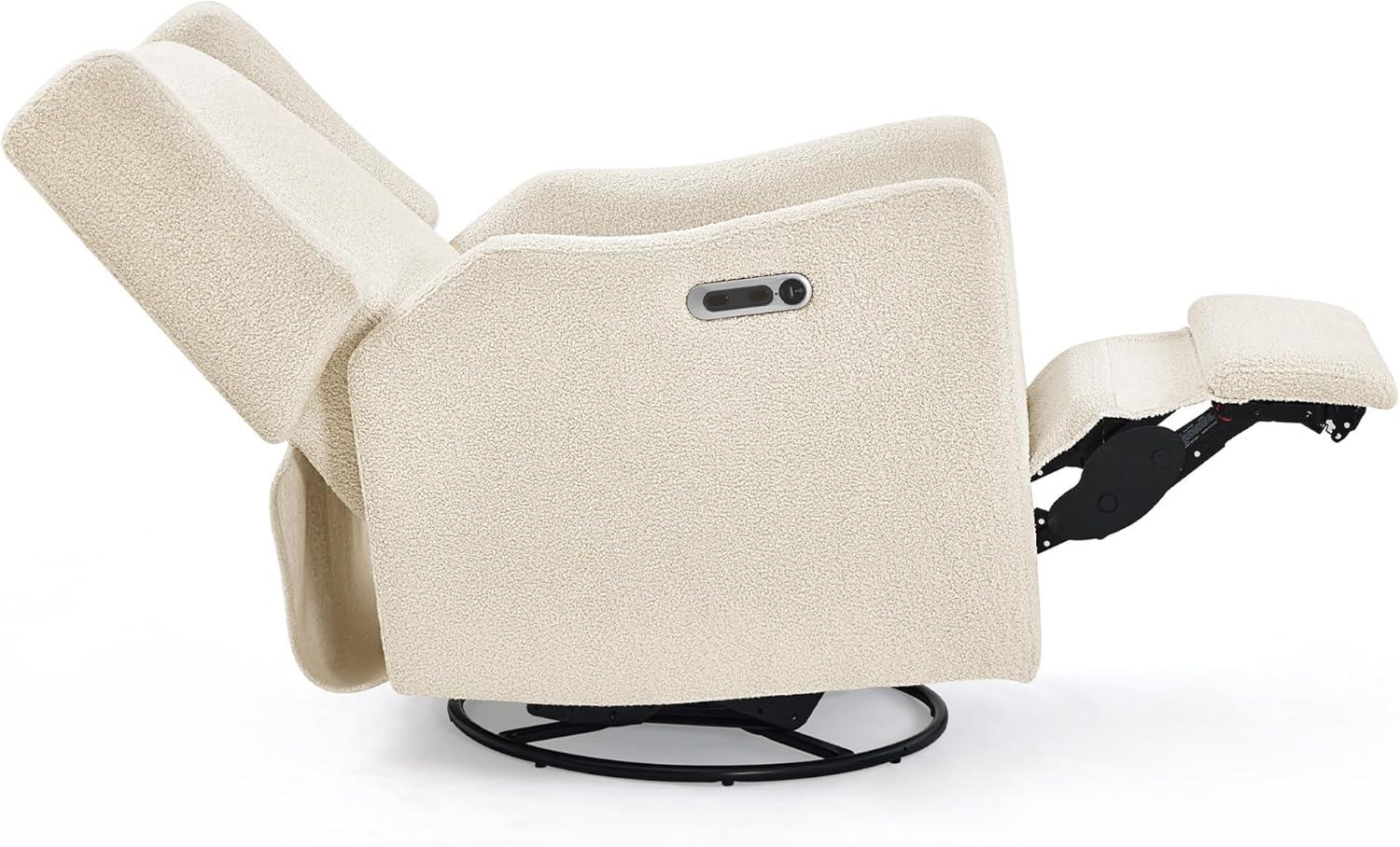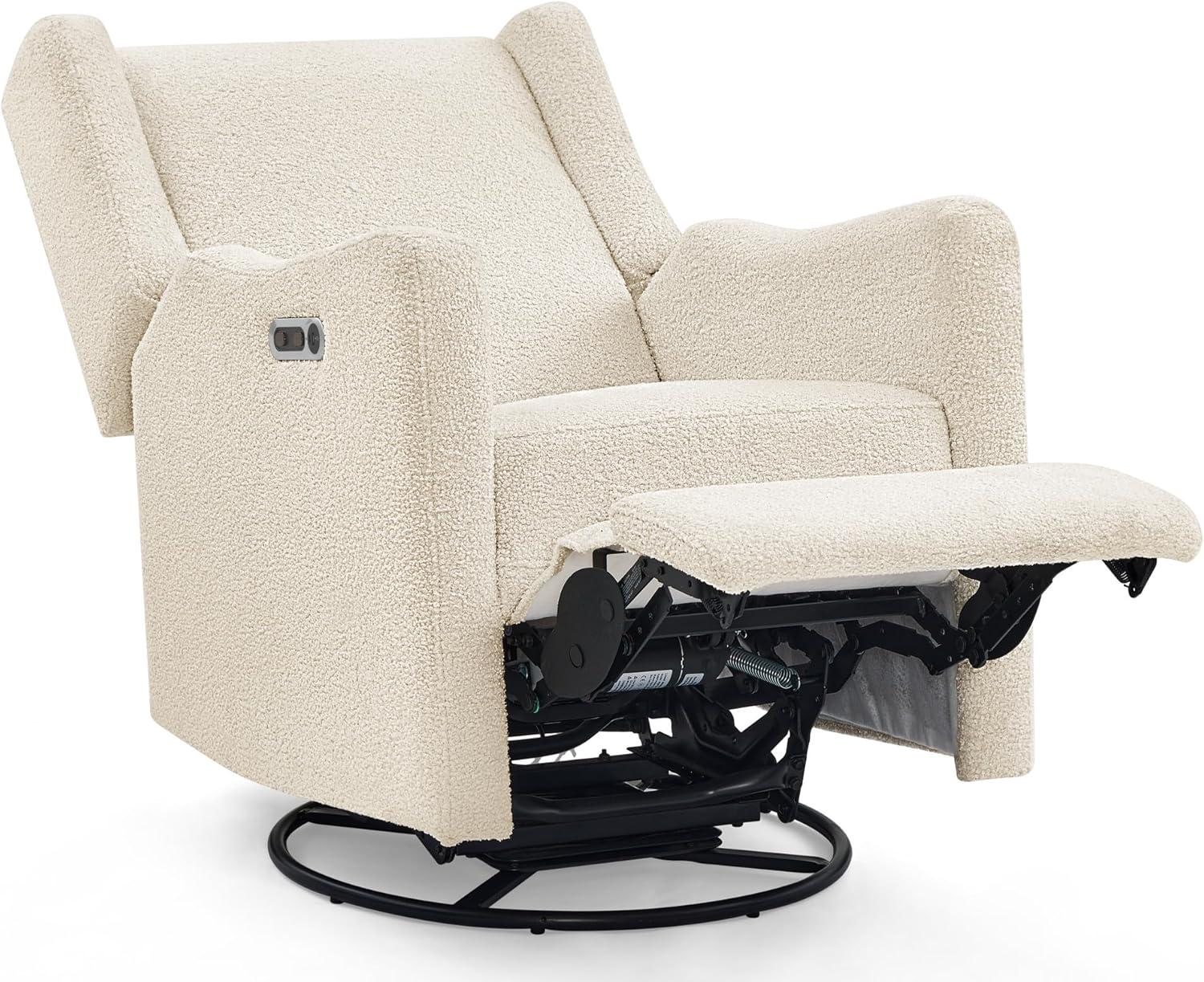 The Mercer Electronic Power Recliner and Swivel Glider by Delta Children combines contemporary design and supreme comfort. Its deep seat, supportive cushion, padded armrests and sturdy wood frame creates a relaxing spot where you and your baby can bond for years to come. The seat glides and reclines to multiple positions, and it offers plenty of shoulder and elbow room for comfortable feeding and snuggling. On the side of the chair, you’ll find buttons that allow you to control the recline, plus USB and Type-C ports, so your electronics are always fully charged. Designed for ease, the placement of these buttons and port are more conveniently placed than other recliners on the market! And the recliner swivels 240-degrees with a smooth gliding motion, so you won't disrupt your little one's sleep while you get comfortable. Incredibly easy to keep clean, this recliner is upholstered in performance LiveSmart fabric that repels liquid and is stain resistant. The Mercer Electronic Power Recliner and Swivel Glider by Delta Children is the ultimate nursery recliner for modern families.