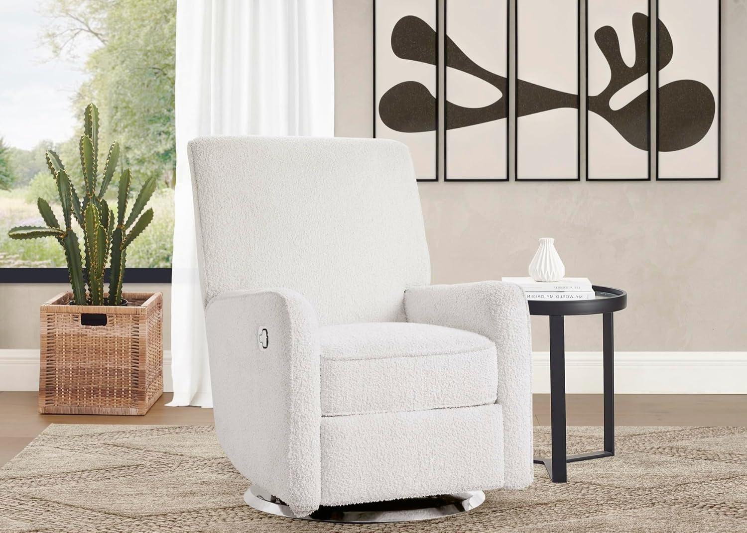 Delta Children Nest Nursery Swivel Recliner - Fabric is GREENGUARD Gold Certified and Oeko-TEX Standard 100 - Upholstered in a Unique Chenille Yarn for Blanket Like Softness, Fog(Oyster)