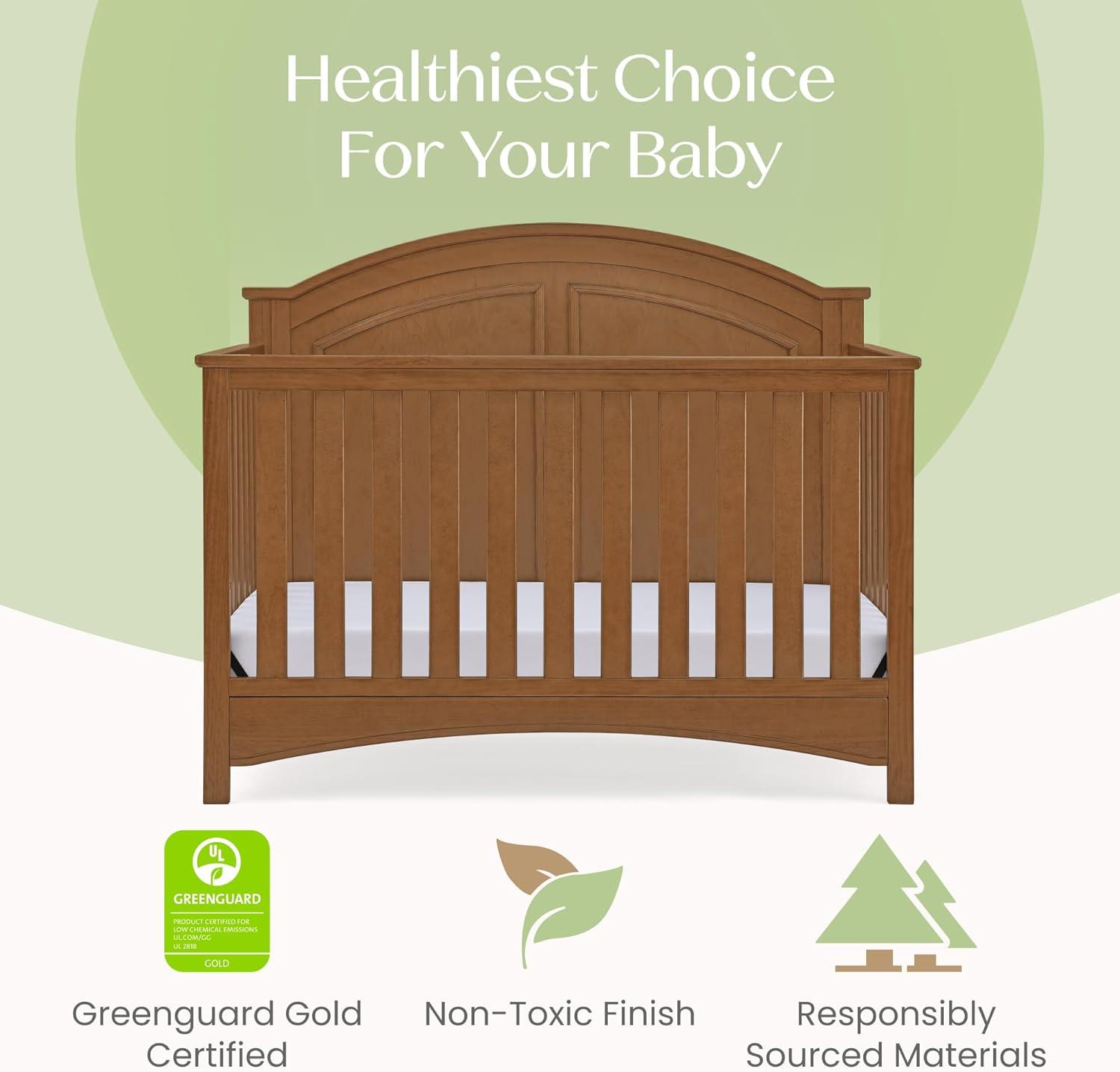 Delta Children Perry 6-in-1 Convertible Crib - Greenguard Gold Certified, Bianca White(Chestnut)
