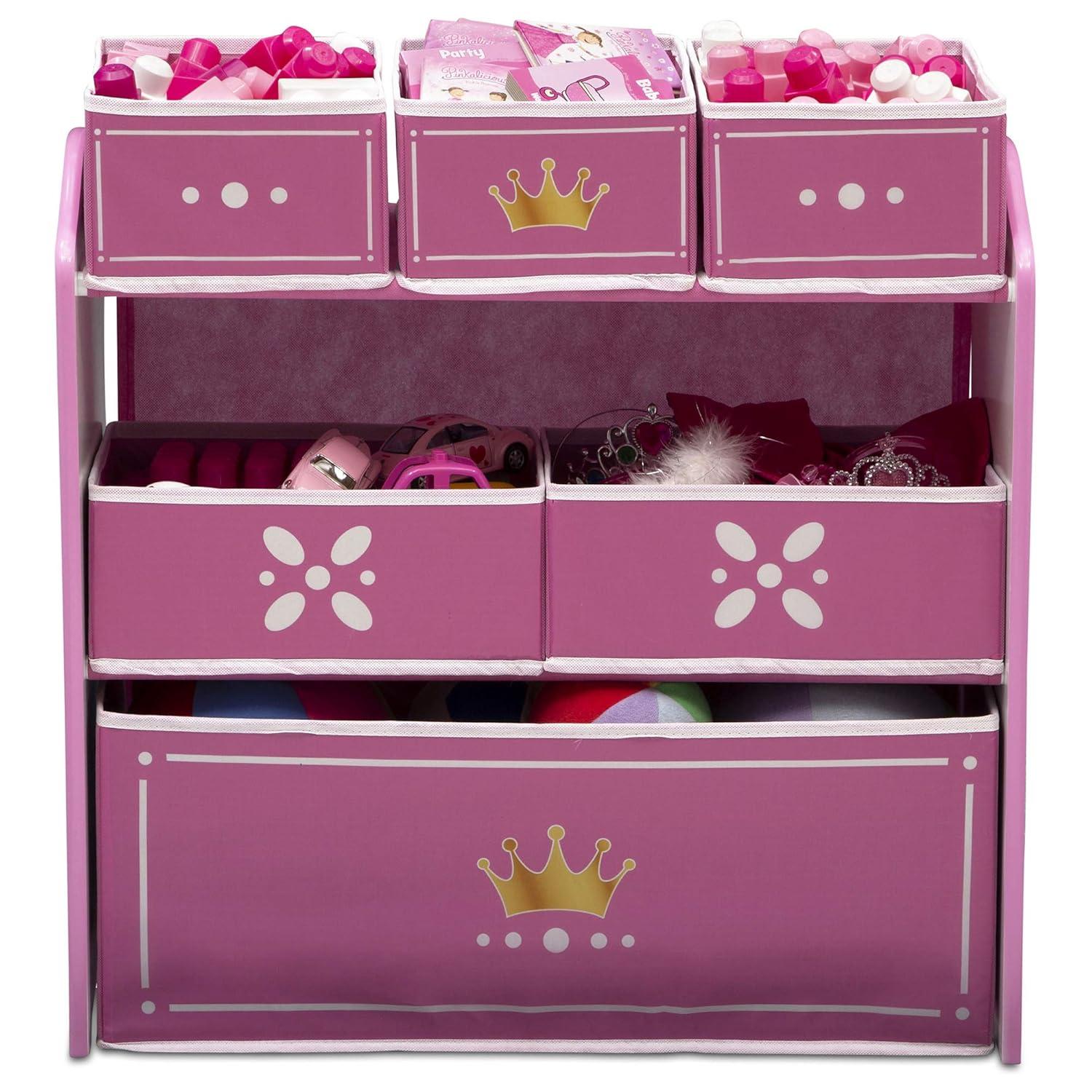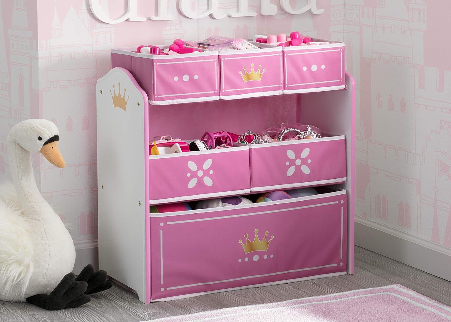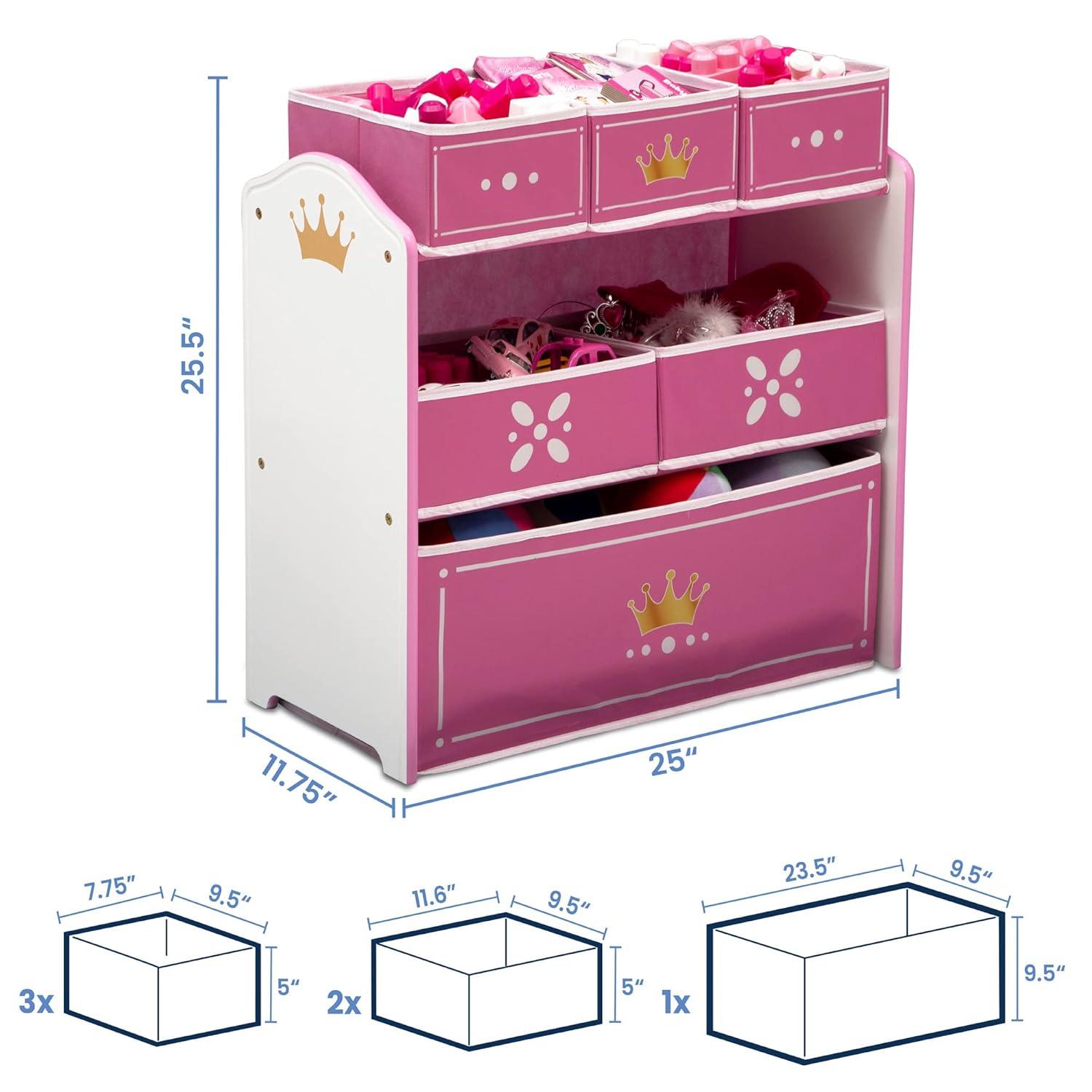 Delta Children Princess Crown Design & Store 6 Bin Toy Storage Organizer – Greenguard Gold Certified, White/Pink