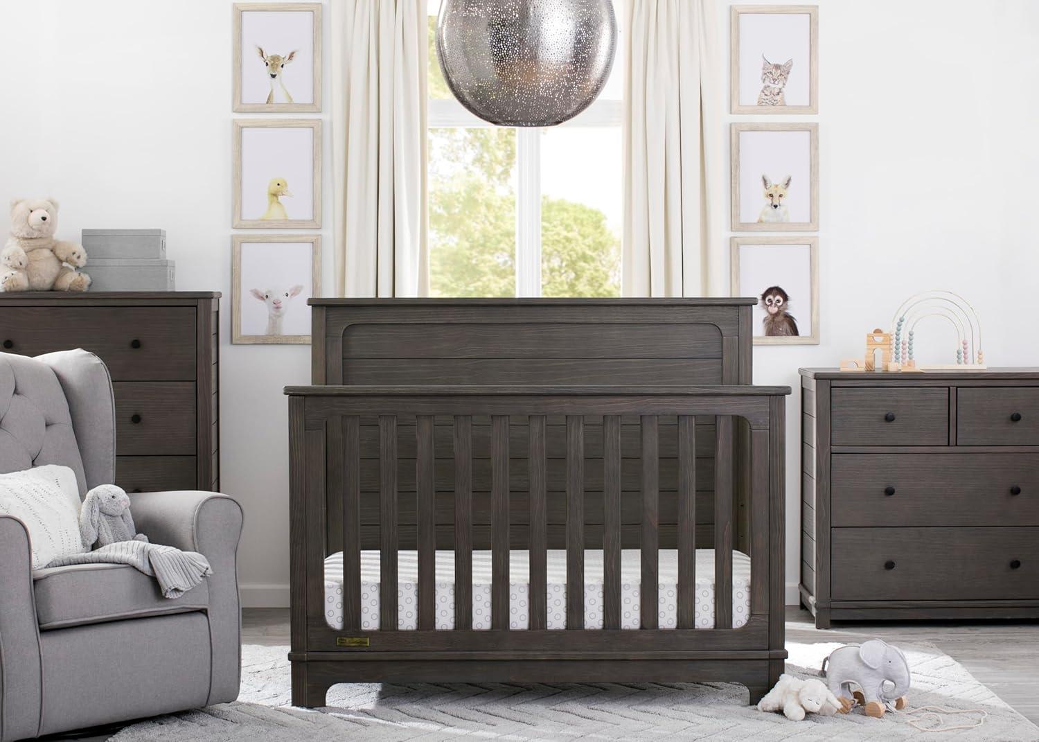 Delta Children Simmons Kids Slumbertime Monterey 4-in-1 Convertible Crib, Rustic Grey(Rustic Grey)