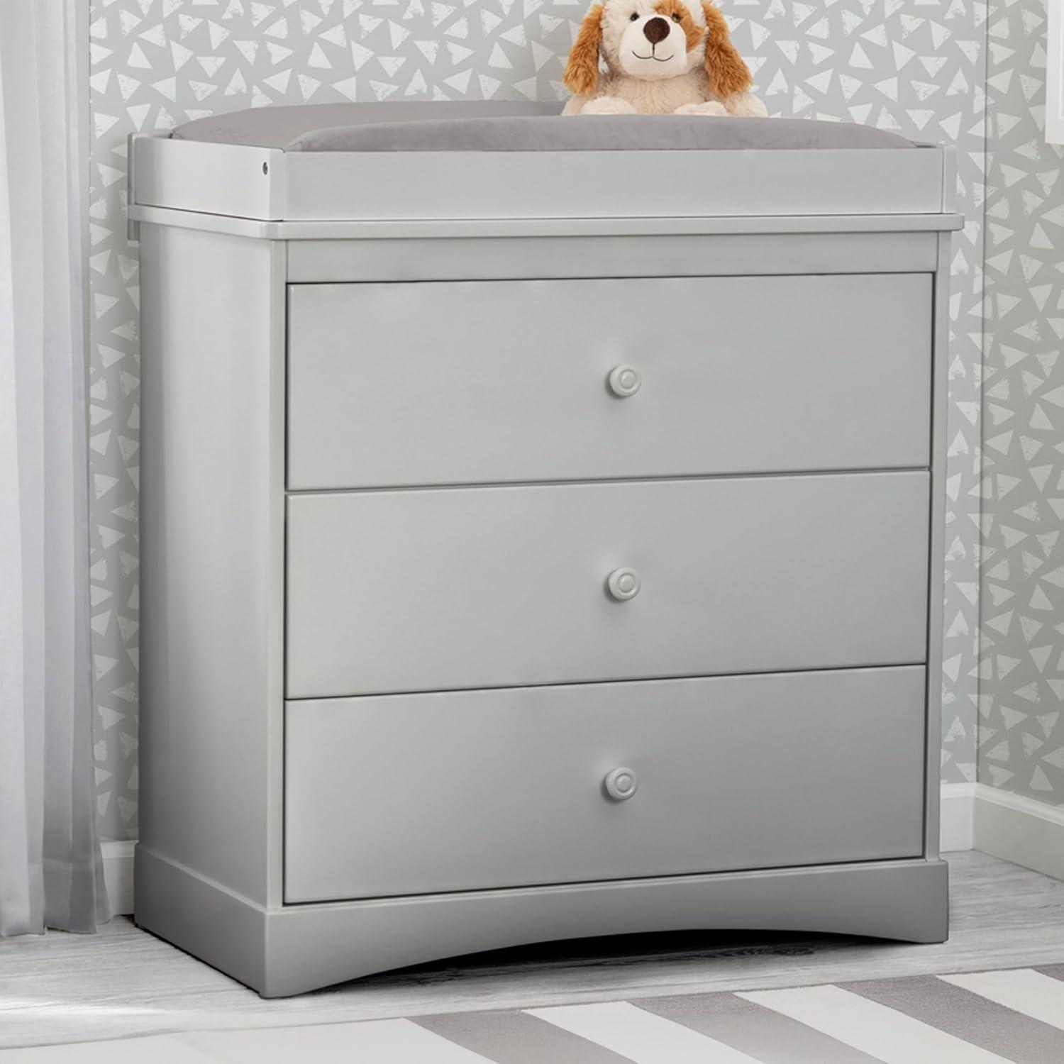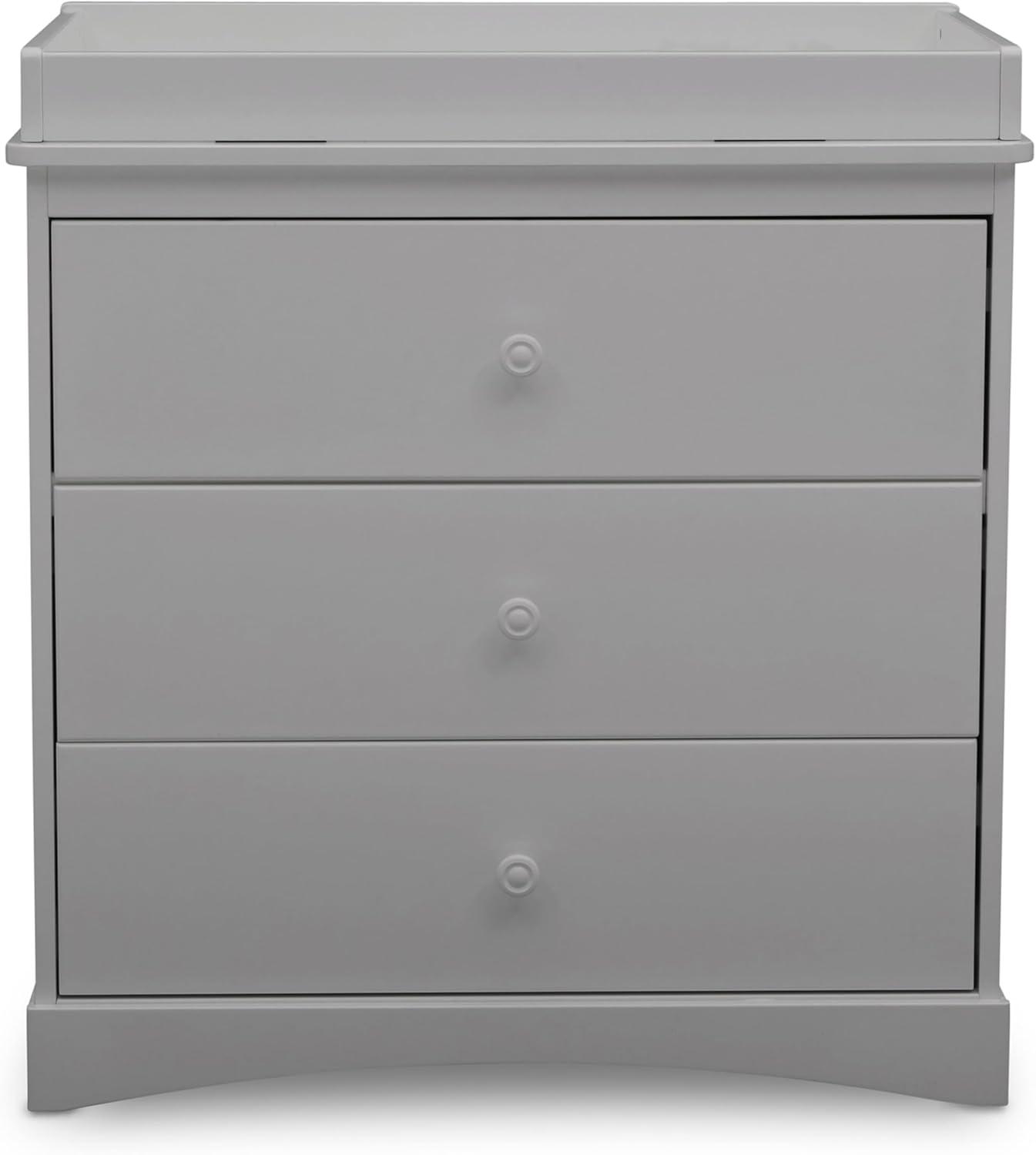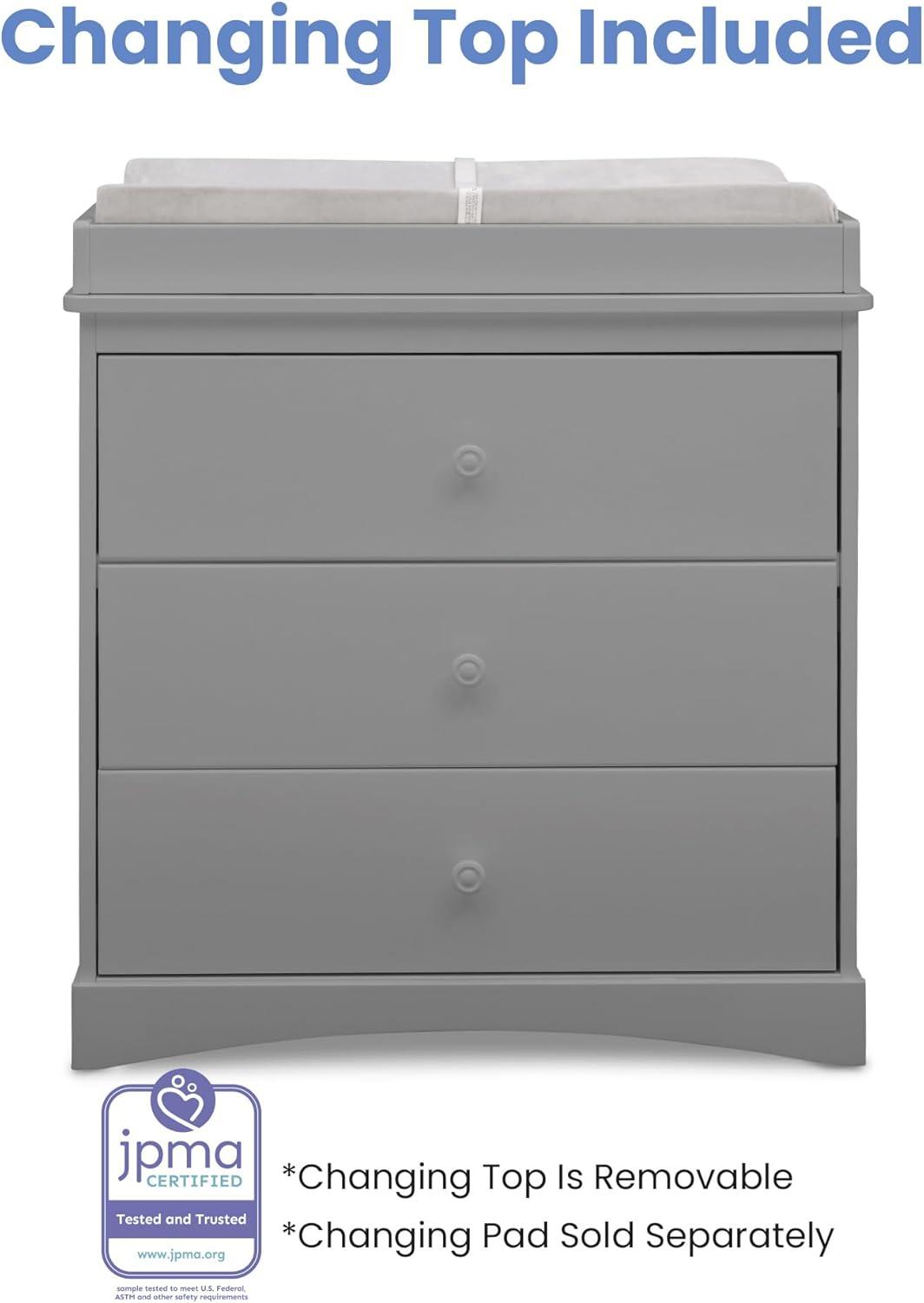 Delta Children Sutton 3 Drawer Dresser with Changing Top and Interlocking Drawers - Greenguard Gold Certified, Bianca White(Grey)